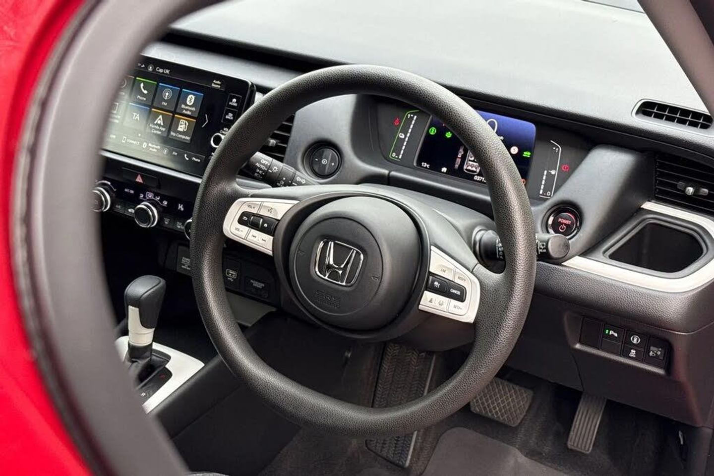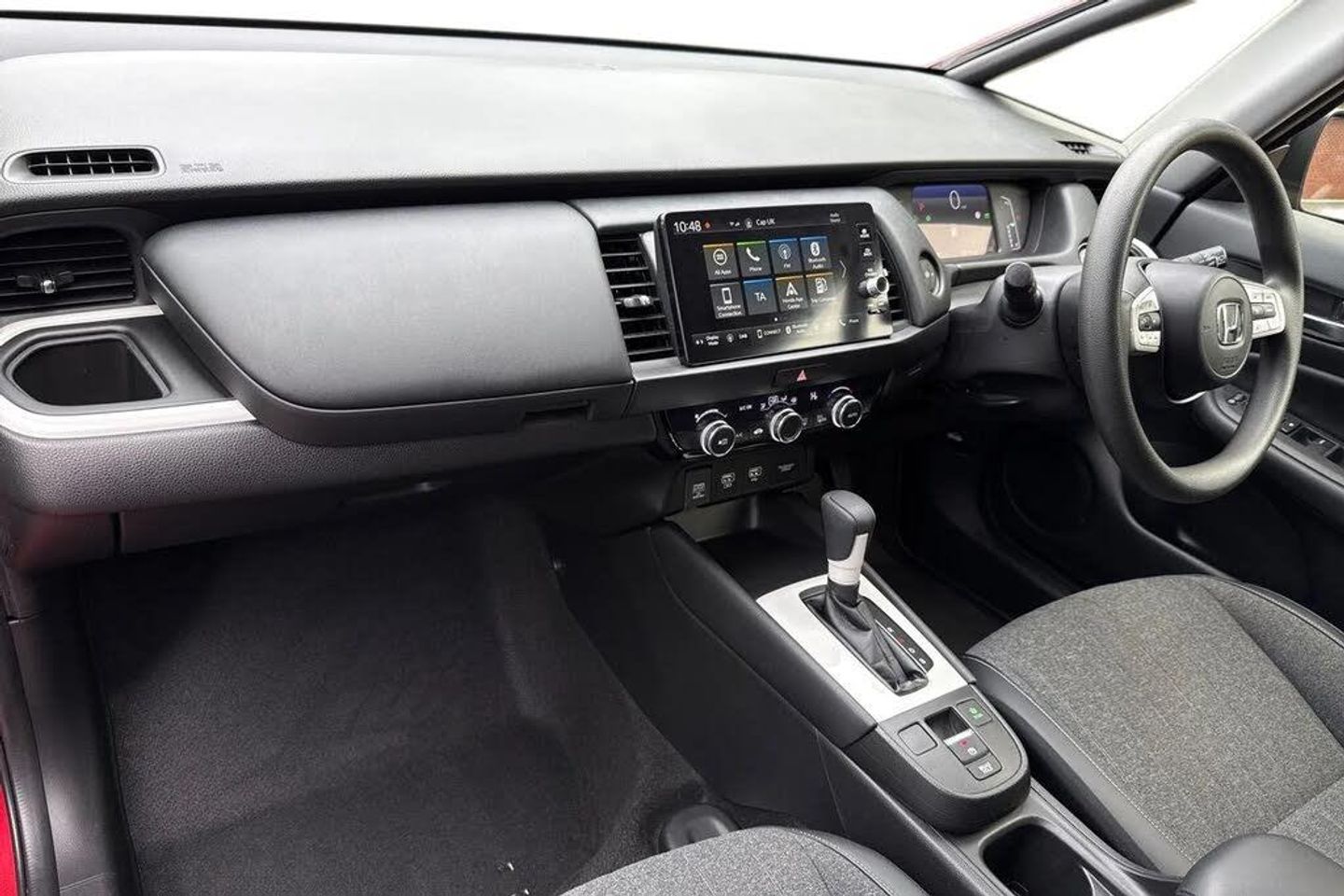 Premium plus paint - Crystal red,Cloth/leather - Black,Auto wipers,Electric front windows,Vehicle stability assist,Body colour door handles,Body coloured bumpers,eHEV emblem,Single exhaust tailpipe,Automatic headlights with on/off timer,Coming/leaving home function,High beam assist,LED daytime running lights,LED Headlights,LED rear lights,Anti-lock braking system (ABS),Brake assist function,Brake hold function,Collision mitigation braking system,Electric parking brake,Hill start assist,Adaptive cruise control,Adjustable speed limiter,Agile handling assist,Electric power steering wheel with variable gear ratio steering,Emergency stop signalling system,Forward collision warning,Front and rear parking sensors,Idle stop,Intelligent speed limiter,Lane departure warning system,Lane keep assist system,Low speed following,Road departure mitigation,Traffic sign recognition,Aspheric door mirrors,Body colour door mirrors,Electric adjustable door mirrors,Electrically folding door mirrors,Heated door mirrors,3x3 point rear seatbelts,Deflation warning system,Driver knee airbag,Driver SRS airbag (single stage inflation),Driver/Front Passenger airbags,Front and rear side curtain airbag,Front side airbags,Passenger SRS airbag cut-off device,Rear side airbags,Whiplash lessening front headrests,Bluetooth hands free telephone connection,'Shark fin' mobile antenna,2x USB Front socket (1 data & 1 charge),4 speakers,Remote audio controls on steering wheel,Econ mode,Honda CONNECT with 9" touchscreen,AM/FM/DAB/Apple Carplay and android auto,Multi-information display,Soft pad leather interior panels,60/40 split rear bench seat,Driver's seat height adjustment,Front head restraints,Isofix child seat restraint mechanism,Isofix points,Magic seat flexibility system,Rear head restraints,Climate control air conditioning,Cargo net hooks,Driver and front passenger seat armrests,Driver and passenger front seat pockets,Fabric/leather upholstery,Front accessory power socket,Plating interior door handles,Rear parcel shelf,Tilt/telescopic adjustable steering wheel,Tonneau cover,Front map lights,Front/rear courtesy lights,Trunk light,Sunvisors with vanity mirrors,Front seat belt with emergency locking retractor,Honda super locks,Immobiliser,Mirrors key fob operation,Remote central locking with 2 remote folding keys,Security alarm,15" Multi apperance alloy wheels in mat berlina black,Tyre repair kit