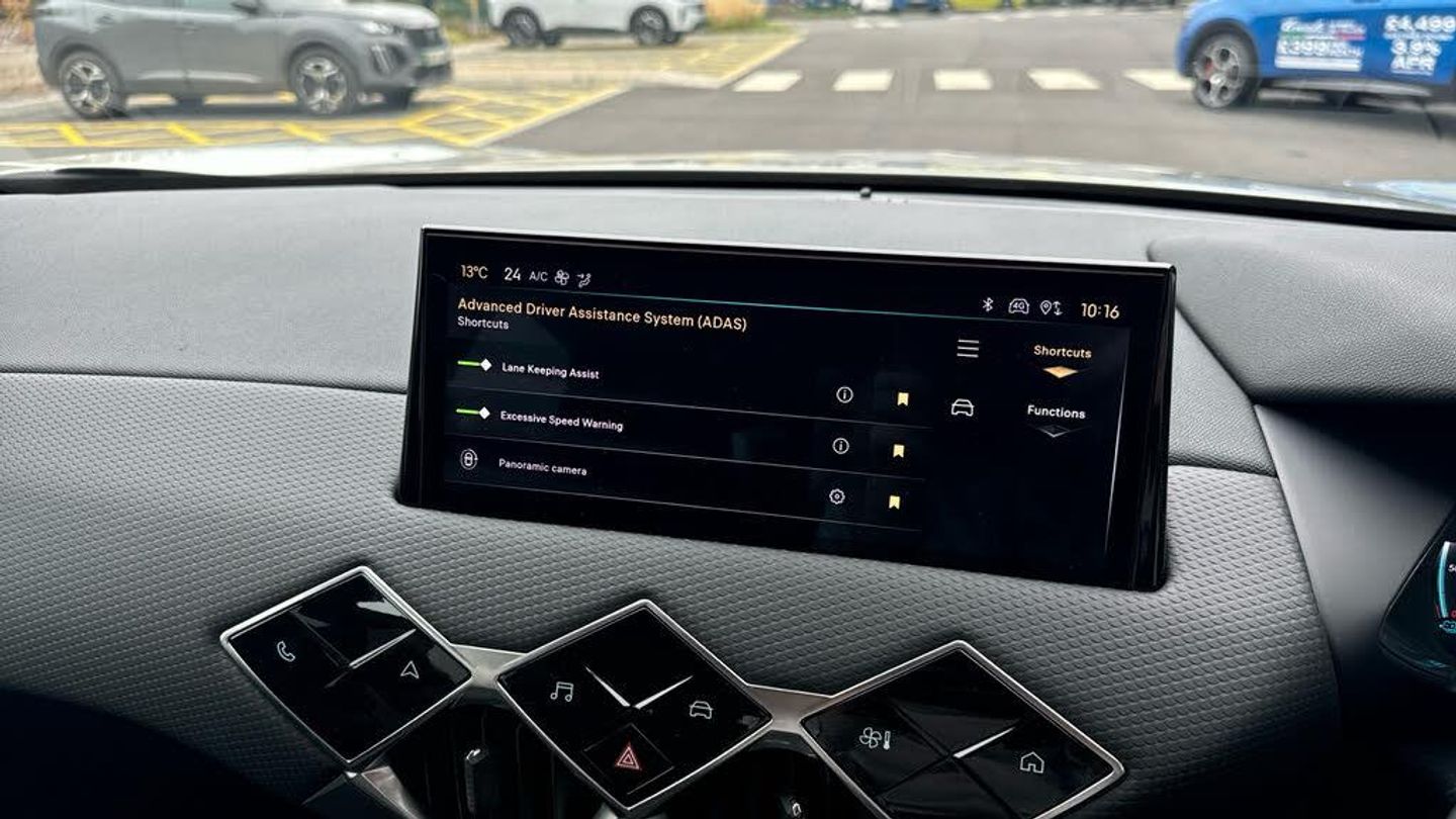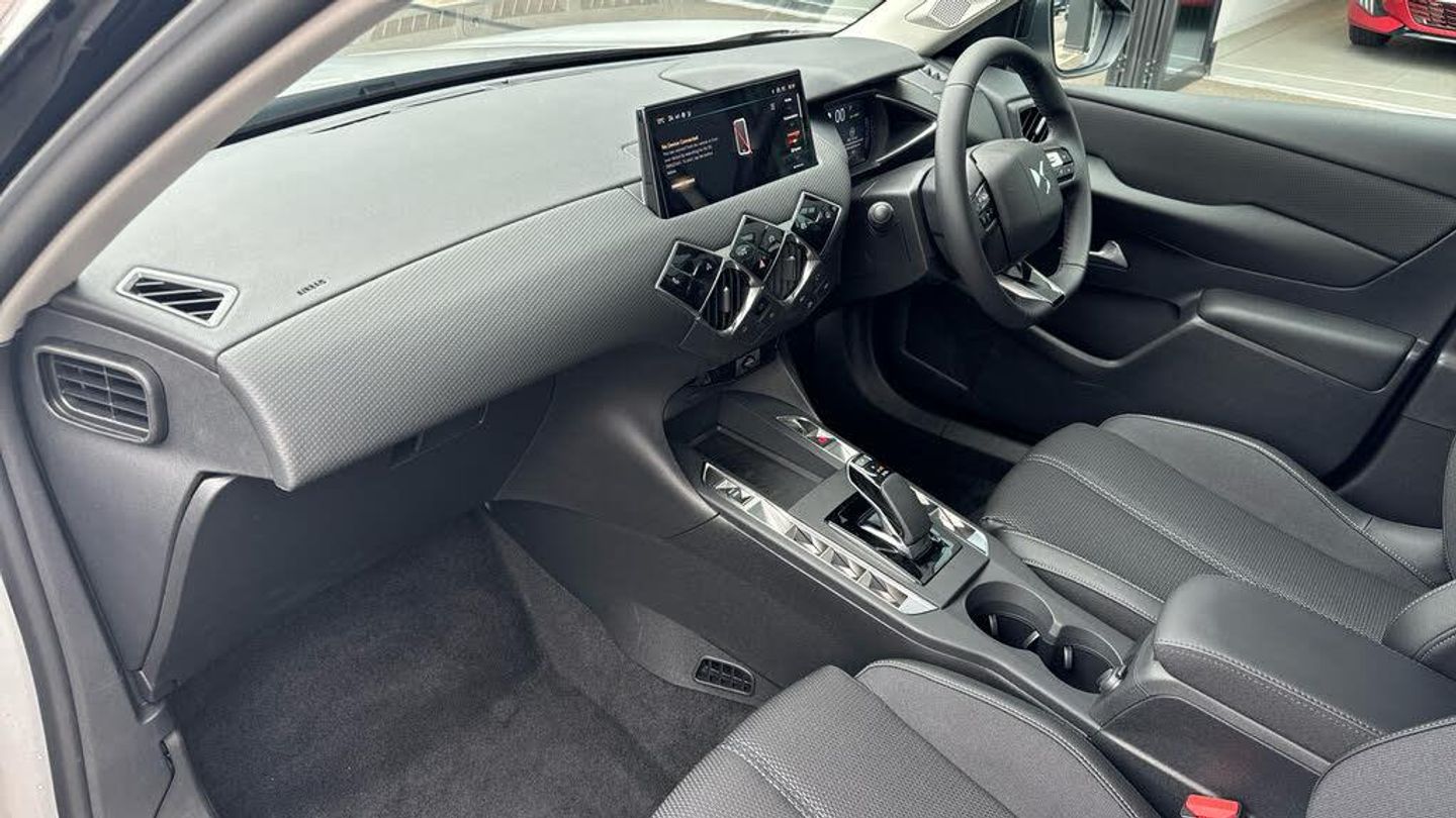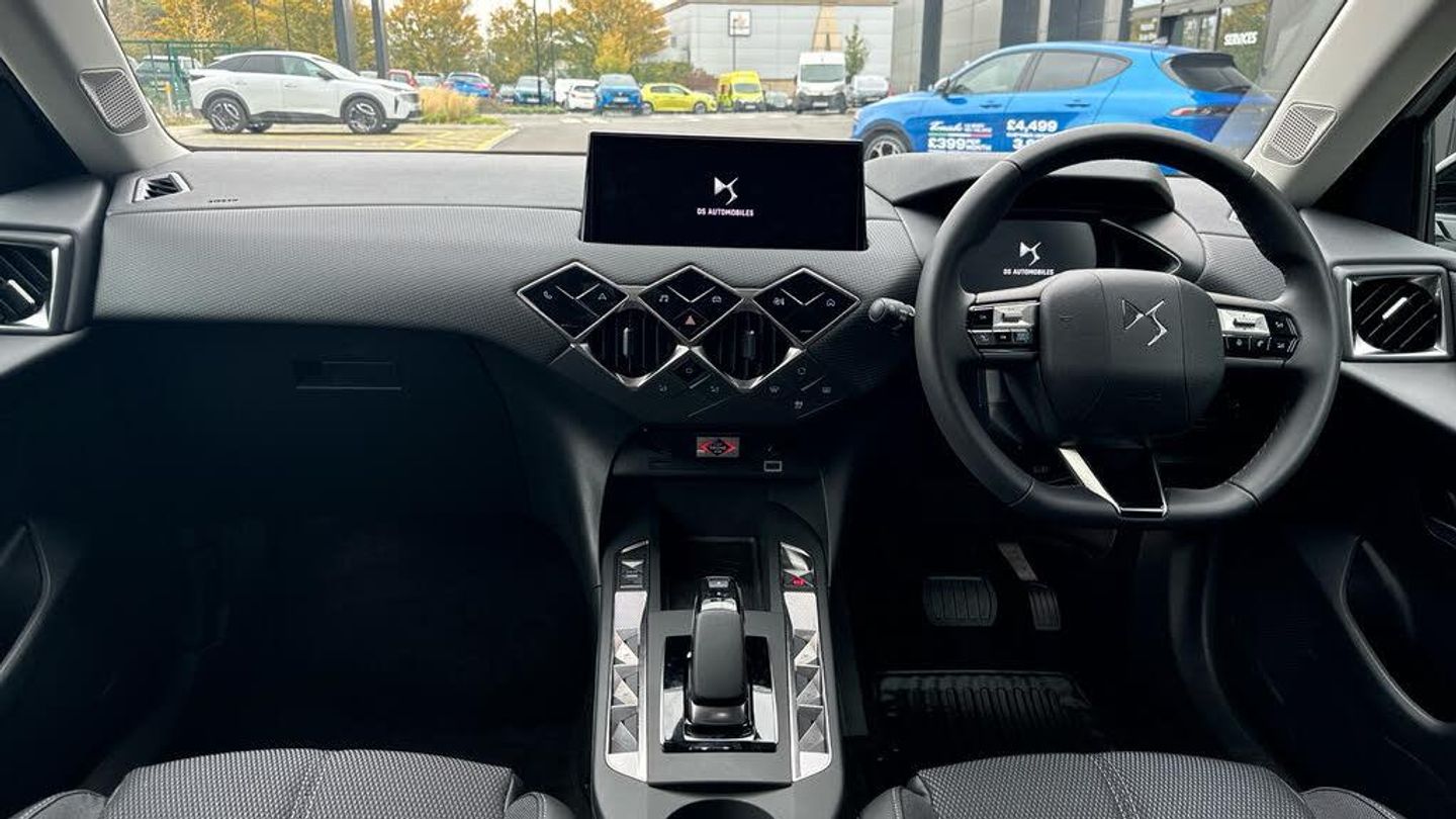 10.3in HD Touchscreen, 12V Socket, DAB Digital Radio, DS Connect Box Emergency and Assistance System, DS Iris System - 3D Connected Navigation - Natural Voice Recognition - Bluetooth Connectivity - Over-the-air Updates, Front USB-C Port, Mirror Screen with Apple CarPlay and Android Auto with Wireless Connection, Rapid Charging Capability - 100kW, Rear USB-A Port, Stereo System - Includes Eight Loudspeakers, Wireless Charging for Smartphone, Blind Spot Monitoring System, Cruise Control with Speed Limiter, Drive Mode Selector - Eco-Normal and Sport, Front and Rear Parking Sensors, Lane Departure Warning, Multi-Function On-Board Trip Computer, Reversing Camera - 360 Degree Vision, Tyre Pressure Monitoring Sensors - Indirect, 17in Alloy Wheels - Dublin - Diamond Cut, Acoustic and Tinted Windscreen, Brilliant Black Front Grille with Chrome Accents - Black DS Wings and Chrome DS Emblem, Brilliant Black Rear Tailgate Trim and Rear Light Surround, Dark Tinted Acoustic Rear Windows with Heated Rear Windscreen, Dark Tinted Rear Windows, Door Mirrors - Electrically Adjustable - Tinted - Power Folding and Heated, DS 3 Inscription - Chrome Finish - Located on Tailgate, DS Emblem - Chrome Finish - Located on Tailgate, E-TENSE Inscription - Chrome Finish - Located on Tailgate, Flush Fitting Door Handles in Chrome, Front and Rear Side Windows - Electric- One-Touch -Pinch Protection, Front Ventilated Disc Brakes - Rear Disc Brakes, Gloss Black Door Mirrors, Locking Wheel Nuts, Tyre Repair Kit, Automatic Lights, LED Daytime Running Lights, LED Headlights, 7in Digital Instrument Cluster, Automatic Air Conditioning, Automatic Windscreen Wipers, Black Perforated Leather Steering Wheel with Contrast Stitching, Boot Lighting, Cloth Sunvisors with LED Courtesy Mirror and Ticket Holder, Dashboard Facia Decor - Basalt Black Decor with Scale Effect, Door Panel Decor - Basalt Black Decor with Scale Effect, Door Pockets - Front - Includes Bottle Storage up to 1.5 Litres, Door Pockets - Rear - Includes Bottle Storage up to 0.5 Litres, Engine Start Button - Gloss Black and Chrome with Clous De Paris Embossing, Front and Rear LED Interior Reading Lights, Front Central Armrest - Includes Storage, Front Central Armrest - Isabella Mistral Black Leather Effect, Front Cup Holder x2, Front Footwell with LED Lighting, Front Seats - Headrest x2 Mechanical Height Adjustment, Front Seats - Manual Longitudinal-Height and Backrest Angle Adjustment, Front Seats - Premium Design with Comfort Foam and Padding - Includes Map Pocket, Gearbox Selector - Basalt Black Leather with Satin Chrome and Piano Black Trim, Headlining - Light Grey, Heat Pump, Interior Grab Handles - Damped, Keyless Start, Lower Dashboard Metal Work Detailing - Satin Chrome - Clous De Paris Embossing, Programmable Heater with Temperature Regulator, Rear Seats - 1-3 2-3 Foldable Back Rest, Rear Seats - Headrests Height Mechanical Adjustment, Rear Seats - Two Rear ISOFIX Mounting Points, Rear View Mirror - Frameless - Electrochrome, Steering Column Mounted Gearbox Paddles, Steering Wheel - Reach and Rake Adjustment, Stop and Start Function, Sunvisors with LED Lighting, TomTom Speedcam - Danger Zones (3 Year Subscription From New), 11kW On-Board Charger, Accelerated Charging Cable - Type 2 - Mode 3, Intelligent Speed Adaptation, Airbags - Adaptive Driver and Front Passenger Airbags - includes Passenger Airbag Deactivation Function, Airbags - Driver and Front Passenger Side Airbags - Optimized Thorax Protection, Airbags - Front and Rear Curtain Airbags - Head Protection for Side Impacts, Airbags - Second Row Side, Alarm - Covers Perimeter - Interior of Vehicle and Tow-Away Instances, Automatic Door Locking While Driving, Automatic Rear Wiper in Reverse, Child Lock Function - Covers Rear Windows and Doors, EBD - Electronic Brakeforce Distribution, Electric Parking Brake, Emergency Braking System - Up to 52mph, ESP - Electronic Stability Programme, Hill Start Assist, ISOFIX Mounting Points - Front x1 - Passenger Seat includes Top Tether, ISOFIX Mounting Points - Rear x2 - Outer Rear Seats includes Top Tether, Lane Keeping Assist, Passenger Detection System - Seat Cushion Mounted Pressure Sensors - Illumination in Roof Control Panel if Belt Unfastening Detected, Remote Control Central Locking with Deadlocks, Seatbelts Front - Three-Point Retractable Seatbelts with Pre-Tensioners and Progressive Load Limiters, Seatbelts Rear - Three-Point Retractable Seatbelts - with Pre-tensioners and Load Limiters to Outer Rear Seats, Speed Limit Recognition and Recommendation