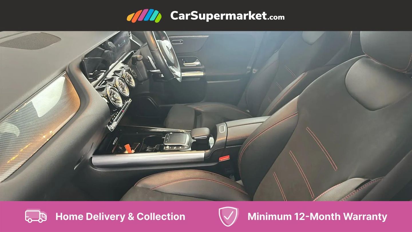 10.25 inch touchscreen central media display,10.25" Digital instrument cluster display screen,Active lane keeping assist,Attention assist,Cruise control + speed limiter,Direct steering,DYNAMIC SELECT with a choice of driving modes (ECO, Comfort, Sport and Individual),ECO start/stop function,Fluid level warning indicator for fuel, oil, coolant and washer fluid,Hard-disk navigation,Hey Mercedes Voice activation,Lamp failure indicator,Mercedes me connect including emergency call system, accident recovery, breakdown and maintenance management,Mercedes me remote services,Multi function trip computer,Outside temperature gauge,Owners manual and service booklet in English,Pre-installation of private car share,Radio aerial integrated into front and rear windshields,Service indicator (ASSYST),Smartphone integration with Apple CarPlay and Android auto,Speed limit assist,Status display for rear seat belts in instrument cluster,Lowered comfort suspension,Rear axle multi-link,2 USB ports (type C) in rear stowage compartment and one in front of center console,Bluetooth connectivity including audio streaming,DAB Digital radio,MBUX multimedia system,Media interface,Mercedes-Benz (225w) sound system with 10 speakers,Adaptive brake lights,Aerial for GPS,Aluminium roof rails,AMG front and rear apron,AMG specific/dual flow exhaust pipes in chrome (non-functional),Automatic headlamp activation,Beltline strips and weather strip in chrome,Black grained claddings with chrome parts,Body colour bumpers,Body colour door mirrors,Body coloured door handles with chrome insert for keyless entry,Car wash function,Dark privacy glass from B-pillar backwards,Electric front windows,Electric rear windows,Electrically adjustable and heated door mirrors with integrated LED indicators,Heated glass rear windscreen + timer control,Heated windscreen wash system,Interior mirror with black reading lamps and frameless,LED high performance headlamps with integrated LED daytime running lights,LED tail lights in two piece design,LED third brake light,Matt titanium grey front and rear apron trim,Pre-installation for trailer coupling,Rain sensor windscreen wipers,Rear fog lights,Rear side wing doors,Rear wiper,Roof spoiler,Single lamella raditor grille with chrome dotted diamond grille and inlay,12V power socket in centre console,3 seat bench in 2nd row,3 spoke multifunction sports steering wheel in nappa leather with flattened bottom and perforated grip area,40:20:40 split folding rear seat backrests,Adjustable head restraints,Air conditioning - Two zone thermotronic luxury automatic climate control with display,Ambient lighting in front headrests,Artico man-made leather/Microfibre Dinamica upholstery with red contrast stitching,Auto Mercedes-Benz child seat recognition sensor,Black roof lining,Brushed door pulls in silver chrome,Courtesy light in boot,Front centre armrest with stowage,Galvanished gear shift paddles on steering wheel,Heated front seats,illuminated door sills with changeable cover,Illuminated glovebox,Interior lighting - 64 colour Ambient lighting,Leather trimmed gearknob,Luggage net on driver/front passenger seat backrest,Manually height and reach adjustable steering column,Multi-gesture touchpad control on center console,Single front passenger seat,Sports pedals in brushed stainless steel with black rubber studs,Sports seats,Stowage compartment in centre console,Stowage compartment with retractable cover,Sunvisors with illuminated vanity mirrors,Twin front cup holders,Two outer rear seat isofix and top tether child seat fixing points,AMG body styling pack - GLA,Comfort seat pack - GLA Class,Interior lighting with light and sight pack - GLA,Load compartment pack - GLA,Mirror pack - GLA Class,Parking pack - GLA,3 rear 3 point seatbelts,ABS with Brake Assist,Active bonnet pedestrain safety measure which detects an impact and raises bonnet by 65mm,Active brake assist includes forward collision warning system with autonomous braking,Adaptive brake assist with hold function and hill start assist,Bonnet with power domes,Brake pad wear warning indicator,Childproof locks manually operated for rear doors and electrically operated for rear power windows,Crash responsive emergency lighting,Driver and passenger head and side airbags,Drivers knee airbag,Dual stage driver/passenger airbags,Electronic parking brake,ESP curve dynamic assist,ESP with ASR,Front and rear seatbelt reminder,Front brake callipers with Mercedes Benz logo lettering on front,Front brake discs internally ventilated and perforated,Front passenger seat occupancy sensor,Tyre pressure monitoring system,Warning triangle and first aid kit,Window airbags,Alarm system with immobiliser and interior protection -Thatcham category 1,Keyless Go starting function,Remote central locking and crash sensor with emergency opening function,Urban guard vehicle protection,Vehicle key with decorative surround in chrome,Carbon structure trim,Chrome air vent surrounds
