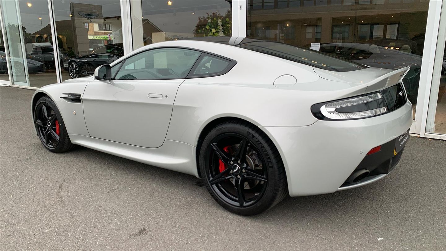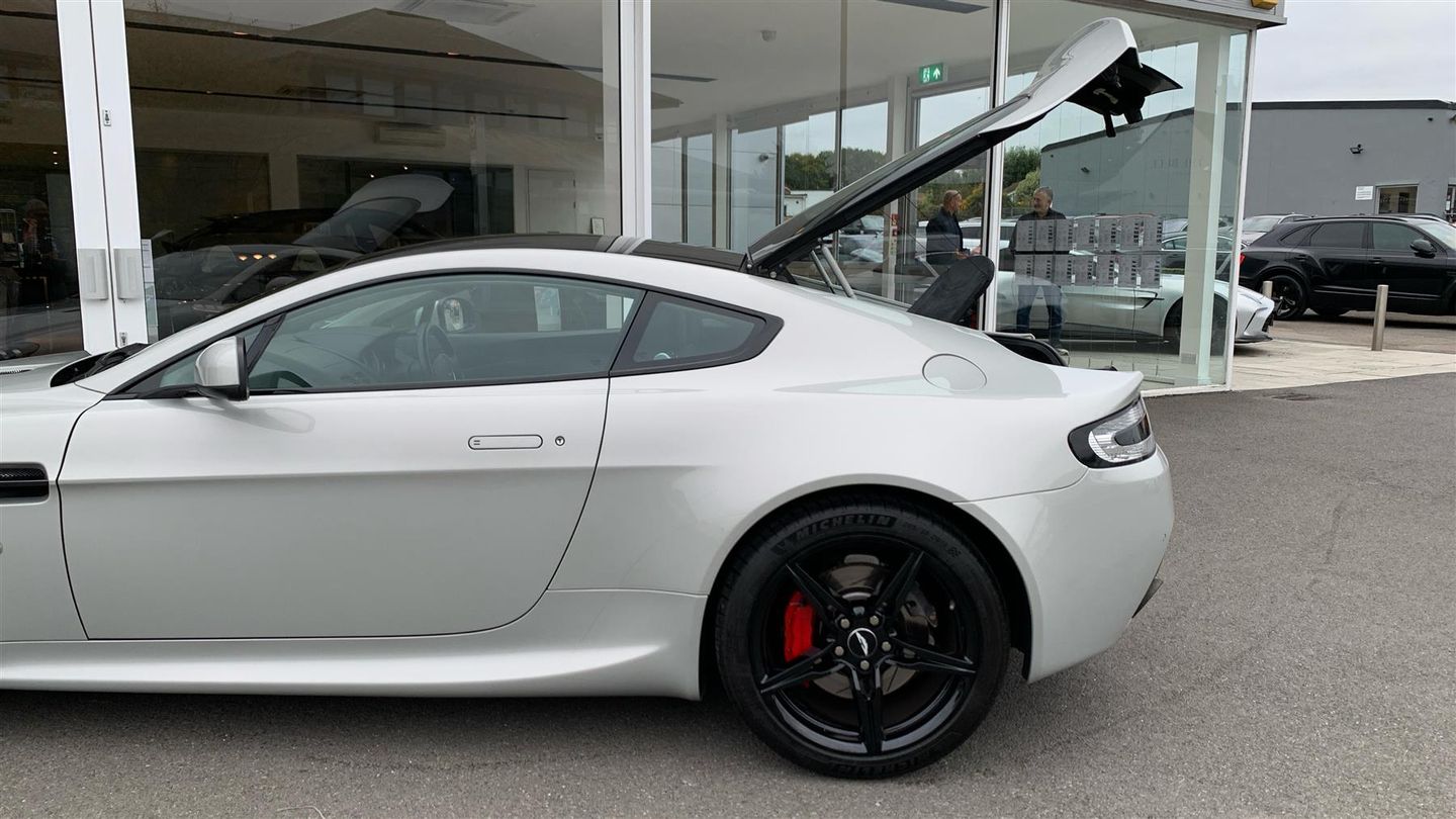 Rare in Silver Fox with Obsidian Black Leather, updated haptics dash. Such a great drivers car. Immaculate Condition. Rare Silver Fox paintwork with Obsidian Black leather, full history with the service just been completed. New Michelin Pilot Sports fitted earlier this year. Orginally Supplied by Grange Brentwood and always serviced by us having been done every year with the lastest in Aug 25. Car comes with Red Brake Calipers, Factory Sports Exhaust, Black Vaned Front Grille, Heated Seats, Black Meshes, Front and Rear Parking Sensors, Haptics Dash, Matte Black Exhaust Tips, Auto Dim Rear View Mirror, Navigation, Glass Switches, Clear Rear Lamps. Fantastic Condition Throughout, 12 Months Premium Aston Martin Warranty Included, Part Exchange and Finance Options Available ..