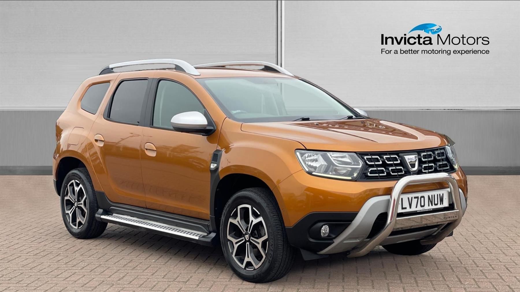 A lovely Dacia Duster Prestige, finished in the metallic Desert Orange. Unlock adventure with the Dacia Duster 1.3 TCe 130 Prestige 5dr. Designed for those who value practicality and style, this robust SUV comes equipped with a range of features to enhance everyday driving. Keyless entry simplifies access, while climate control keeps the cabin just right. The reverse camera makes parking effortless and blind spot alert boosts safety. Long drives will be a breeze with cruise control, and our 7-inch navigation system ensures you're always on the right path. The Dacia Duster is ready to handle anything life throws your way with reliability and flair. Embrace every journey confidently..