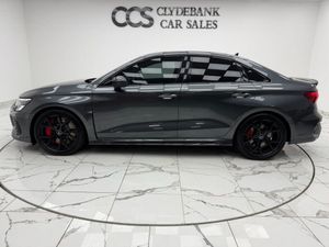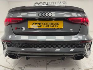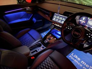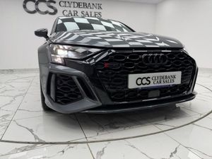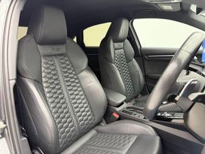 19in Alloy Wheels - 5-Y-Spoke-Matt Black, Airbags - Driver and Front Passenger with Passenger Airbag Deactivation, Aluminium Interior Elements, Ambient Lighting Pack, Anti Theft Locking Wheel Bolts, Anti-Theft Alarm, Audi Beam, Audi Connect Emergency Call and Service, Audi Connect Infotainment Services (3 Month Subscription From New), Audi Drive Select, Audi Matrix LED Headlights with LED Rear Lights - Dynamic Front and Rear Indicators - Headlight Cleaning System, Audi Pre-Sense Front, Audi Smartphone Interface, Audi Sound System, Audi Virtual Cockpit with RS Specific Display, Auto-Dimming Rear-View Mirror, Black Roof Colour, Black Styling Pack, Bluetooth Interface, Brake Calipers Painted in Black with RS Logo at the Front, Cloth Headlining in Black, Collision Avoidance Assistant, Cruise Control, DAB Digital Radio, Door Mirrors - Electrically Folding and Heated and Auto Dimming on Both Sides, Door Sill Trims - Inlays in Aluminium and Illuminated with RS3 Logo, Dual-Zone Electronic Climate Control, ESC - Electronic Stabilisation Control inc ABS - ASR and EDL, Electric Windows - Front, Electronically Operated Child Locks, Engine Compartment Cover with Carbon Trim, Exterior Mirror Housings in Carbon, First Aid Kit and Warning Triangle, Flat Bottomed 3 Spoke Leather Multi-function Sport Steering Wheel with Gear Shift Paddles in Aluminium Look - Contrast Stitching and RS Badging, Front Centre Armrest, Front Side Airbags with Head Airbags and Interaction Airbag, Front Spoiler in High Gloss Black, Front and Rear Floor Mats, Headlights Washers, Heated Front Seats, Hill Hold Assist, I-Size and Top Tether Child Seat Mounting for the Outer Rear Seats, Interior Inlays - Full Decorative Carbon Trim, Lane Departure Warning, Legal Emergency Call - E-Call, Light and Rain Sensor, MMI Navigation Plus with MMI Touch, Manual Boot Compartment Lid, Manual Front Seat Adjustment, Matt Aluminium Look Window Trims, Parking Assist with Parking System Plus, Pedals in Stainless Steel and Footrest in Black, Privacy Glass, Progressive Steering, RS Body Styling, RS Emblem, RS Exterior Features in Gloss Black, RS Sport Exhaust System, Rear Suspension, Remote Central Locking, Seat Belt Reminder with Passenger Presence Detection in Rear, Side Skirt in Carbon Inlay, Split Folding Rear Seat Bench - 60-40 or Fully, Storage Package, Tool Kit, Tyre Pressure Loss Indicator, Tyre Repair Kit, Windscreen with Acoustic Glazing