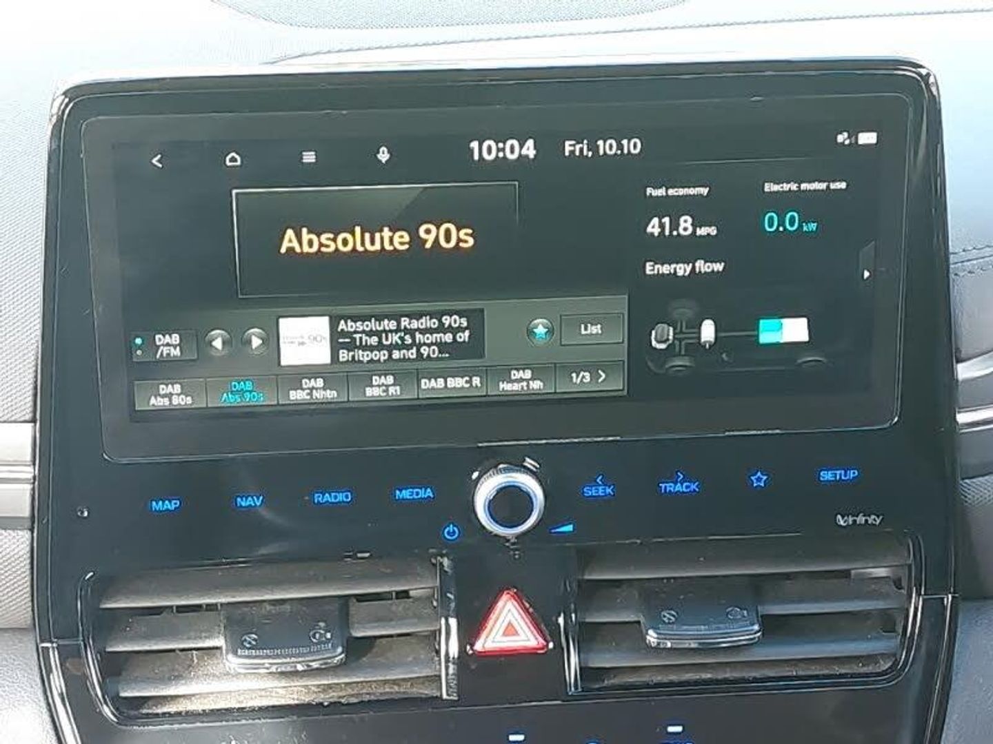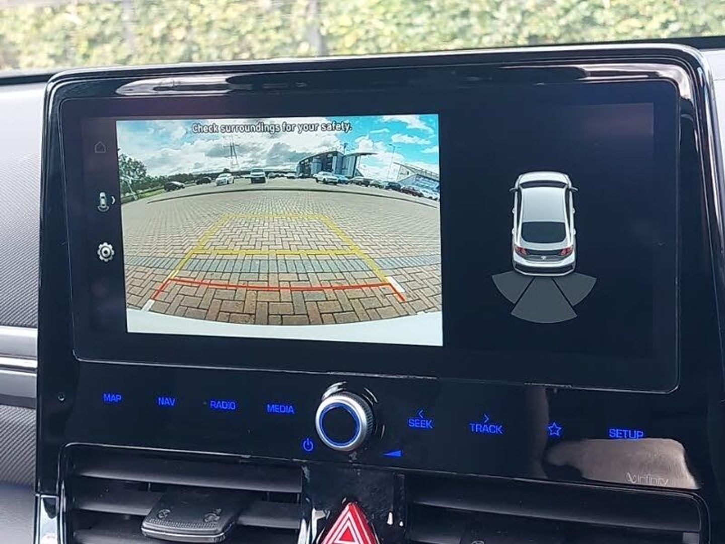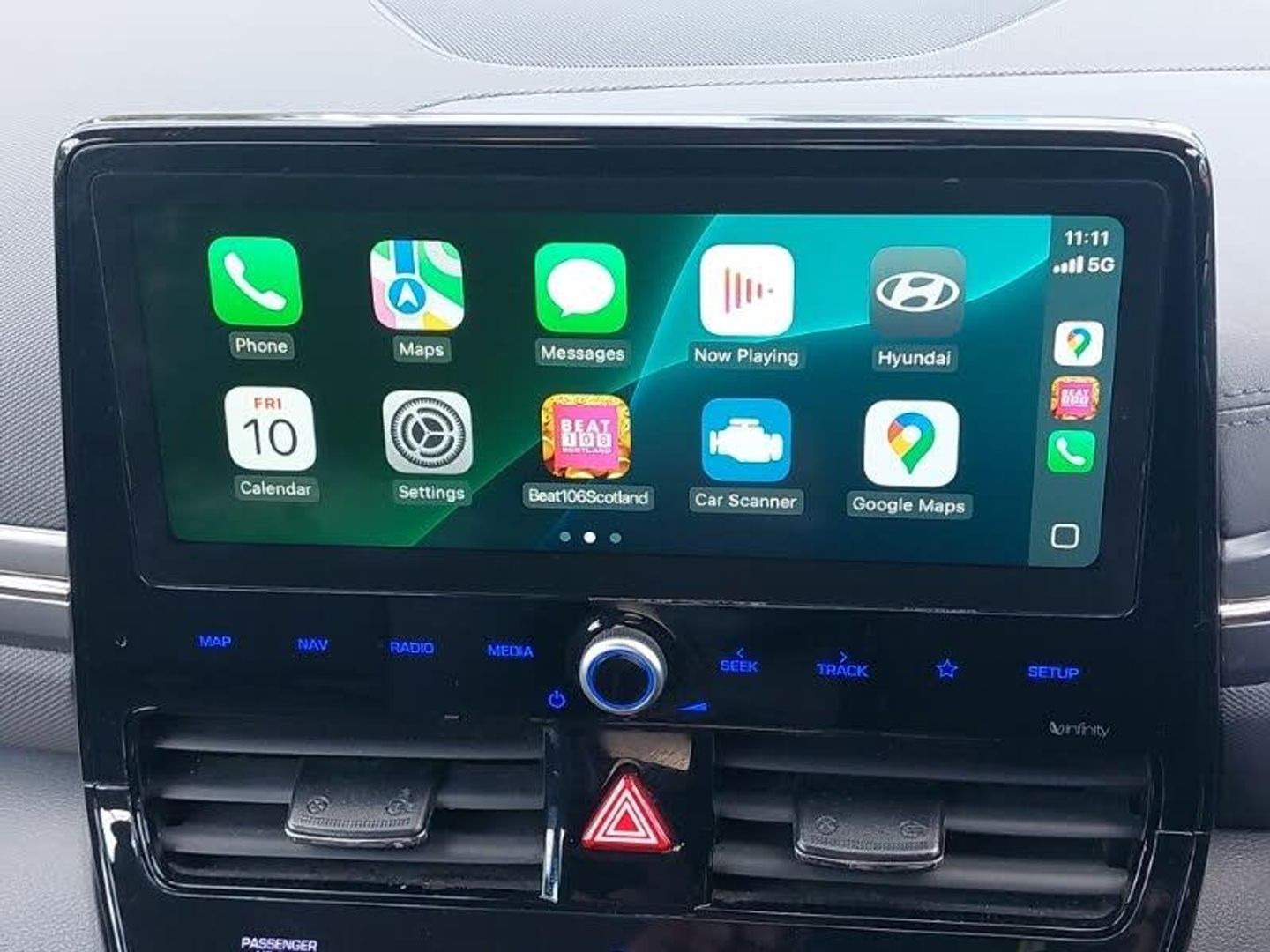 10.25" touchscreen satellite navigation includes traffic messaging channel, mapcare, live services and bluelink, Apple car play/Android Auto, Bluetooth system, Cruise control, Wireless phone charging pad, Parking system with rear camera and guidance system, DAB Digital radio, Infinity sound system includes 1 centre, 2 tweeters, 2 front, 2 rear and 1 ext amp, Steering wheel audio, phone and cruise controls, Dual zone climate control, Heated front seats, Heated steering wheel