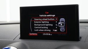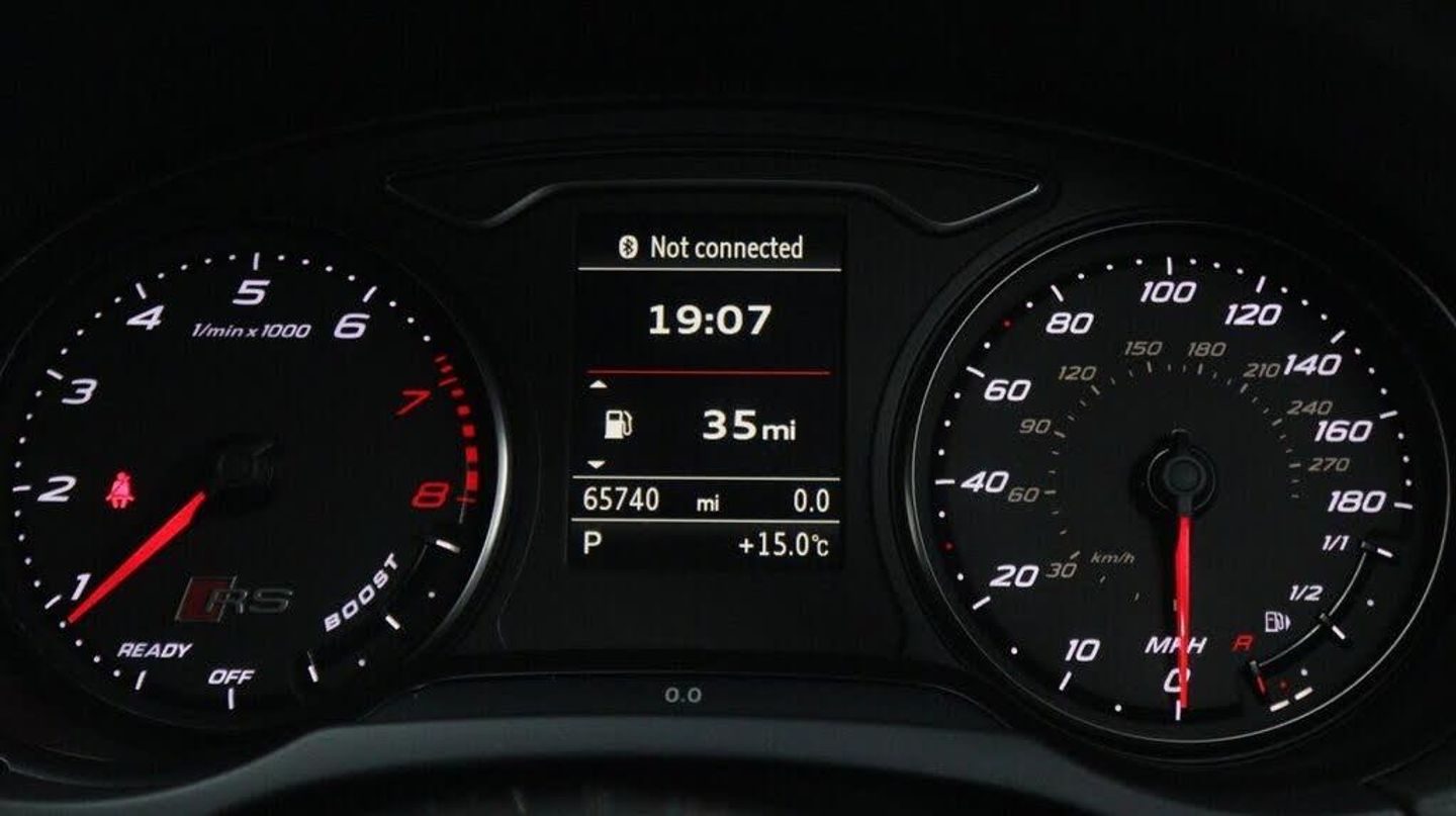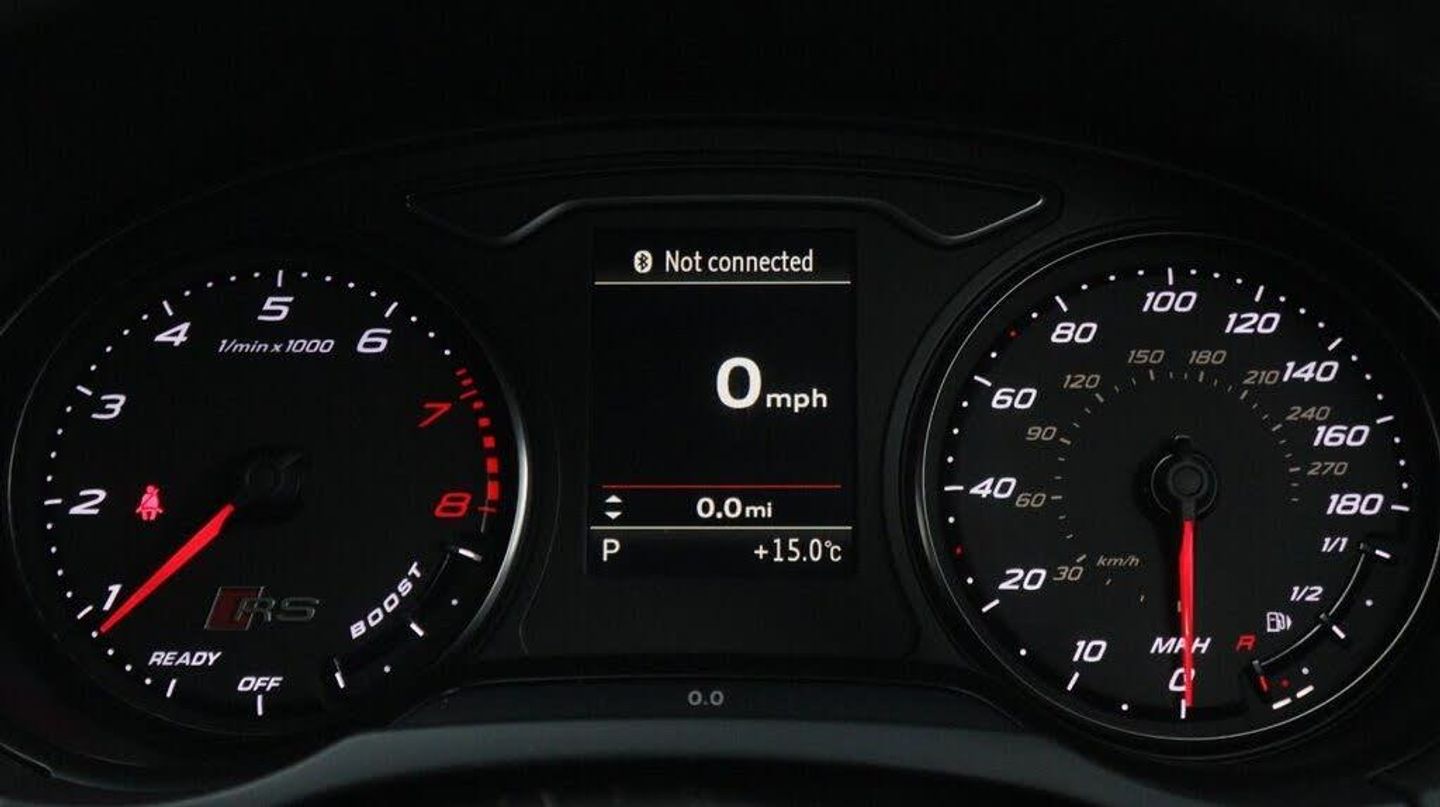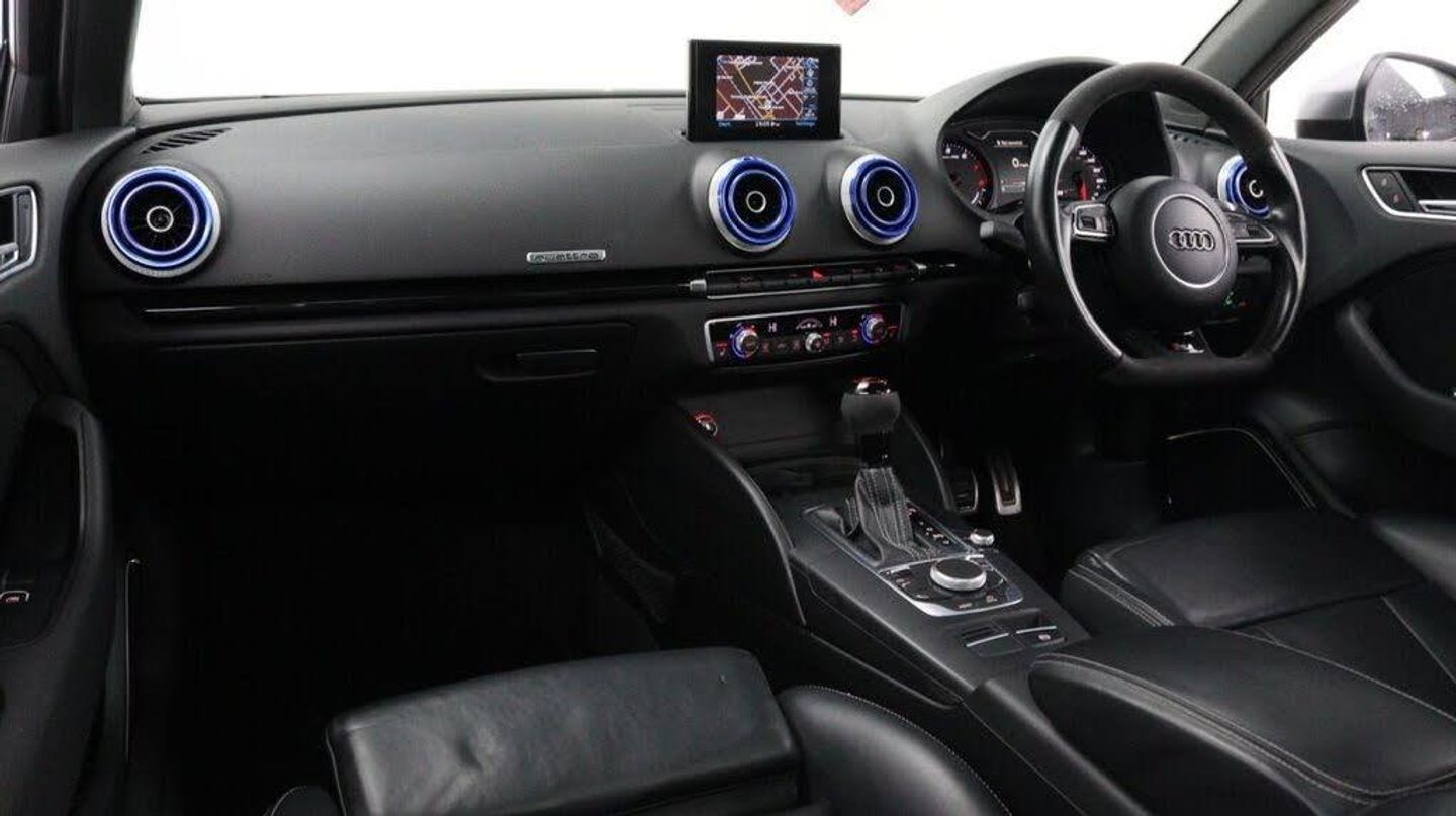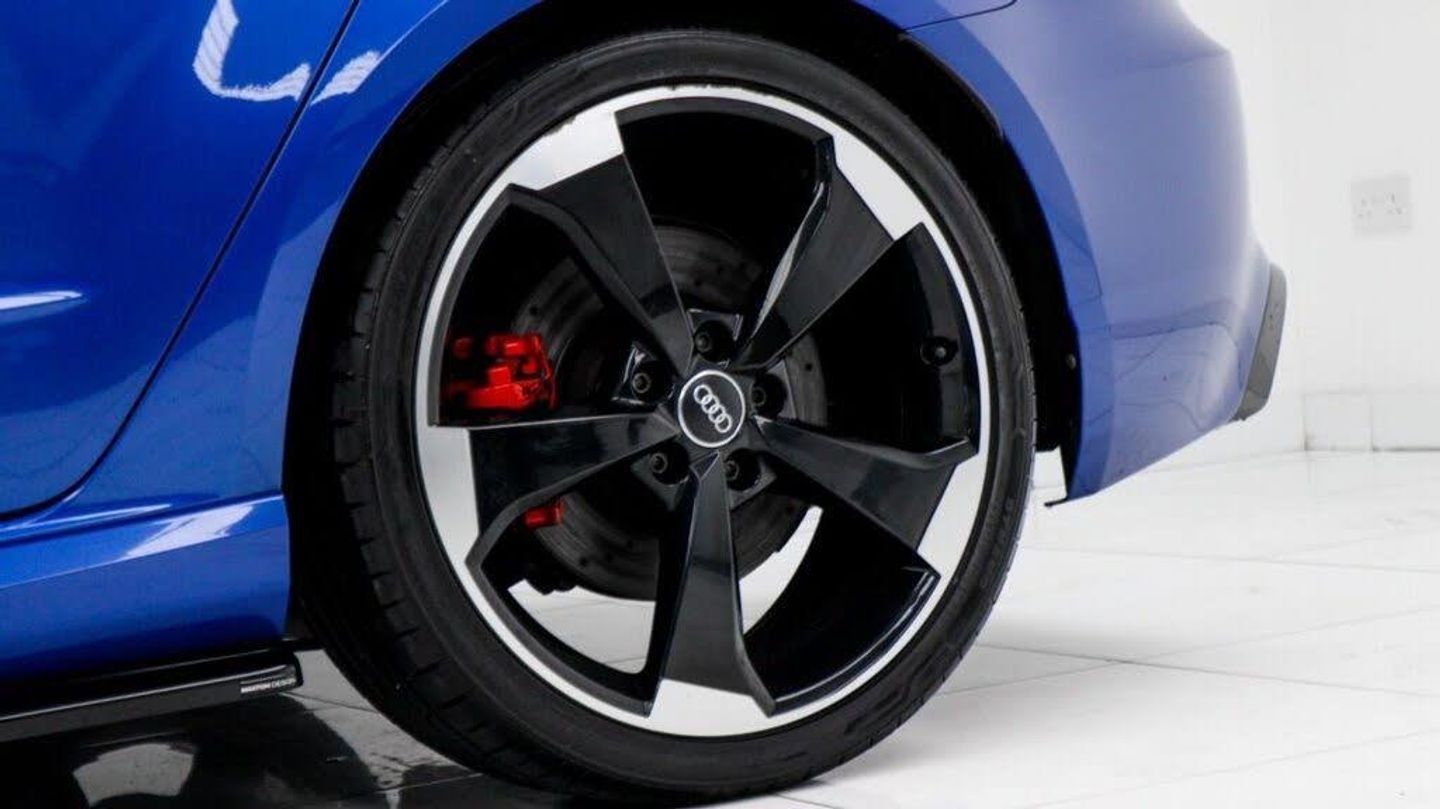Sepang Blue, Fine Nappa Leather with Diamond Quilting - RS Super Sports Seats - Lunar Silver/Granite Grey Stitching RS3 Logo, Cruise Control, Bang and Olufsen Sound System, Audi Hill Hold Assist, RS3 Design Package, Electrically Adjustable 4-Way Lumbar Support, Privacy Glass, Styling Package - High-Gloss Black, Door Mirrors - High-Gloss Black Housing, Panoramic Glass Sunroof, Brake Calipers - Red with RS3 Logo, Black Roof Rails, 19in Alloy Wheels - 5-Arm Rotor Design - Matt Titanium - Diamond Cut Finish, 12V Power Socket - Rear, 12V Power Socket - Rear x2, 19in Alloy Wheels - 5-Arm Rotor Design - Galvanised Silver, ABS - Anti-Lock Braking System, AMI - Audi Music Interface, ASR - Anti Slip Regulation, Adaptive Brake Lights, Airbags - Driver, Airbags - Drivers Knee, Airbags - Front Passenger, Airbags - Front Side, Airbags - Head Level Side For Front and Rear, Alarm - Thatcham Category 1, All Weather LED Headlights, Aluminium Interior Elements, Aluminium Look Pedals, Aluminium-Effect Door Mirror Housings, Anti Theft Locking Wheel Bolts, Audi Drive Select, Audi Parking System Plus, Audi Parking System Rear with Acoustic Indicators, Automatic Wipers with Rain Sensor, Brake Calipers - High Gloss-Black with RS3 Logo, Cables x2 - MP3 Connection Including iPod, Car Jack, Cloth Headlining in Black, Colour Drivers Information System - DIS, Cup Holders - x2 in Centre Console, DAB Digital Radio, Display Screen Colour - 5.8in, Door Mirrors - Electrically Adjustable and Heated, Door Sill Trims - Aluminium with RS3 Logo, Dual-Zone Electronic Climate Control, EBD - Electronic Brakeforce Distribution, EDL - Electronic Differential Lock, ESP - Electronic Stability Programme, Electric Windows - Front and Rear, Electromechanical Parking Brake, Exhaust Tailpipe - RS, First Aid Kit, Front Bumper with Enlarged Air Inlets, Front Centre Armrest, Front Passenger Airbag Deactivation Switch, Front Sports Seats, Front and Rear Floor Mats, Full European Map Data, Grab Handles - Dampered, Head Restraints - Rear, Headlights - Coming-Leaving Home Function, Headlights - Light Sensor, Heat Insulating Glass, Heated Front Seats, Heated Rear Windscreen, ISOFIX Child Seat Mounting for Front Passenger and Rear Outer Seats, Immobiliser, Inlays - 3D Design Black, Interior Elements - Air Vents - Aluminium, Interior Elements - Frame Around the Inside Door Handle - Aluminium, Interior Elements - Glove Compartment - Aluminium, Interior Elements - Window Control Switches - Aluminium, LED Daytime Running Lights, LED Rear Lights, Luggage Compartment - Side Net, MMI Radio, MMI Touch, Manual Front Seat Adjustment, Mobile Telephone Preparation - Bluetooth Interface, Pollen Filter, Progressive Steering, RS Body Styling, RS Brake System - High Performance, RS Instrument Panel with Black Dials and Red Needles, RS Sports Suspension, Radiator Grille - Honeycomb Design, Rear Diffuser - RS3, Remote Central Locking with 2 Fold Away Keys, Roof Spoiler - RS3 Specific in Body Colour, Satellite Navigation System - SD Card Based, Seat Belt Reminder for All Seats, Seats - Adjustment for Cushion Depth, Seats - Extendable Thigh Support, Seats - Split Folding Rear - 60-40, Side Sills - RS, Smoking Package, Steering Wheel - 3-Spoke MultiFunction-Flat-Bottomed-Leather with Alcantara Inserts with RS Emblem, Steering Wheel - Gear Shift Paddles - Aluminium, Storage Compartment Under Rear Seat, Storage Net in Front Passenger Footwell and Front Seat Backrests, Storage and Luggage Package, Tool Kit, Tyre Pressure Monitoring System, Tyre Repair Kit, USB Connection, Voice Control - Navigation, Warning Triangle