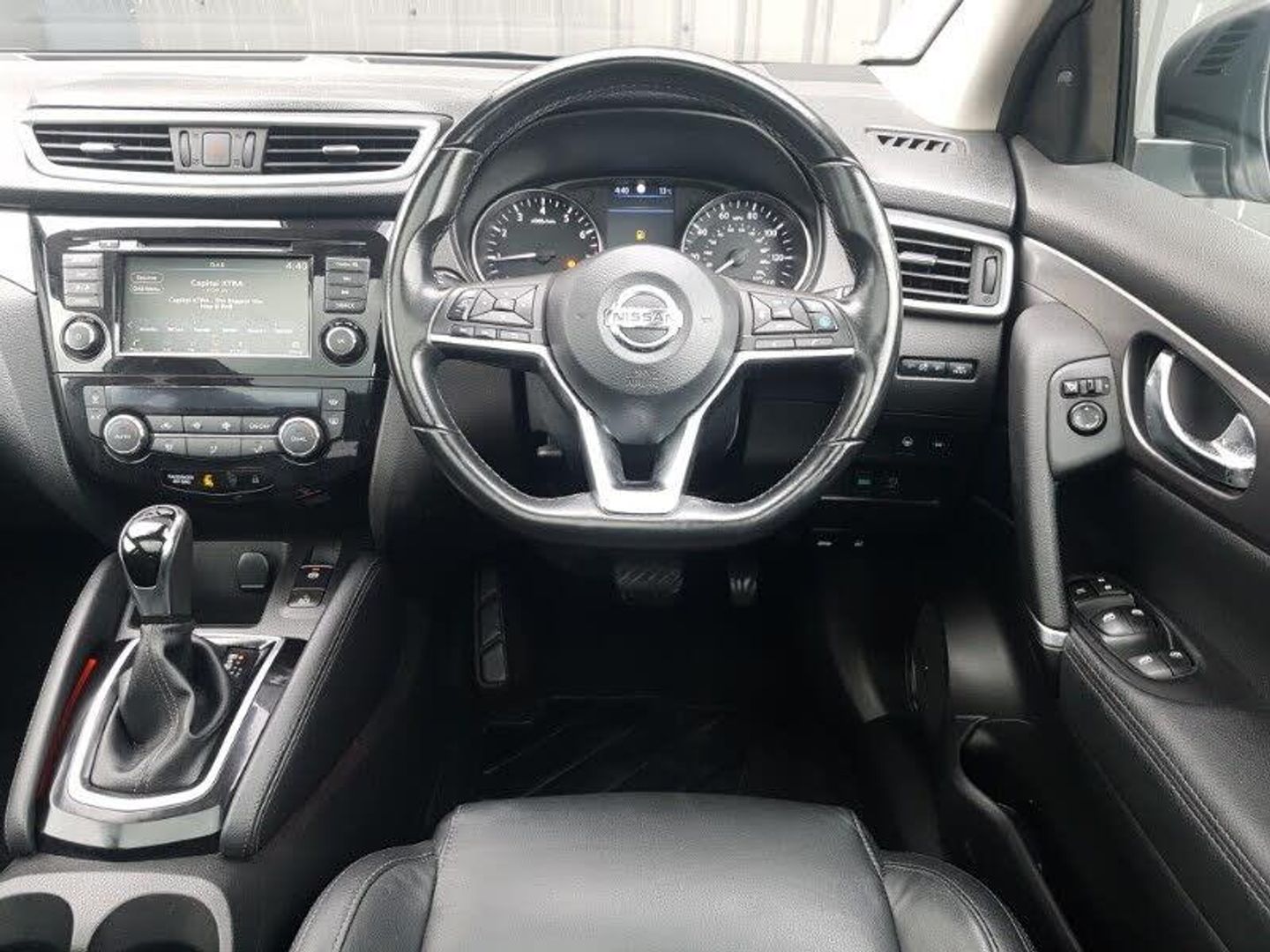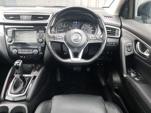 Traffic sign recognition, Tomtom connected services, Smartphone integration, Rear view camera, Rear parking sensors, Normal or sport selectable steering, Nissan connect evo 7" touchscreen navigation and entertainment system, Lane departure warning system, Intelligent parking assist, Intelligent around view monitor, Front parking sensors, Bluetooth connectivity, Apple CarPlay preparation, Android Auto, Advanced drive assist display 5'' TFT coloured screen, Rear USB connection, Bose premium 8 speaker system, Panoramic sunroof with one touch shade, Daytime running lights dip function when turn signal applied, Safety shield plus pack - Qashqai, ProPilot pack - Qashqai, Heat package - Qashqai, 19" Alloy wheels