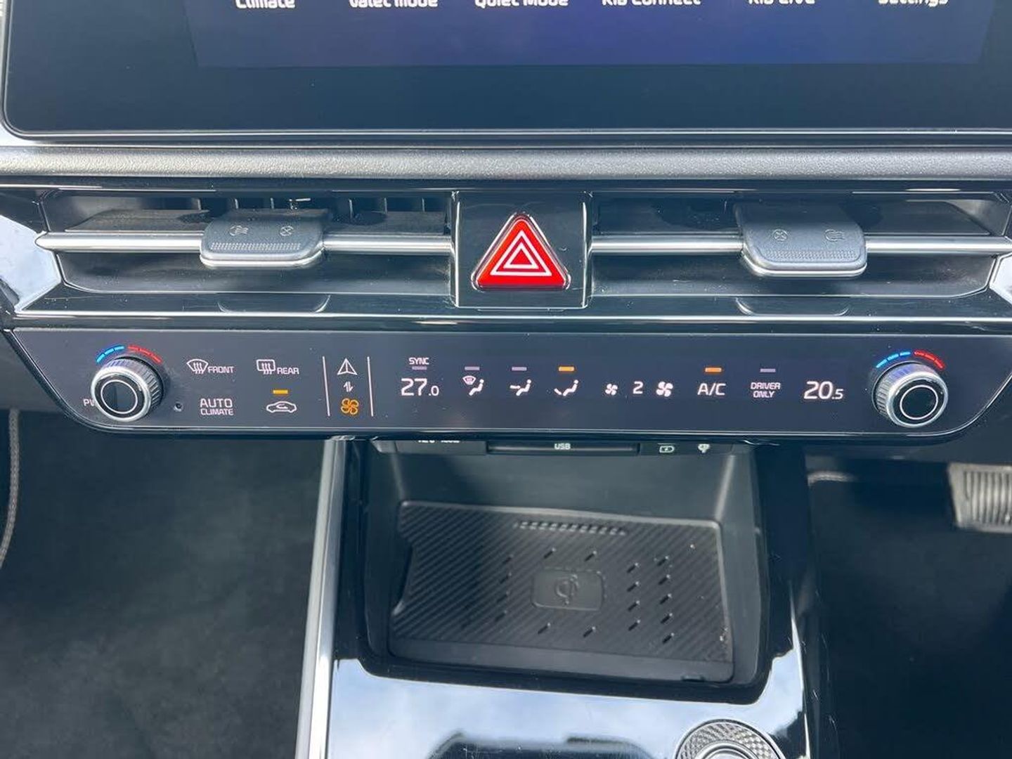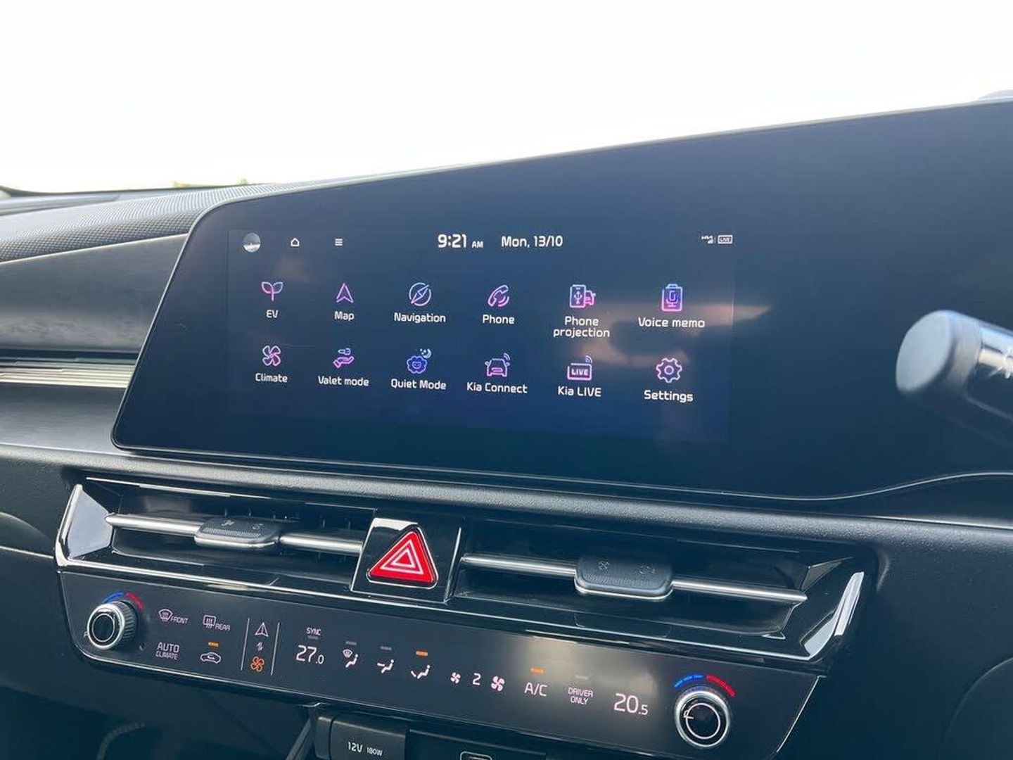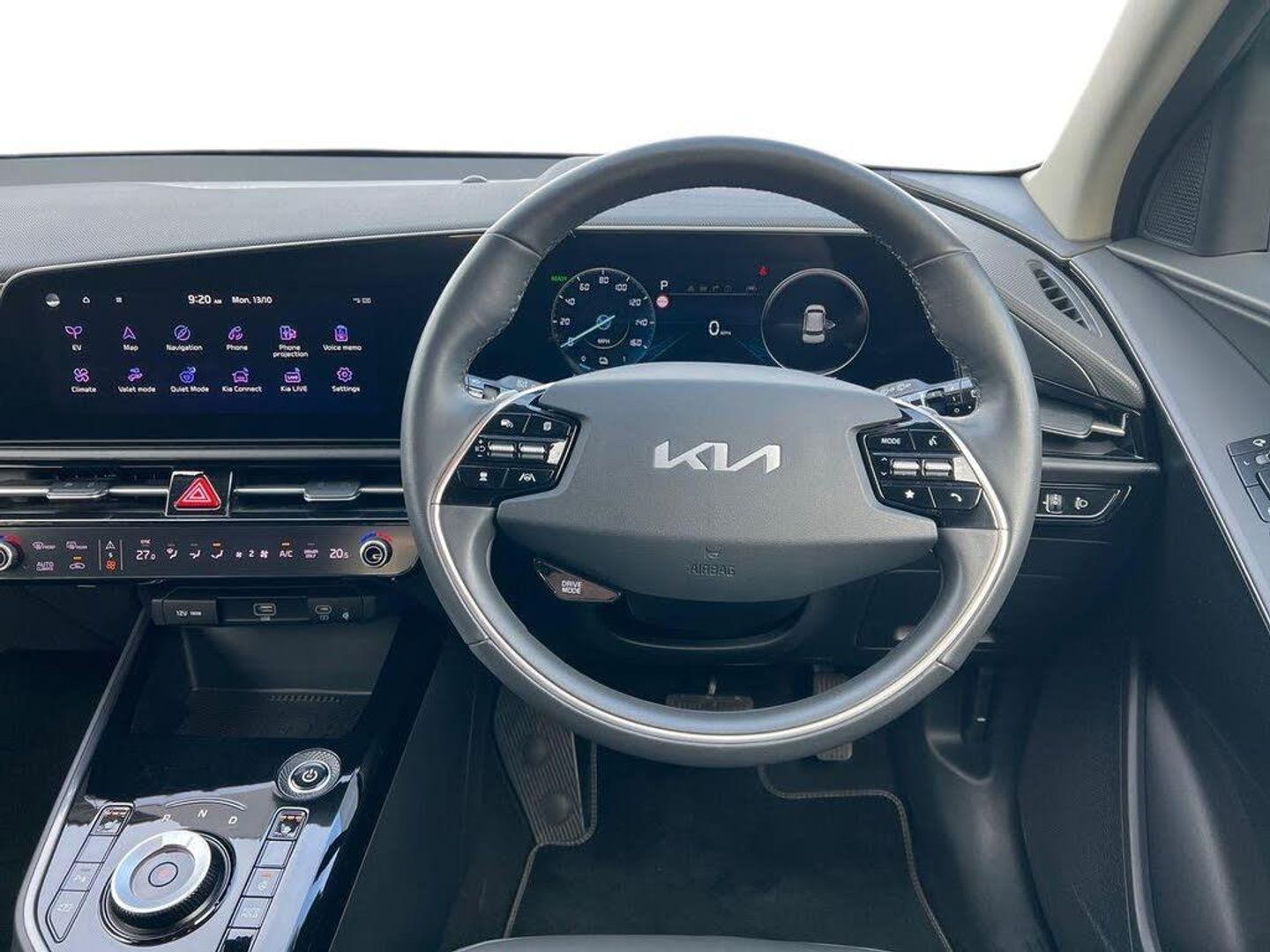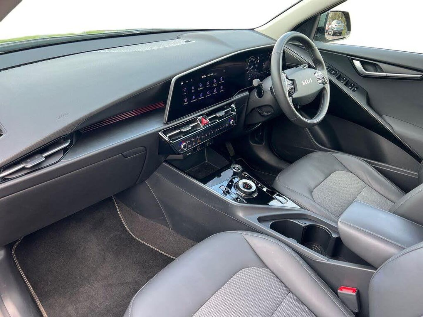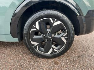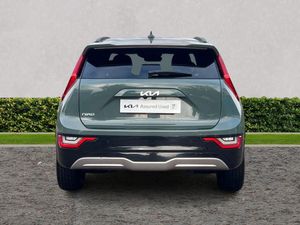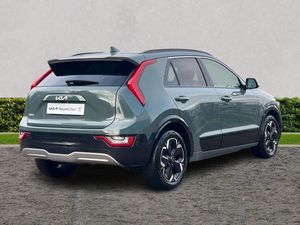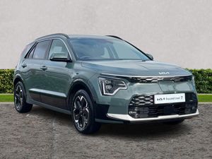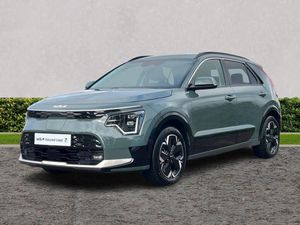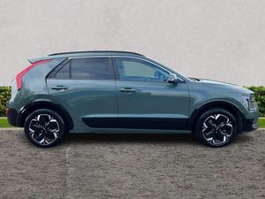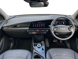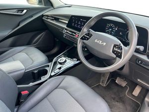 10.25" Supervision colour cluster display, 10.25" touchscreen satellite navigation, Adaptive smart cruise control function (SCC) with stop and go, Apple car play/Android Auto with voice control, Blind spot collision avoidance assist, Charging indicator on dashboard, Digital clock, Drive mode select (Eco, normal, sport, snow), E-call, Emergency stop signalling system, Forward Collision-Avoidance Assist (FCA) 1.5 - City/Pedestrian/Cyclist/Junction turning, Front parking sensors, Highway Driving Assist (HDA), Intelligent speed limit assist, Kia Connect (UVO), Lane Following Assist (LFA), Lane keep assist, Motor driven power steering, Rear parking sensors, Reversing camera with dynamic guide lines, Tailgate, Trip computer with distance/fuel consumption/average speed, Vehicle-to-device (V2D), Wireless Smartphone charger, 11 kW AC onboard charger, Battery heating system, Front Grille Charging Port, 'Shark fin' mobile antenna, 2 type C USB ports on front seats, 2 USB ports in centre console including 1 type C, 6 speakers, Bluetooth with music streaming, DAB Digital radio, Steering wheel mounted controls, Acoustic windshield, All round electric windows with drivers and front passenger auto up/down and safety function, Auto dimming rear view mirror, Automatic defog system, Automatic headlight control system, Black beltline mouldings, Black grille with chrome surround, Body colour bumpers, Body colour exterior door handles, Dual LED headlights (low and high projection), Electric heated door mirrors, Electrically folding door mirrors, Front and rear chrome skid plates, Front fog lights, Gloss Black Cladding, Heated rear window with timer, High gloss black door mirrors, LED daytime running lights, LED rear combination lights, LED third brake light, Privacy glass - Rear windows and tailgate, Rain sensing front wipers, Rear fog lights, Rear side wing doors, Rear spoiler, Rear wiper, Roof rails, Solar glass windscreen, Standard door scuff plates, Welcome and follow-me home light functionality, Windscreen Washer Level Warning, 12v socket in front, 12V socket in luggage compartment, 3 seat bench in 2nd row, 60/40 split/folding 2nd row of seats, Air filter, All-round height adjustable headrests, Artificial leather centre console storage box, Artificial leather steering wheel, Bulb type overhead console lamp with sunglasses case, Centre console cupholder, Chrome coating interior door handles, Cloth / Artificial leather upholstery, Driver's power adjustable seat, Driver/passenger sunvisors with illuminated vanity mirrors, Drivers seat power lumbar support, Dual zone automatic air conditioning, Front and rear door storage, Heated front seats, Heated steering wheel, Illuminated glovebox, Interior door lock/unlock function, ISOFIX Child seat top tethers and anchor fixings, Luggage area lamp, Luggage area load cover, Luggage board, Paddle shifts, Passenger seat height adjuster, Seatback pocket - driver, Seatback pocket - front passenger, Shift by wire SBW, Single front passenger seat, Tilt/telescopic adjustable steering wheel, Ventiliation ducts to rear compartment, Towing pack - Niro, 3 point seatbelts on all seats, ABS, Automatic unlocking of doors in case of impact, Centre side front airbags, Curtain and side airbags, Drivers knee airbag, Dual shell horn, Electric parking brake with auto hold function, Electronic stability control, Front passenger airbag deactivation, Height adjustable front seatbelts, Hill start assist control (HAC), Manual rear child locks, Rear seat alert system, Traction control, Tyre pressure monitoring system, Alarm system and engine immobiliser, Deadlocks, Engine Start/Stop Button with Smart Entry System, Locking wheel nuts, Visible vehicle identification number, Warranty - 7 Years/ 100,000 miles, Metal chopped carbon centre fascia, 17" Alloy wheels, Tyre mobility kit