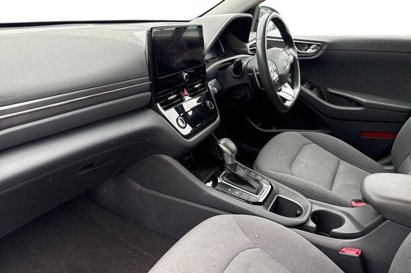 100 Percent MapCare Programme - 10 Years of Map Updates, 12V Power Outlet, 15in Alloy Wheels with Aerodynamic Wheel Trims - Design B, ABS - Anti-Lock Brake System, Air Conditioning - Driver-Only Mode, Air Conditioning - Dual Zone Climate Control, Airbags - Front - Front Side - Curtain and Drivers Knee, Arm Rest - Front with Storage, Automatic Dimming Rear View Mirror, Automatic Headlights with Dusk Sensor, Autonomous Emergency Brake, BlueLink, Bluetooth Connectivity, Centre Console - Tablet Storage, Cloth - Dark Grey, Cruise Control, Cup Holders - Front, Daytime Running Lights - LED, Deadlocks, Door Mirror Puddle Lights, Door Mirrors - Body Coloured, Door Mirrors - Electric Adjustment and Heated with Power Fold, Door Scuff - Chrome with IONIQ Logo, Drive Mode Select - Gear Lever, Driver Attention Alert - DAA, Drivers Seat Height Adjustment - Manual, Drivers Supervision Instrument Cluster with TFT Display - 7in, eCall, ECO DAS - ECO-Driving Assistant System, Electric Power Steering with Variable Drive Modes, Electric Windows - Front and Rear, Electric Windows - Front with Anti-Trap and One Touch Controls, Electronic Stability Control - ESC, Exterior Door Handles - Body Coloured with Chrome Insert, Fog Lights - LED Rear, Front Head Restraints - Vertical and Horizontal Adjustment, Front Passenger Airbag De-Activation Switch, Front Passengers Seat - Heated, Front Seat Back Pockets - Drivers Seat, Front Seat Back Pockets - Passengers Seat, HAC - Hill-Start Assist Control, Head Restraints - Rear with Vertical Adjustment, Headlights - Higher Beam LED, Headlights - Lower Beam LED, Heated Rear Windscreen, Heated Steering Wheel, Indicator Lights - Door Mirror - LED, Interior Door Handles - Chrome Effect, Interior Light - Centre, Interior Light - Luggage Compartment, Interior Light - Map Reading Lights, Lane Departure Warning System with Lane Keeping Assist, Leather Wrapped Steering Wheel, Luggage Net, Paddle Shift Gear Change, Parking Brake - Foot, Parking Sensors - Rear, Parking System - Rear Camera and Guidance System, Passenger Seat Height Adjustment - Manual, Phantom Black, Phone Connection - Android Auto, Phone Connection - Apple CarPlay, Positioning Lights LED, Radiator Grille - Active Air Flap, Radiator Grille - Chrome, Radio - RDS and Digital Radio - DAB, Rear Air Vents in Centre Console, Rear Bumper - Two-Tone, Rear Lights - LED, Rear Spoiler with Integral LED Brake Light, Rear View Monitor, Remote Central Locking, Seats - Drivers Electric Lumbar Support, Seats - Heated Drivers, Side Body Moulding, Smart Key - Keyless Entry with Engine Start-Stop Button, Solar Glass with Windscreen Shade Band, Speakers - Upgraded Infinity Sound System - 1 Centre - 2 Tweeters - 2 Front - 2 Rear - 1 Subwoofer and 1 Ext. Amp, Split Folding Rear Seats - 60-40, Steering Wheel with Audio - Phone and Cruise Controls, Sun Visors with Driver and Passenger Illuminated Vanity Mirrors, Sunglasses Holder, Touchscreen Satellite Navigation - 10.25in, Tyre Pressure Monitoring System with Individual Tyre Display, Tyre Repair Kit, USB - Drivers Arm Rest - Charging Only, USB and AUX Connections - Front, Window Surround - Chrome Finish, Windscreen Washer Fluid Sensor and Warning Indicator, Wireless Phone Charging Pad