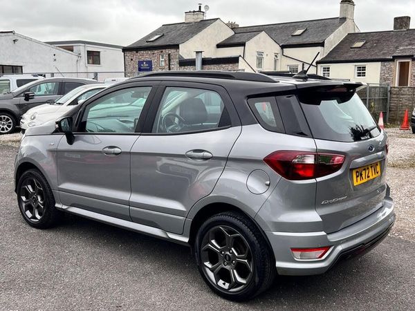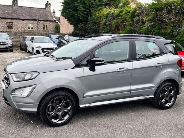 Supplied new by ourselves to one local owner... Full Rufus Carr(Ford) service history...Ecosport ST-Line 1.0 125ps... Fitted with optional Winter pack(Heated front seats and heated steering wheel) and contrast black roof... Great standard spec with Sat nav, partial leather seats and rear view reversing camera... Will be supplied with 12 Months MOT, 12 Months Ford assist and 3 months warranty... For more information or to arrange an appointment to view/test drive, please email sales@rufuscarr.co.uk or call 01200 422173.