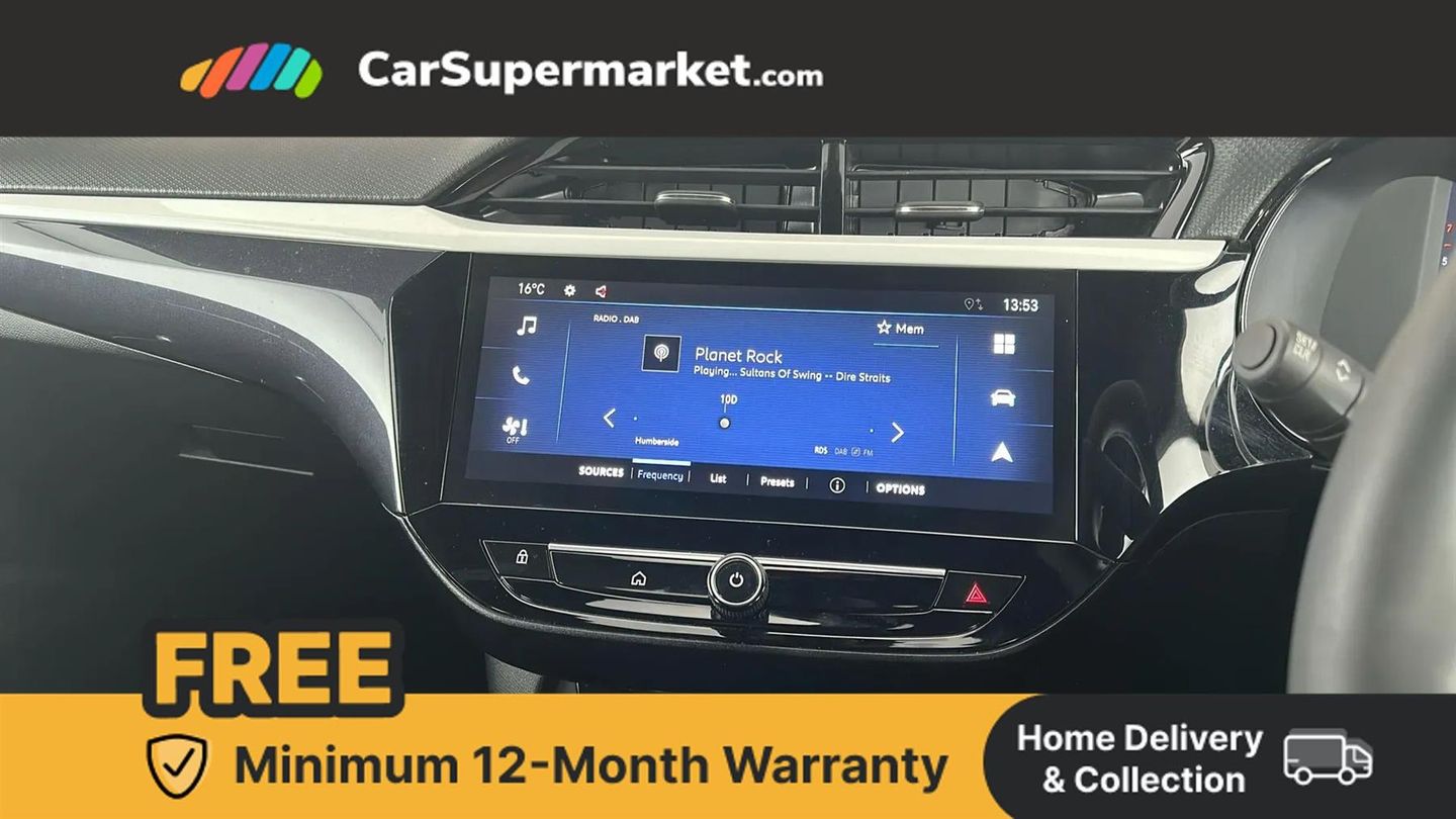 Bluetooth, Cruise Control, Parking Sensors, Lane Departure Warning, Blind Spot Monitoring, Traffic Sign Recognition, Apple CarPlay, Android Auto, Wireless Phone Charging, Digital Radio, 17" Alloy Wheels;Boasting low mileage for its age, this 2024 Vauxhall Corsa GS is a superb example of this popular model. With only one owner from new and a clear vehicle history check, this Euro 6 compliant Corsa is powered by an efficient 1.2L petrol engine. Its MOT is valid until January 2027, and it received its last service at 7608 miles on 10th October 2025. Notable features include Side Blind Spot Alert with Blind Spot Assistance and a Front Camera System offering Parking Assistance. This Vauxhall Corsa GS stands out with its very low mileage of just 7608 miles. Its low insurance group and low CO2 emissions highlight its cost effectiveness and environmental consideration, making it a more economical choice compared to many similar vehicles. This combination of low usage, excellent condition, and desirable features makes this Corsa GS a compelling option.
