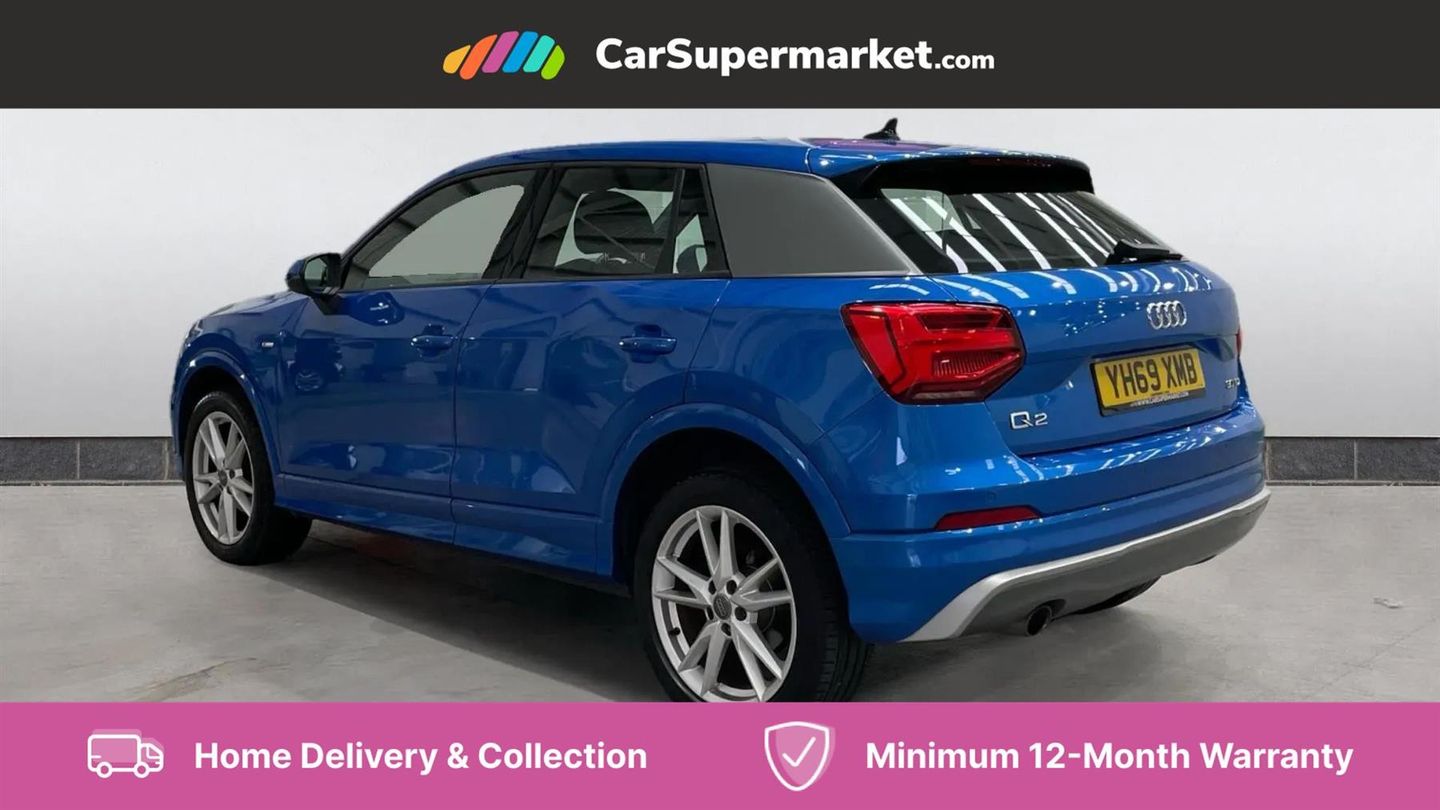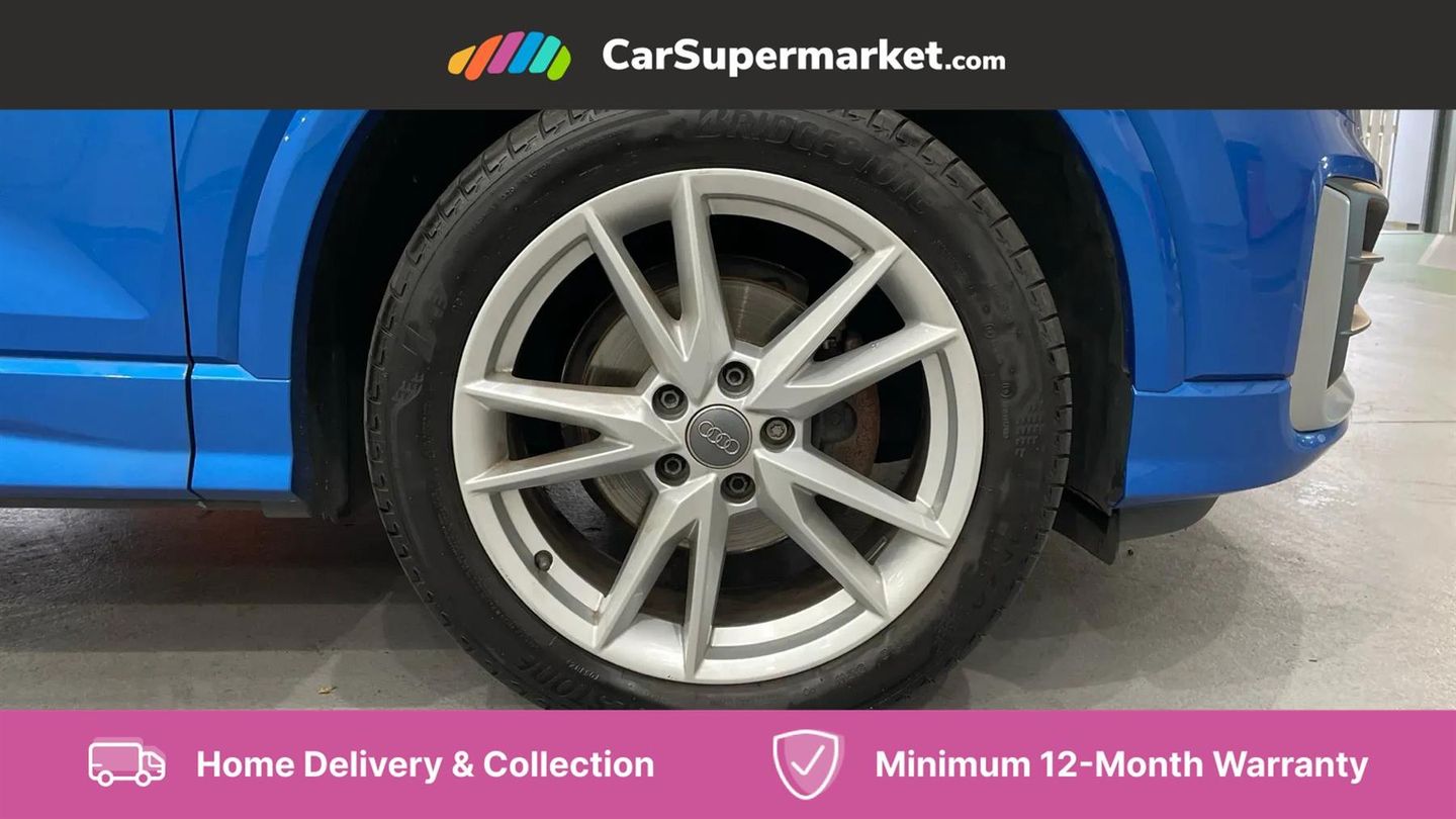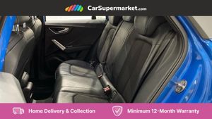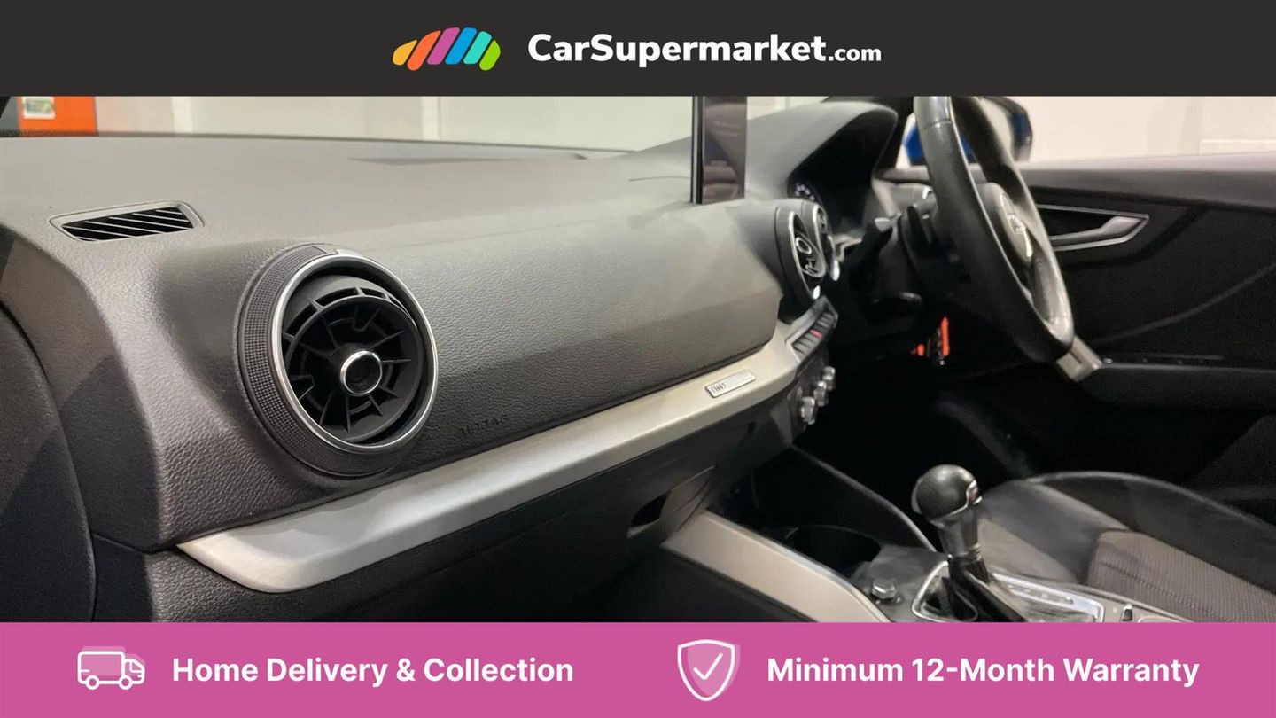 Audi drive select,Audi smartphone interface,Automatic start/stop system with recuperation,Bluetooth interface includes bluetooth audio streaming,Cruise control,MMI - Multi Media Interface control system,MMI SD card integrated nav with 3D map display, dynamic route guidance with TMC, MMI search, natural voice recognition and myAudi special destinations,Power operated tailgate,Progressive steering,Service interval indicator,Dynamic suspension,2 x SDXC card reader,Audi music interface - apple iPod, apple iPhone, USB storage media, compatible MP3 players, 2 x USB charging points and 1 x Aux-in,CD Drive,DAB digital radio and AM/FM radio,MMI radio plus with 7" colour MMI screen and MMI controller,Black window trims,Bumper in full body colour paint finish,Chrome exhaust tailpipe,Electrically adjustable and heated door mirrors with integrated LED side indicators,Front and rear electric windows,Front underbody guard and rear diffuser trim in selenite silver,Front windscreen with grey tinted sunband,Headlight washers,Interior mirror,LED headlights with LED rear lights + dynamic rear indicators,LED indicator lights,Manual folding door mirrors,Rain and light sensors,Rear wiper,S Line badges on the front wings,S Line body styling - front and rear bumpers, side skirts, radiator grille, rear diffuser insert and front air intakes,60/40 split folding rear seat bench,Black cloth headlining,Front centre armrest,Front headrests,Front sport seats with S embossed logo,Height/reach adjust steering wheel,Illuminated door sill trims with S logo,ISOFIX child seat mounting for front passenger with airbag deactivation and outer rear seat including top tether attachment point for outer rear seats,Manual seat adjustment including seat height adjustment for front seats,Stainless steel pedals,Storage compartments - Glovebox, cupholder compartment in centre console, storage compartment in rear centre console, front and rear door pockets,Three rear headrests,Non smoking pack - Q2,3x3 point rear seatbelts,6 airbags - Front, curtain and front side airbags,Electromechanical parking brake,Electronic stabilisation control including ABS, ASR and EDL,Extended and proactive pedestrian protection,Hill hold assist,Multi collision brake assist,Pre-sense front with pedestrian recognition,Seatbelt monitoring,Tyre pressure warning light,Warning triangle and first aid kit,Anti theft alarm,Anti theft wheel bolts,Central locking system with remote control key,Electronically operated child locks,Aluminium interior element