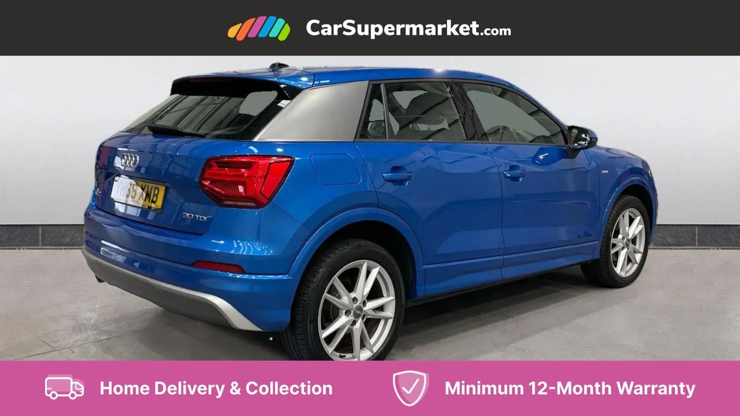 Apple CarPlay/Android Auto, Bluetooth, Cruise Control, Sat Nav, Apple CarPlay, Audi Music Interface, Digital Radio, Parking Sensors;With an MOT valid until October 2026 and a full service history, this 2019 Audi Q2 TDI S line offers excellent peace of mind. This stylish compact SUV is equipped with a 1.6 litre Euro 6 diesel engine, known for its efficiency. The vehicle has a clear history check and its last service was completed on 2025-06-09 at 75,056 miles. Inside, you'll find the Audi Smartphone Interface, which seamlessly integrates your Android Auto or Apple CarPlay devices. This Audi Q2 stands out with its impressive 46 mpg fuel economy, demonstrating its cost effectiveness for everyday driving. Furthermore, its low insurance group rating means that running costs are kept to a minimum, making it a sensible choice compared to many other vehicles. The S line trim level adds a touch of sporty refinement to this already desirable package.