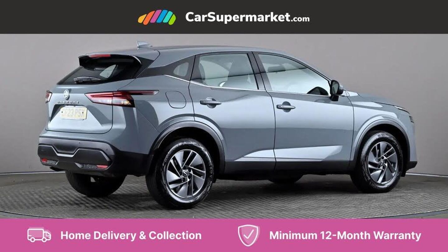 Apple CarPlay, Android Auto, Blind Spot Monitoring, Cruise Control, Lane Departure Warning, Parking Sensors, Traffic Sign Recognition, Bluetooth, Automatic Climate Control, 17" Alloy Wheels;This 2023 Nissan Qashqai DIG-T Acenta Premium boasts a full service history with its last service completed on 2025-04-28 at 23,134 miles, and benefits from an MOT valid until May 2026. This Euro 6 compliant 1.3L Petrol Hybrid is a single owner vehicle with a clear vehicle history check, offering peace of mind. It comes equipped with Intelligent Key for keyless entry, Intelligent Blind Spot Intervention and Blind Spot Warning to enhance your awareness on the road, and a Rear View Camera along with Rear Parking Sensors for effortless parking assistance. The Qashqai Acenta Premium stands out with its low insurance group, making it an economical choice for many drivers. Furthermore, its generous boot space provides ample room for shopping, luggage, or equipment, indicating a practical advantage over many other vehicles in its class. This combination of advanced features, excellent provenance, and practical highlights makes this Nissan Qashqai a compelling option.