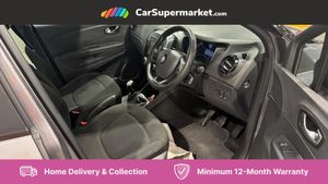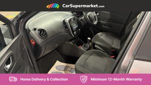Cruise control + speed limiter,Eco mode,Trip computer,Variable PAS,Auxiliary input socket,Fingertip controls for audio system,Body colour door handles,Body coloured bumpers,Electric front windows + one touch + anti-pinch,Electric rear windows,Extra tinted glass in rear windows and tailgate,Front skid plate,LED daytime running lights,LED front fog lights,Rain sensitive wipers + automatic lighting,Rear skid plate,Rear wiper,Variable intermittent front wash/wipe,12V Accessory socket,3 rear headrests,60/40 split folding rear seat bench,Automatic climate control with one touch demist function,Centre console storage tray,Compartment in glovebox,Dark harmony dashboard and door panels,Fixed cloth upholstery,Front cupholder,Heating system with pollen filter,Height adjustable driver's seat,Height adjustable SRP front headrests,Height/reach adjust steering wheel,ISOFIX on front passenger and rear outer seats,Reversible boot floor,Storage area on top of dashboard,Storage between front seats,Storage compartments in doors,Storage space near handbrake,Synthetic leather steering wheel,Variable boot floor,Exterior touch pack Chrome - Captur,Interior touch pack Chrome - Captur,3 point seatbelts on all rear seats,ABS+EBA,Driver/Front Passenger airbags,ESC - Electronic Stability Control + traction control,Front disc brakes and rear drum brakes,Front passenger airbag deactivation,Front side airbags(head+thorax),Hill start assist,Rear door child safety locks,Seatbelt warning,Tyre pressure warning light,Automatic door locking,Deadlocking system,Hands free access with keycard and start button,RAID (Renault Anti-Intruder Device) with automatic door locking,Remote central locking,Thatcham Cat 2 engine immobiliser,17" Explore alloy wheels with black inserts,Emergency Spare Wheel - Space Saver,Oyster Grey with Metallic Diamond Black Roof