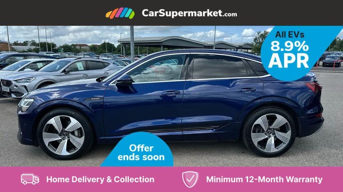 Wireless Phone Charging, Apple CarPlay/Android Auto, Audi Virtual Cockpit, Bluetooth, Sat Nav, Parking Sensors, Digital Radio, Privacy Glass, Heated Front Seats;With only one previous owner and very low mileage for its age at just 20425 miles, this 2022 Audi e-tron S line presents a compelling opportunity. This electric, four-wheel drive vehicle boasts an MOT valid until May 2026 and was last serviced in March 2024 at 13355 miles. The S line trim includes desirable features such as heated front seats, Audi Matrix LED headlights with dynamic front and rear indicators, and a rear-view camera to make parking easier. Bluetooth connectivity is included. The Audi e-tron S line stands out with its rapid acceleration, reaching 0-62mph in just 5.7 seconds, demonstrating its superior performance. The 95 kWh battery provides a maximum range of 261 miles when new. Charging is convenient, taking 14 hours at home with a 7kW charger, or as little as 40 minutes to reach 80% at a rapid public charging point. The vehicle also benefits from a large boot space, making it a practical choice.