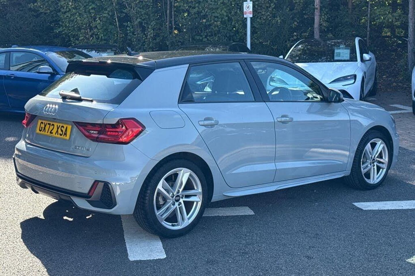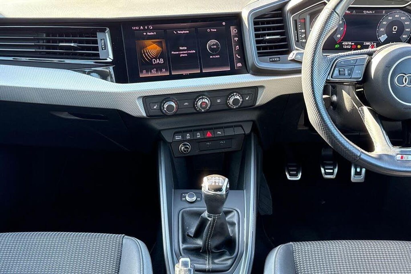 10.25in Digital Instrument Cluster, 17in Alloy Wheels - 5-Twin Spoke Design - Partly Polished, 1x SDXC Card Reader, 2x USB-C Connection Points, 3 Rear Seats with Headrests, 3-Spoke Leather Multi-Function Plus Steering Wheel with S Badging - Grips in Perforated Leather and Contrast Stitching, 6 Passive Loud Speakers, ABS - Anti-Lock Braking System, Accent Areas in Structured Grey - Quartz Paint Finish, Airbags - Driver, Airbags - Front Passenger, Airbags - Front Side, Aluminium Trim for Control Switches - Air Vents and Digital Instrument Cluster, Anti-Theft Alarm, Anti-Theft Wheel Bolts and Loose Wheel Warning, Audi Drive Select, Audi Pre-Sense Front with Pedestrian and Cyclist Recognition, Audi Smartphone Interface, Auto-Dimming Rear-View Mirror, Bluetooth Interface, Body Coloured Door Mirrors, Centre Console with Two Cup Holders and 12V Socket, Cruise Control, DAB Digital Radio, Door Mirrors - Folding - Electrically Adjustable and Heated with Integrated LED Side Indicators, Door Sill Trims with Aluminium Inlays and S Logo, Electric Front and Rear Windows, Electromechanical Power Steering, Electronic Stability Control - ESC including - EBD - ASR and EDL, First Aid Kit with Warning Triangle, Front Passenger Airbag Deactivation Switch, Front and Rear Floor Mats in Black with Contrast Stitching in Fine Silver, Gear Knob in Leather with Aluminium Trim, Heat-Insulating Glass Windscreen and Side Windows, Heated Rear Windscreen, Hill Hold Assist, ISOFIX Child Seat Mounting for Front Passenger and Outer Rear Seats - including Top Tether Attachment for the Outer Rear Seats, Interior Lighting - Front and Rear Reading Lights and Luggage Compartment Light, LED Headlights with LED Rear Lights and Dynamic Rear Indicators, LED Interior Lighting Pack, Lane Departure Warning, Leatherette Handbrake Grip, Light and Rain Sensors, Luggage Compartment Pack, MMI Radio Plus with 8.8 MMI Colour Display Screen and MMI Touch, Manual Air Conditioning, Pedals in Stainless Steel, Radiator Grille and Rear Diffuser in Matt Anthracite Black, Radiator Protective Grille Frame in Matt Aluminium Silver, Rear Fog Light, Rear Parking Sensors, Remote Central Locking with 2 Fold Away Keys, S Line Badges on the Front Wings, S Line Exterior Styling, Seatbelt Height Adjustment for Front Seats, Seatbelt Monitoring, Speed Limiter, Split-Folding Rear Seat - Can be Split-Folded 40-60 or Folded Fully, Sport Suspension, Tool Kit, Tyre Pressure Warning Light, Tyre Repair Kit, Voice Control, Washer Fluid Level Indicator, eCall, SONOS 3D SOUND SYSTEM, APPLE CARPLAY / ANDROID AUTO (r), COMFORT AND SOUND PACKAGE, PARKING SYSTEM PLUS, Arrow Grey, Contrast Roof - Mythos Black - Metallic, Pulse Cloth-Leatherette - Sport Seat with S Embossed Logo - Black with Fine Silver Stitching