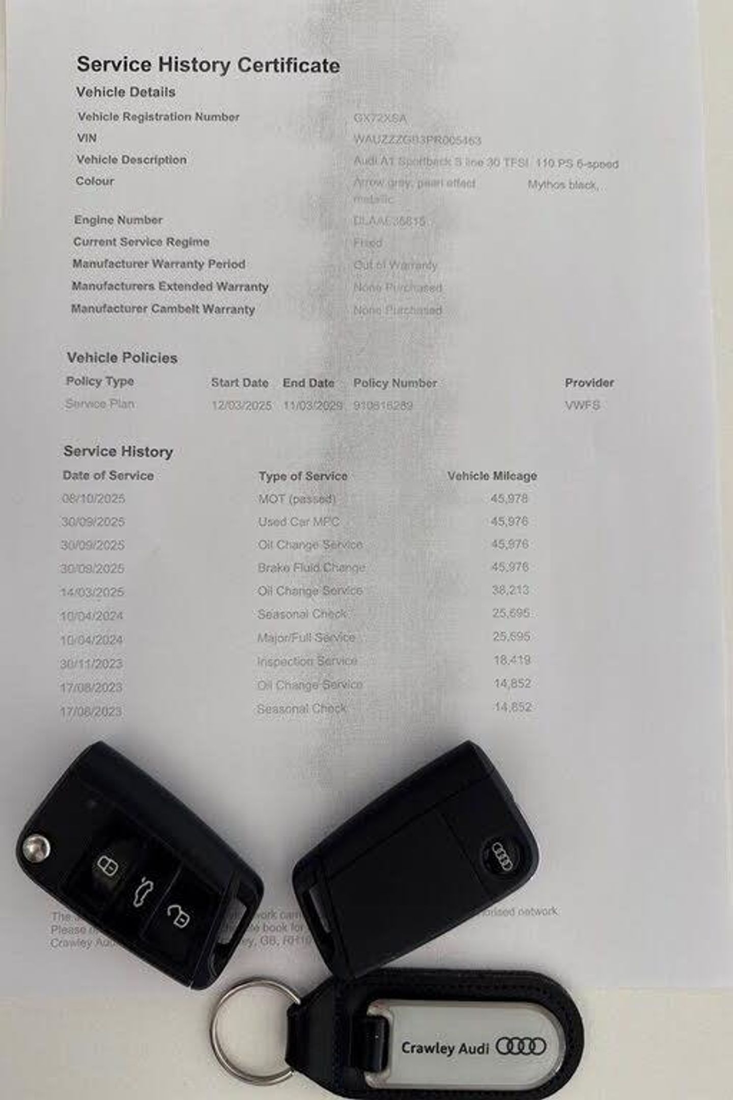 FULL AUDI SERVICE HISTORY, ONE OWNER FROM NEW, COMFORT AND SOUND PACK, PARKING SYSTEM PLUS, REAR VIEW CAMERA, FRONT AND REAR PARKING SENSORS, AIR CONDITIONING, CRUISE CONTROL, SPEED LIMITER, DIGITAL INSTRUMENT CLUSTER, SONOS 3D PREMIUM SOUND SYSTE, DAB / FM RADIO, APPLE CARPLAY, ANDROID AUTO, BLUETOOTH CONNECTIVITY, VOICE CONTROL, USB PORTS, INFOTAINMENT TOUCHSCREEN, LEATHER MULTI-FUNCTION STEERING WHEEL, FINISHED IN ARROW GREY WITH MYTHOS BLACK CONTRASTING ROOF, BLACK PULSE CLOTH LEATHER WITH S EMBOSSED UPHOLSTERY, HEATED FRONT SEATS, 17'' SILVER 5 TWIN SPOKE ALLOY WHEELS, ELECTRICALLY ADJUSTABLE HEATED AND FOLDING EXTERIOR MIRRORS, AUTOMATIC LIGHTS, RAIN SENSING WIPERS, 40:60 SPLIT REAR SEAT, ISOFIX, MANUAL GEARBOX, 2 KEYS, EURO 6, ULEZ COMPLAINT All Audi Approved used cars are offered with a 12-month warranty and roadside assistance. Crawley Audi are delighted to offer our Audi A1 1.0 TFSI 30 S Line Sportback in Grey over Black Pulse Cloth Leather and has completed 45,978miles. we are proud to be part of the Harwoods group, a family run business established in 1931. with four approved Audi retailers within our group, we have access to over 400 vehicles. If this isn't the right car for you our Group stock has spec to include Sunroof, Leather, Heated Seats, Apple Car Play, Heated Steering Wheel, Reverse Camera, Rear Entertainment, Towbar, 360-degree camera, Comfort & Sound Pack, Tech Pack, Panoramic Sun Roof, Tow Bar, Black Pack, Air Suspension, Apple CarPlay, Adaptive Cruise, Massage Seats, Refrigerator, AWD, Technology Pack, Head up Display, Vorsprung, Technik, Black Edition, S-Line, S Line, Edition 1, TFSI, Quattro, Sportback, LWB. Other colour options including Black, Blue, Green, Silver, White, Red, Grey, Yellow, Orange, Interior options of Ebony, Black, Ivory, White, Tan, Cream, Oyster, & Euro 6 ULEZ compliant drive trains.-COMFORT & SOUND, PARKING PLUS