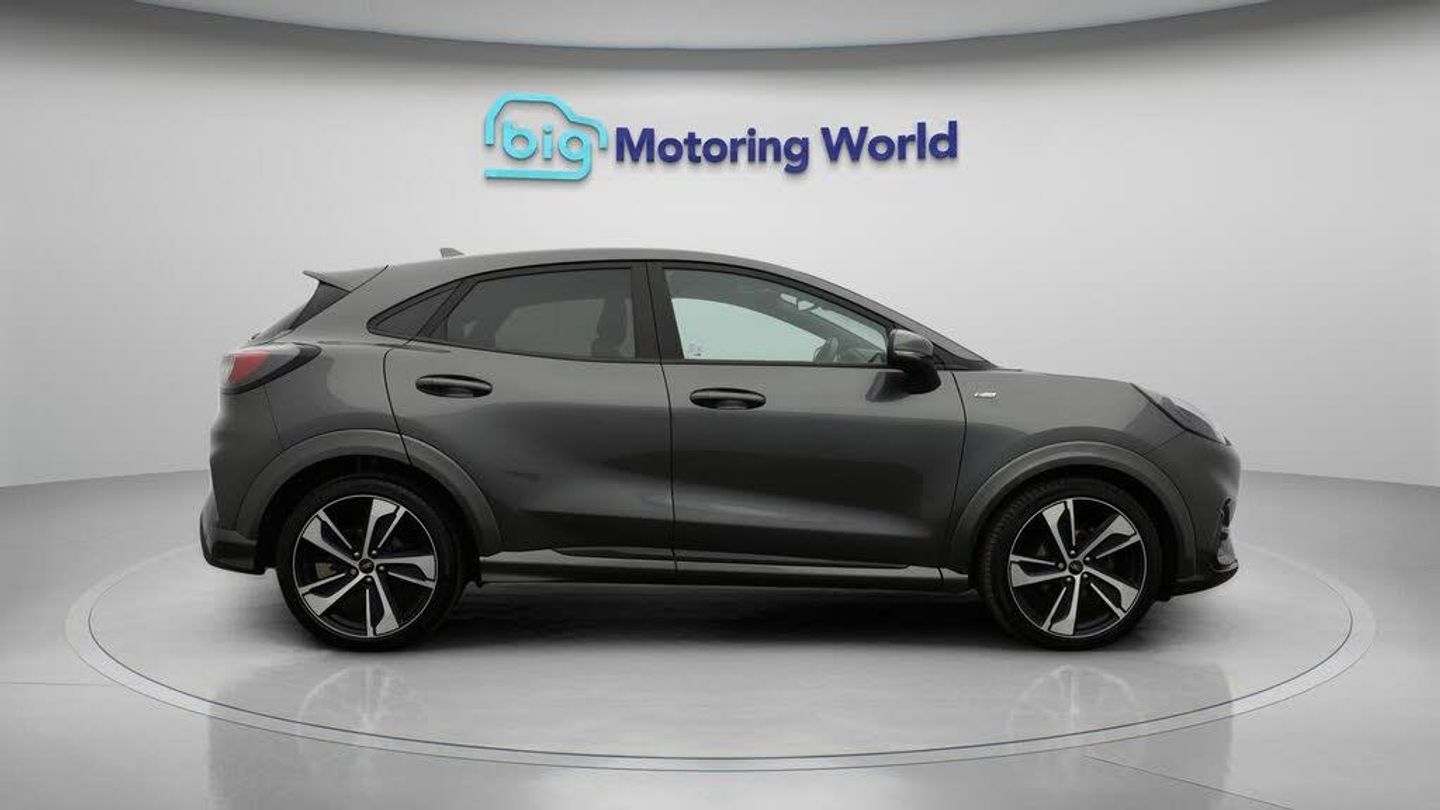 Part Leather Seats,Satellite N-Our Ford Puma is finished in Grey. Specification includes a range of fantastic features including Part Leather Seats, Satellite Navigation, Ford SYNC, Privacy Glass, ST Style Pack, Heated Windscreen, Bluetooth, Parking Sensors, Flat Bottom Steering Wheel, 2 Zone Climate Specification information is supplied by CAPHPI and may vary to the actual car. This data does not form any part of a buying contact. Please check specification prior to purchase in-store. The MOT is valid until October 2026, visit bigmotoringworld.co.uk for more photos, a 360 tour, service history and a free HPI report.Were BIG on peace of mind and this Grey Ford Puma has completed our comprehensive 200 point inspection and passed all checks. Its ready for you to drive away with immediate collection in-store. We include a 90-day warranty as standard plus an option to extend for up to 3 years.Reserve this car exclusively for you, safely and securely at bigmotoringworld.co.uk, with a fully refundable £99 deposit. Test drive before you buy, with no commitment, no hassle and a completely haggle free experience. Still searching and want to see thousands more cars? We are BIG on choice with over 8000 cars to choose from.Visit our award winning web site bigmotoringworld.co.uk.Were Big Motoring World and were BIG on what matters to you.