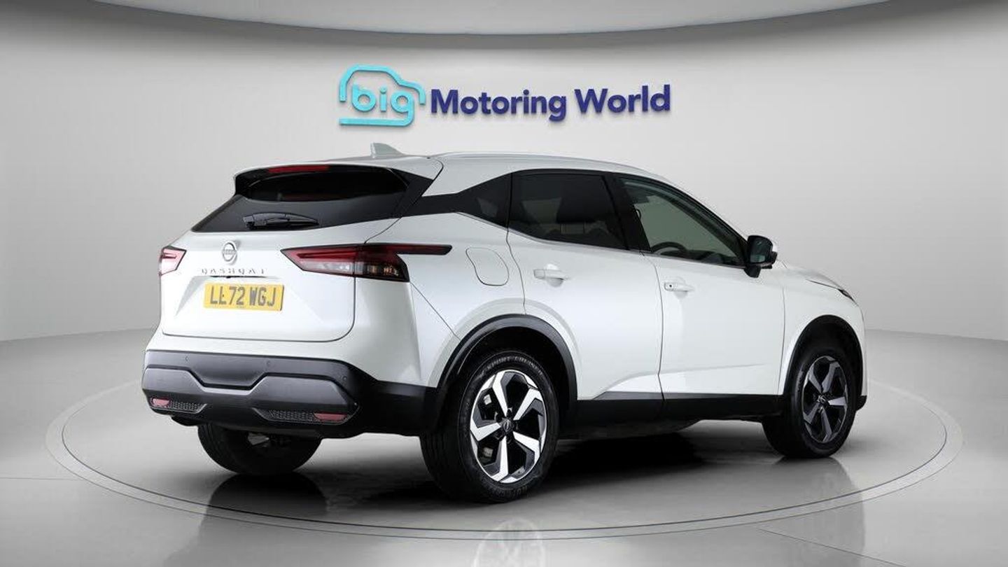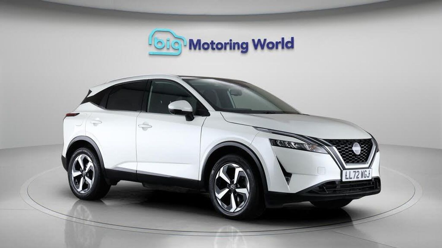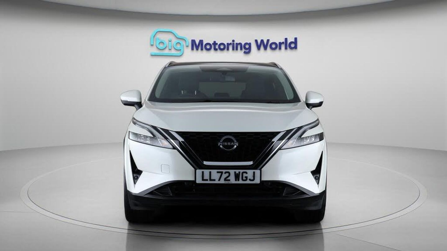 Panoramic Roof,18'' alloy wheel-Our Nissan Qashqai is finished in White. Specification includes a range of fantastic features including Panoramic Roof, 18'' alloy wheels, Apple CarPlay, Android Auto, Satellite Navigation, Privacy Glass, Rear View Camera, Bluetooth, Blind Spot Assist, Parking Sensors Specification information is supplied by CAPHPI and may vary to the actual car. This data does not form any part of a buying contact. Please check specification prior to purchase in-store. The MOT is valid until October 2026, visit bigmotoringworld.co.uk for more photos, a 360 tour, service history and a free HPI report.Were BIG on peace of mind and this White Nissan Qashqai has completed our comprehensive 200 point inspection and passed all checks. Its ready for you to drive away with immediate collection in-store. We include a 90-day warranty as standard plus an option to extend for up to 3 years.Reserve this car exclusively for you, safely and securely at bigmotoringworld.co.uk, with a fully refundable £99 deposit. Test drive before you buy, with no commitment, no hassle and a completely haggle free experience. Still searching and want to see thousands more cars? We are BIG on choice with over 8000 cars to choose from.Visit our award winning web site bigmotoringworld.co.uk.Were Big Motoring World and were BIG on what matters to you.