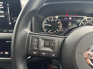 Android auto/Apple CarPlay (Wired),Blind spot warning,Drive modes (sport, normal, eco),Electric speed sensitive power steering,Emergency and breakdown call,Front and rear parking sensors,Full Digital 12.3" TFT Digital Combimeter,Google maps services - search, weather, 3D maps and Google street view,Idle stop/start system,Intelligent around view monitor,Intelligent Cruise control (ICC),Intelligent driver alert system,Intelligent forward collision warning,Intelligent lane intervention,Lane departure prevention,Lane departure warning system,Maximum speed limiter,Moving object detection,Nissan connect 12.3 inch touchscreen infotainment system,Nissan connect navigation,Push button starter,Rear cross traffic alert,Rear view camera,Remote control services - door locks, lights, horn and car locator,Telematics - notifications and connectivity services,TomTom live traffic services,Traffic sign recognition with legal speed adjustment,Trip computer,Virtual personal assistant and firmware over the air capability,Wireless apple carplay,6 speakers,AM/FM audio system with DAB,Bluetooth audio streaming,Front USB connections (Type-A and Type-C),Rear USB charging only ports (Type-A and Type-C),Auto dimming rear view mirror,Auto rear wiper when reversing,Automatic hazard signal with emergency stop signal,Body colour mirror caps,Body coloured door handles,Bodyside mouldings,Chrome side window finisher,Door handle with button,Electric auto folding door mirrors,Electrically adjustable and heated door mirrors with LED turn indicator,Follow me home headlights,High beam assist,Intelligent auto headlights,LED 3rd brake light,LED daytime running lights,LED Headlights,LED rear lights,One touch front and rear electric windows with remote opening and closing,Partially body coloured bumpers,Privacy glass,Rear bumper with graphite insert,Rear reversing light (bulb lighting),Rear roof spoiler,Rear side wing doors,Rear styling plate,Shark fin antenna,Splash free rain sensing wipers,Super UV and infrared cut glass,Three blink turn signal,12v power socket in dashboard and luggage,2x Rear coat hooks,3 bench rear seats in 2nd row,3 rear headrests,4 folding assist grip,6 Luggage hooks - 4 on floor, 2 on side,6-way manually adjustable driver's seat,60/40 split folding rear seat bench,Ambient lighting around centre console,Centre console storage tray,Chrome interior door handles,Cloth monoform upholstery,Driver and front passenger sunvisors with illuminated vanity mirrors,Driver seat back pocket,Dual zone automatic climate control with pollen filter,Electrically adjustable lumbar support for driver,Front and rear door storage,Front centre console and armrest,Front cupholders x 2,Front door with bottle holders,Glovebox with light,Hard trunk cover,Height adjustable driver's seat,Height adjustable front headrests,Height adjustable passenger seat,Leather shift knob,Luggage board system,Luggage space lighting,Manually adjustable passenger (slide recline + lifter),Multifunction steering wheel,Passenger seat back pocket,Rear armrest with 2 cupholders,Rear door bottle holders,Single front passenger seat,Soft PVC kneepad,Steering wheel switches,Sunglasses holder,Tilt/telescopic adjustable steering wheel,Two rear isofix child seat anchorage points with top tether,Welcome light and console tray ambient lighting,3x3 point rear seatbelt pretensioners + load limiters,ABS with EBD and brake assist,Active brake limited slip,Auto hold function,Child locks on rear doors,Curtain and front side, far side airbags,Driver and passenger airbags,Driver, passenger and 2nd row rear seat belt reminder,Electronic parking brake,Front seatbelt pretensioners + load limiters,Height adjustable front seatbelts,Hill start assist,Intelligent blind spot intervention,Intelligent front emergency braking with pedestrian, cyclist recognition and junction assist,Intelligent rear automatic braking,Tyre pressure monitoring system,Vehicle dynamic control,Capless fuel filler,Engine immobiliser,Intelligent Key,Remote central door locking with deadlocking,Thatcham Cat.1 alarm,Interior instrumental panel B finisher,18" Diamond cut alloy wheels,Tyre puncture repair kit