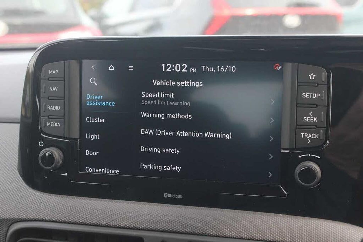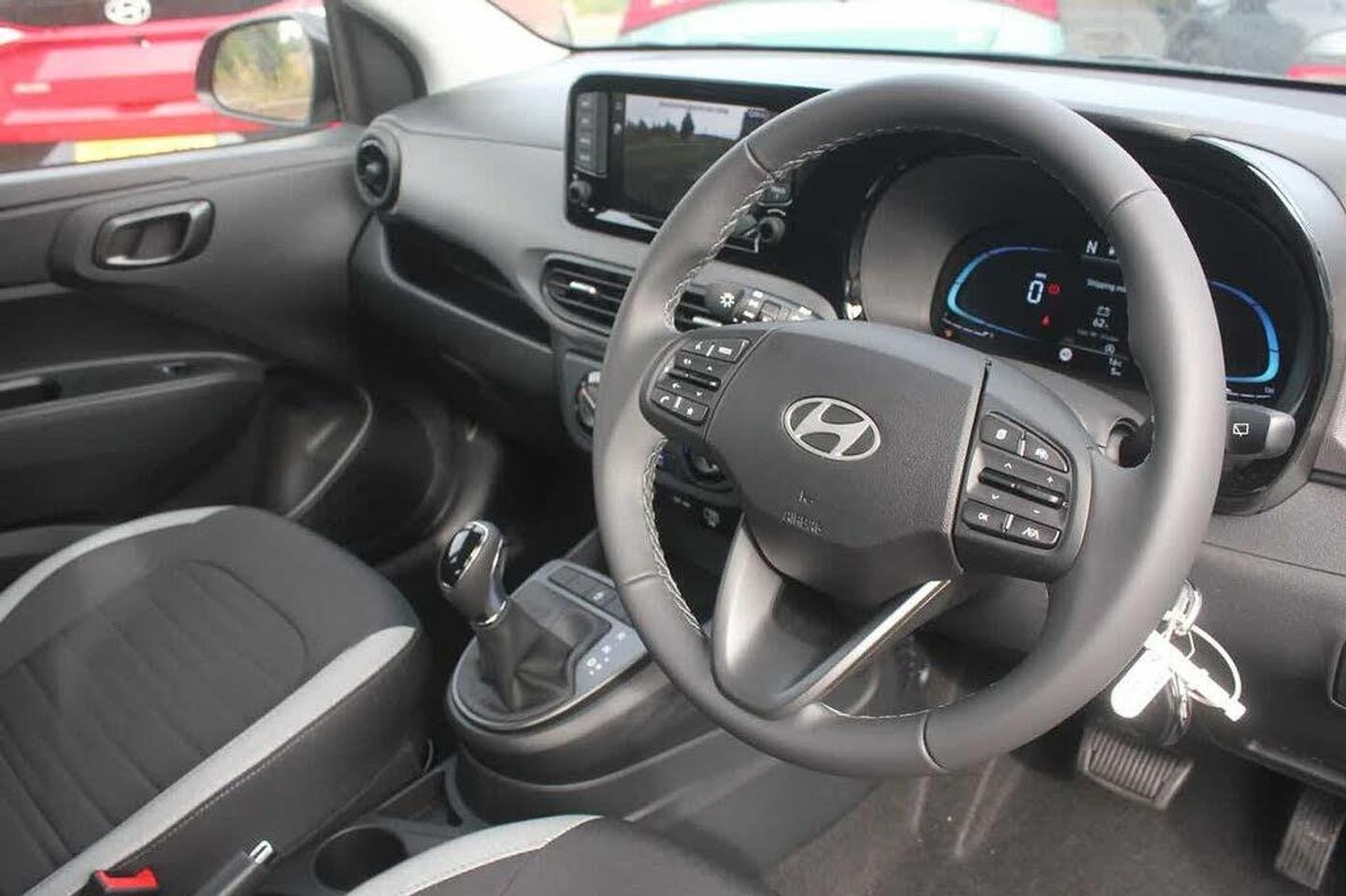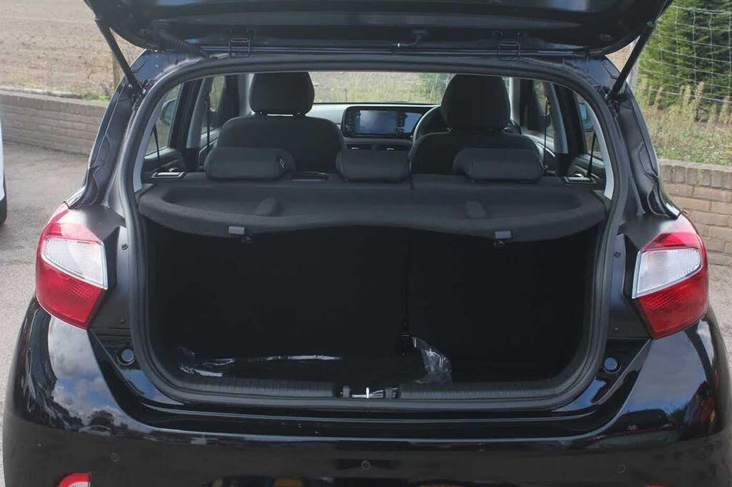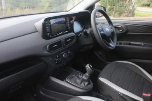 Exterior Features, Pearlescent paint, Paint - Pearlescent, Pearl - Phantom black, Trim - Cloth, Cloth - Black with white stripe, Exterior Features, 1 speed non intermittent rear windscreen wiper, Electric front windows, Electric rear windows, Front intermittent wipers, Heated rear window, Black finish on B pillars, Body colour door handles, Body coloured bumpers, Flat metal emblem, Front grille in matte black, Rear roof spoiler with integrated LED brake light, Rear side wing doors, Halogen headlights, Headlights inner with Black Blade design, High beam assist, LED daytime running lights, Safety, Anti-lock brake system (ABS), Brake assist function, Electronic stability control, Hill start assist control (HAC), Traction control, Bluelink mobile remote connectivity, Cruise control, Driver attention alert system, Forward Collision-Avoidance Assist (FCA) - Pedestrian/Cyclist, Intelligent speed limit assist, Lane departure warning system with lane keep assist - LKAS, Lane follow assist, PAS, Rear parking sensors, Rear view camera with guidelines, Body coloured door mirrors, Electrically adjustable and heated door mirrors, Indicator light on door mirrors, 3x3 point rear seatbelts, Airbags - front, front side and curtain airbags, Autonomous emergency braking (AEB) with forward collision warning system, Childproof rear door locks, Front and rear seatbelt reminder, Front seatbelt pretensioners, Passenger airbag deactivate switch, Tyre pressure monitoring system, Interior Features, Floor mats, Manual air conditioning, 12v power outlet - front, Bottle holders in front/rear doors + front centre console, Cloth upholstery, Front door pockets, Glove compartment, Height adjustable steering column, Leather wrapped steering wheel and gear knob, Rear door pockets, Auto light control, Cabin and luggage compartment interior lighting, Driver + passenger vanity mirrors, Driver/passenger sunvisors with ticket holders, Audio / Communications, Apple car play/Android Auto, Bluetooth connectivity with voice recognition, eCall emergency call system, Roadside assistance, 2 front/2 rear speakers, Front and rear USB-C ports, Front USB connection, Leading vehicle alert (LVA), Steering wheel audio, phone and cruise controls, Driver Convenience, Start/Stop function, Tailgate, Miscellaneous, 8" Touchscreen satellite navigation including mapcare and LIVE services, Full-width 4.2" LCD instrument cluster, Trip computer, Trim, 3 seat bench in 2nd row, 60/40 split folding flat to floor rear seats, Driver's seat height adjustment, Front Head Restraints - Vertical and Horizontal Adjustment, Isofix child seat preparation, Single front passenger seat, Vertical adjustment rear head restraints, Security, Immobiliser, Perimeter alarm, Rear occupant alert, Remote central locking, Second remote key, Speed sensitive auto door locking, Wheels, 15" Alloy wheels, Temporary mobility kit (TMK)