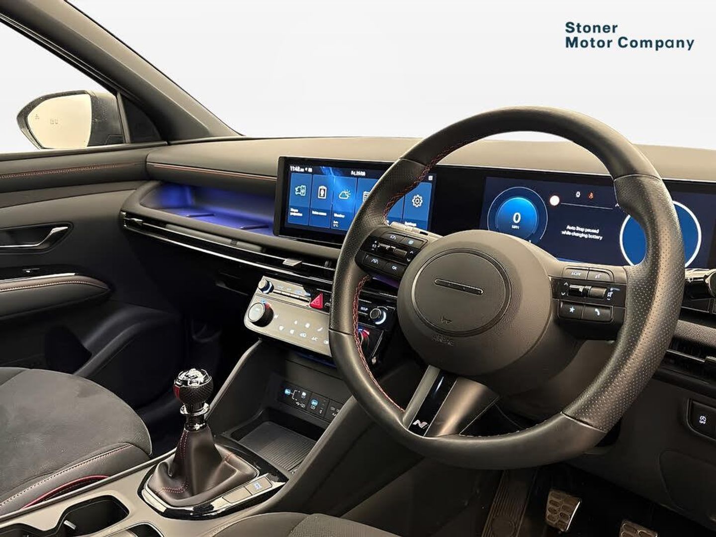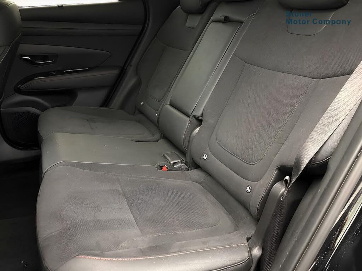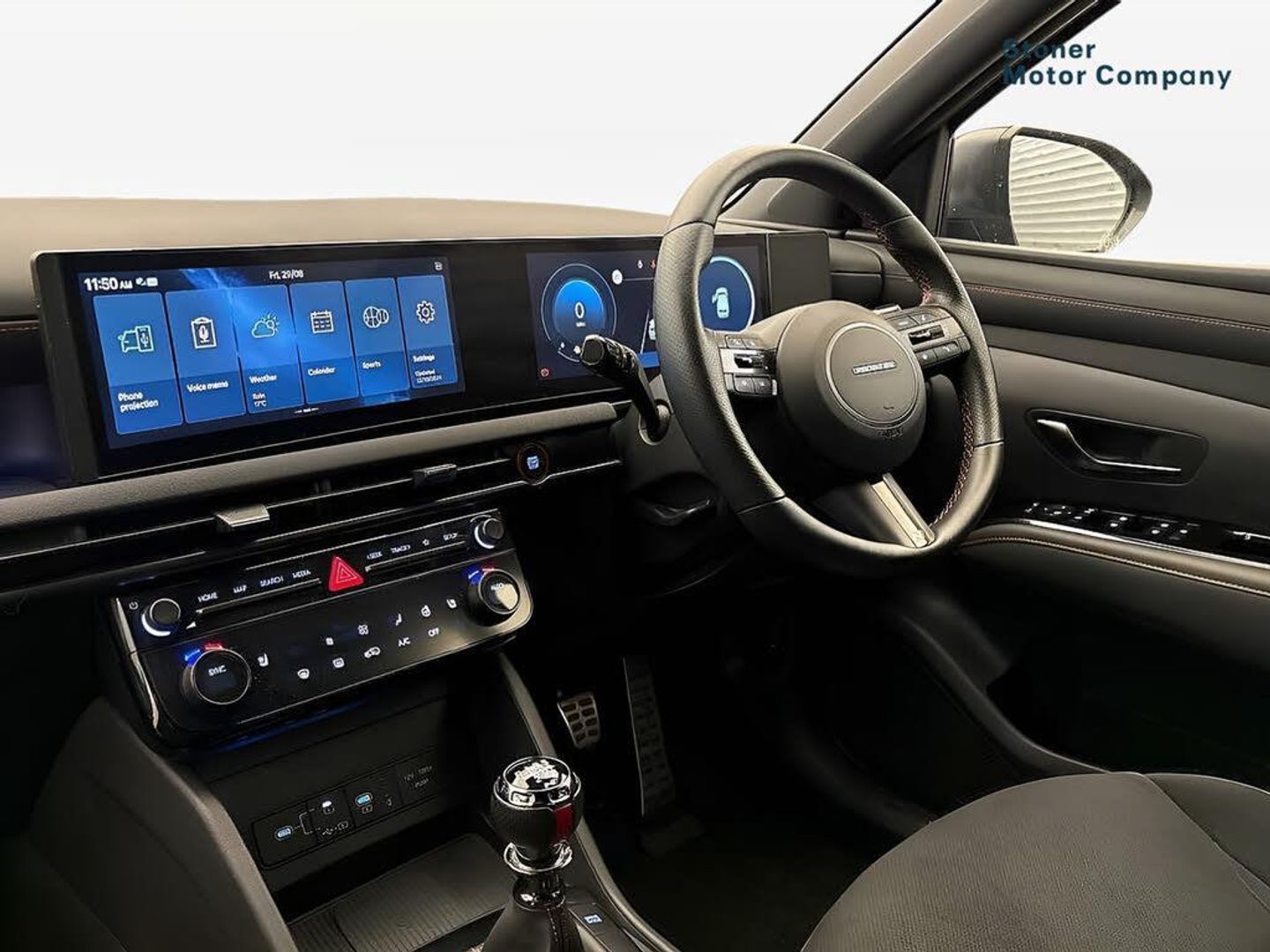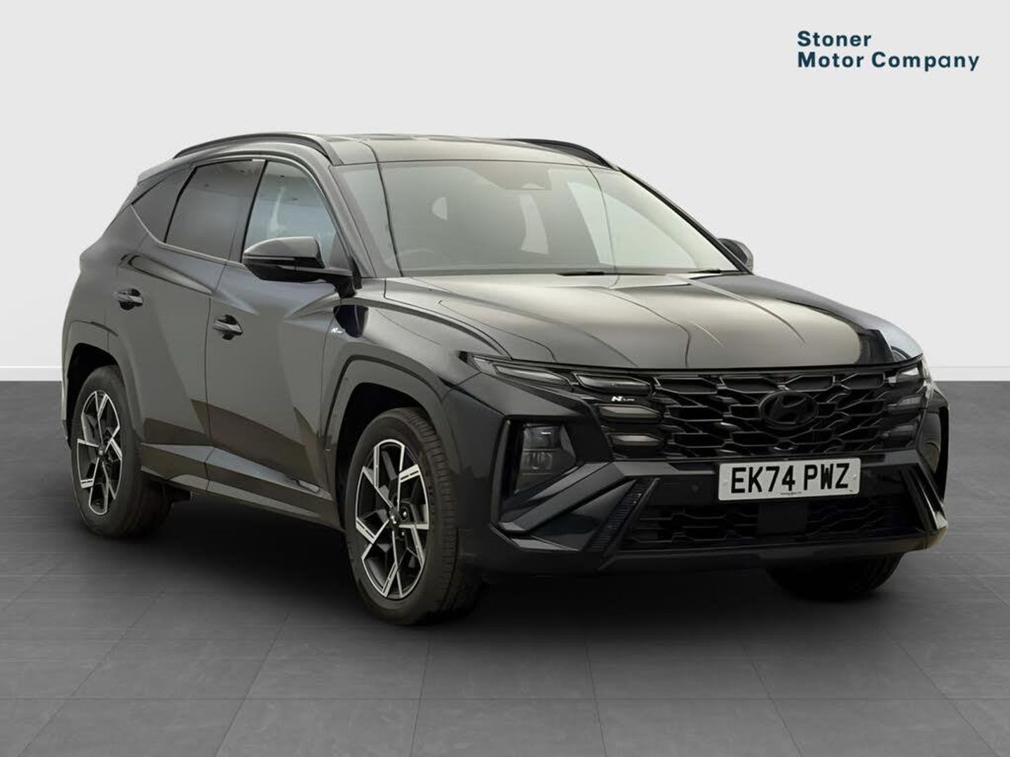 Exterior Features, Pearlescent paint, Paint - Pearlescent, Pearl - Abyss black, Trim - Part Leather, N Line leather/faux textile suede - Black with red stitching, Exterior Features, Adjustable intermittent front windscreen wipers with aero wiper blade, Automatic defog system, Automatic windscreen wipers with rain sensor, Front and rear electric windows with anti-trap mechanism and one touch control, Privacy glass - Rear windows and tailgate, Rear wash/wipe with intermittent wipe setting, Tinted glass with windscreen shade band, Body colour bumpers, Body colour exterior door handles, Body coloured wheel arches, Glossy black bumper mouldings, Rear side wing doors, Roof rails, Soft touch rear door paneling, Automatic headlights with dusk sensor, Follow me home headlights, Front fog lights, LED 3rd brake light, LED daytime running lights, LED Headlights, LED rear lights, Positioning Lights - LED, Safety, Anti-lock brake system (ABS), Brake assist function, Downhill brake control, Electric parking brake, Electronic stability control, Hill start assist control (HAC), Multi-Collision braking, Traction control, Vehicle stability management, Cruise control, Drive mode selector, Driver attention warning, Emergency stop signalling system, Forward Collision Avoidance Assist (FCA) - Car, Pedestrian and Cycle, Forward Collision Avoidance Assist Junction Turning (FCAJX), Front and rear parking sensors, Intelligent speed limit assist, Lane follow assist, Lane keep assist, PAS, Rear camera and guidance parking system, Auto dimming rear view mirror, Body colour door mirrors with integrated indicators, Electrically adjustable, heated and power folding door mirrors, 3x3 point rear seatbelts, Active bonnet, Airbag - Front, front side, curtain and centre front airbags, Childproof rear door locks, Curtain airbag roll over sensor, Front and rear seatbelt reminder, Front passenger airbag deactivation switch, Front seatbelt pretensioners, Outer rear seatbelt height adjustment, Seatbelt height adjustment for front seats, Tyre pressure monitoring system with individual tyre pressure display - TPMS, Audio / Communications, Bluetooth system, E-call, Voice recognition, Wireless Apple CarPlay/Android Auto, Wireless phone charging pad, 2 front and 2 rear speakers with 2 tweeters, 2 front and 2 rear USB-C ports, DAB Digital radio, Steering wheel mounted audio/phone controls, Driver Convenience, Hyundai road side assistance, Smart power tailgate, Miscellaneous, 12.3" LCD display with driver's supervision instrument cluster, 12.3" widescreen navigation with bluelink and mapcare, Digital clock, Over the air updates(OTA), Rev counter, Tailgate open warning light, Trip computer, Trip odometer, Water temperature gauge, Windscreen washer fluid sensor and warning indicator, Interior Features, Dual zone climate control, Touch sensitive climate controls with temperature dials, 12V power outlets in front console and luggage compartment, Cupholders in rear armrest, Front and rear door pockets, Front armrest with storage box, Front centre console and door bottle holders, Heated steering wheel, Height/reach adjustable steering column, Illuminated/air conditioned glove compartment, Leather wrapped steering wheel and gear knob, Luggage cover, Luggage hooks, Luggage net, Metal pedals, N Line Leather/faux textile suede upholstery, Rear side window sunblind, Retractable load cover, Sunglasses holder, TUCSON branded metal door scuff plate, Underfloor boot compartment, 64 colours interior ambient lighting, Door courtesy lights, LED interior lighting, Luggage compartment lighting, Map and reading lights, Driver and passenger sunvisors with illuminated LED vanity mirrors, Packs, N Line design package - Tucson, N Line interior design package - Tucson, Trailer wiring package - Tucson, Trim, 3 seat bench in 2nd row, 40/20/40 split folding rear seat, Adjustable head restraints (Up and down), Driver's seat manual height adjust, Heated front seats, ISOFIX child seat anchorage points attached on outer rear seats, Manual height adjustable front passenger seat, Rear seat remote folding function, Reclining rear seats, Single front passenger seat, Security, Deadlocks, Immobiliser, Locking wheel nuts, Remote control central locking, Smart key with keyless entry and engine start/stop button, Speed sensitive auto door locking, Thatcham category 1 alarm, Towing, Trailer stability assist, Wheels, 19" Alloy wheels, Tyre repair kit