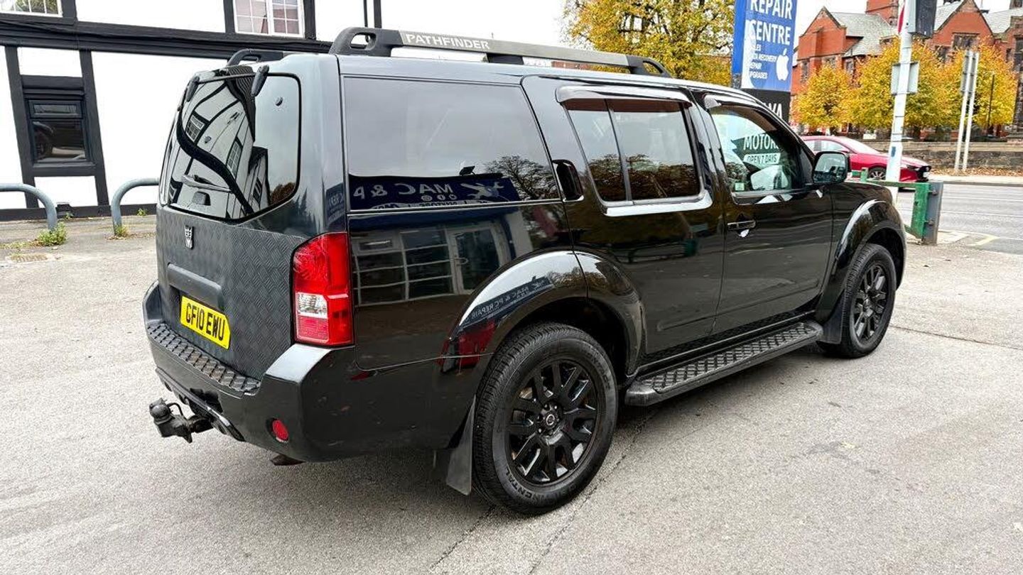 NISSAN PATHFINDER 2.5 DCI 190 TEKNA DIESEL AUTOMATIC STATIONWAGON BLACK 2010, WELL MAINTAINED AND DRIVES VERY GOOD, 7 SEATER, DONE 163,000 MILES WITH FULL SERVICE, MOT EXPIRY 27-05-26, SPARE KEYS, SAT NAVIGATION, LEATHER INTERIOR, SUNROOF, ELECTRIC SEATS, HEATED SEATS, PARKING SENSORS, CRUISE CONTROL, CLIMATE CONTROL, ALL OUR CARS ARE INSPECTED BEFORE LEAVING SITE, NATIONWIDE DELIVERY SERVICE AVAILABLE.MOTORS, 35-51 BUXTON RD, STOCKPORT, SK2 6LS
