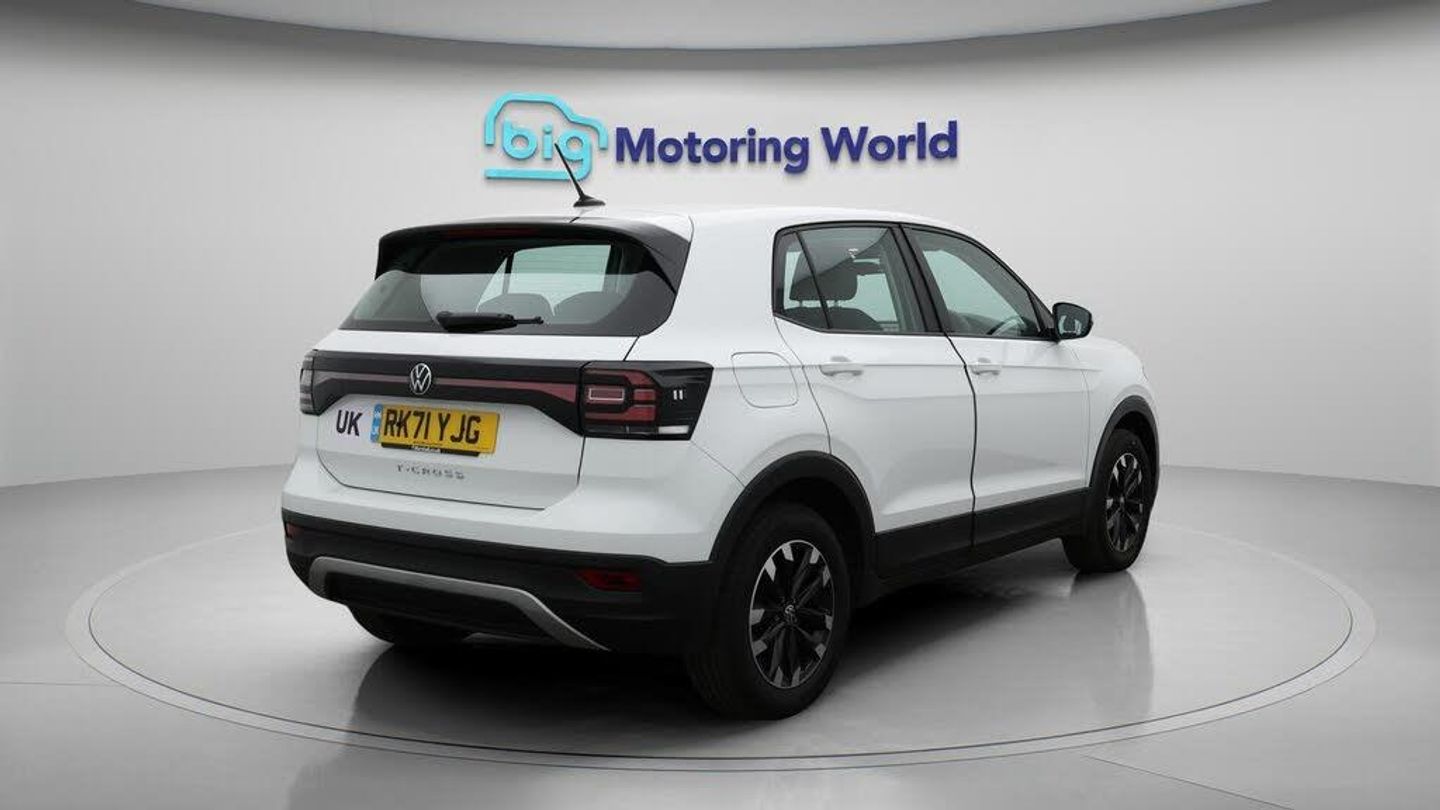 Lane Assist,Gesture Tailgate-Our Volkswagen T-Cross comes with optional extras worth £355. Specification includes a range of fantastic features including Lane Assist, Gesture Tailgate, Internet, Bluetooth, Blind Spot Assist, Flat Bottom Steering Wheel, Climate Control, DAB Radio , Lumbar Support, Touch Screen Control Specification information is supplied by CAPHPI and may vary to the actual car. This data does not form any part of a buying contact. Please check specification prior to purchase in-store. The MOT is valid until July 2026, visit bigmotoringworld.co.uk for more photos, a 360 tour, service history and a free HPI report.Were BIG on peace of mind and this White Volkswagen T-Cross has completed our comprehensive 200 point inspection and passed all checks. Its ready for you to drive away with immediate collection in-store. We include a 90-day warranty as standard plus an option to extend for up to 3 years.Reserve this car exclusively for you, safely and securely at bigmotoringworld.co.uk, with a fully refundable £99 deposit. Test drive before you buy, with no commitment, no hassle and a completely haggle free experience. Still searching and want to see thousands more cars? We are BIG on choice with over 8000 cars to choose from.Visit our award winning web site bigmotoringworld.co.uk.Were Big Motoring World and were BIG on what matters to you.