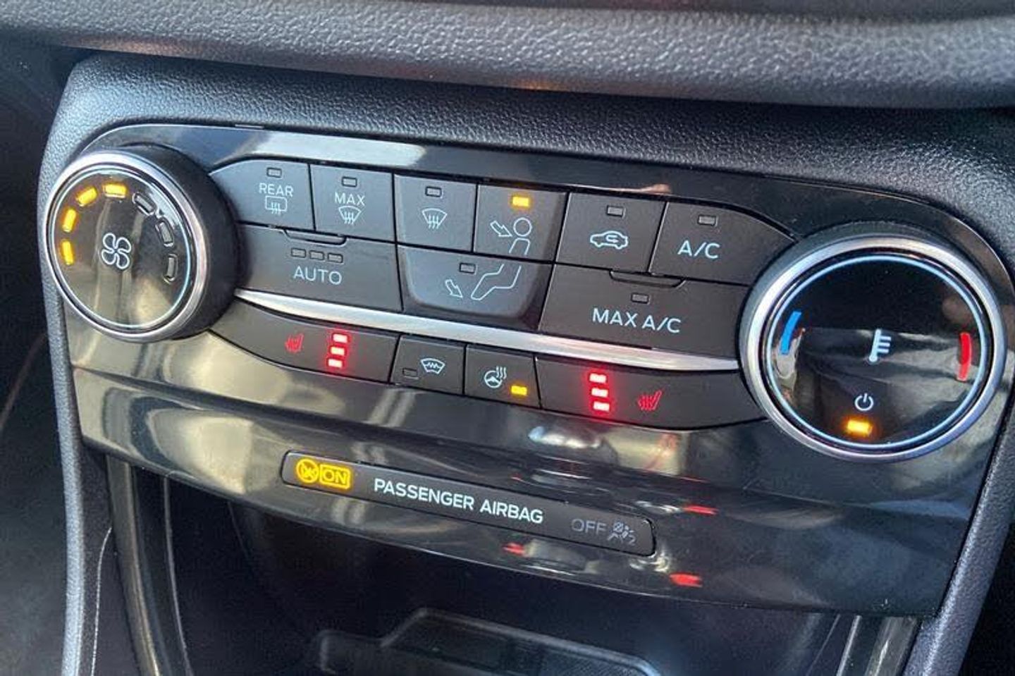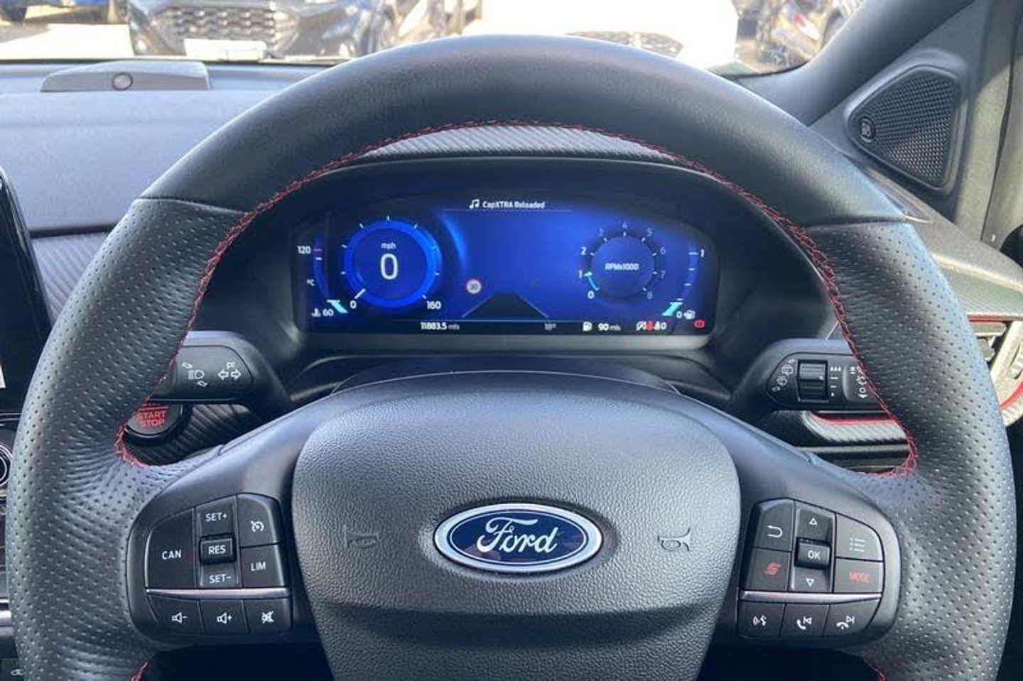 BLIS Blind Spot Information System, LED Lights, Heated Seats, Heated Steering Wheel, Bang Olufsen Sound System , Charging Mat, Reversing Camera , Satellite Navigation System, Climate Control, Front + Rear Parking Sensors , Part Leather Seats , Privacy Glass, Push Button Start, Cruise Control + Speed Limiter, Quickclear heated windscreen, Lane keeping aid with lane departure warning, Driver impairment monitor, Emergency call service, Ford easy fuel, Full digital 12.3 instrument cluster, Power assist steering, Selectable drive modes (normal, sport, eco, track), Speed sign recognition, Automatic headlights with auto high beam, Automatic rain sensing wipers, Dual chrome exhaust, Front fog lamps, LED daytime running lights, LED rear lamps, Power foldable heated door mirrors with puddle lamps and puma logo protection, Rear side wing doors, Rear wiper, ST scuff plates, Third brake light, Unique ST body styling kit including wing mirrors and Ford Performance embossed splitter, 3 seat bench in 2nd row, Alloy sports pedals, Centre console with armrest and stowage, Ford megabox extended bootspace, Ford Performance sensico partial premium leather upholstery with metal grey stitching, Front and rear floor mats, Front and rear head restraints, Manual 6 way driver seat adjust with lumbar adjustment, Manual 6 way passenger seat with lumbar seat adjustment, Single front passenger seat, ST flat bottomed steering wheel with metal grey stitching, ST logo projection, Unique ST gear shift knob, 3 rear seatbelts, Child safety lock, Electronic stability control (ESC) and hill start assist, Pedestrian/cyclist detection & post-collision braking, Pre collision assist system, Red brake calipers, Tyre pressure monitoring system (TPMS)