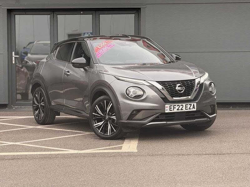 Exterior Features, Two tone metallic paint with Pearl black roof, Packs, Exterior pack - Pearl black - Juke, Interior personalisation pack - Enigma black - Juke, Wheels, Tyre puncture repair kit, Paint - Two Tone, Two tone metallic - Gun metallic grey with pearl black roof, Trim - Part Leather, Interior personalisation pack - Leather/alcantara - Enigma black, Exterior Features, Front and rear electric window with one touch driver window, Rain sensor windscreen wipers, Rear privacy glass, Rear wiper, Thermaclear heated windscreen, Body colour bumpers, Body colour door handles, Rear side wing doors, Satin silver front bumper finisher, Auto headlights, Automatic hazard signal with emergency stop signal, Follow me home headlights, High beam assist, LED daytime running lights, LED front fog lights, LED headlamps, LED rear fog lamp, LED rear lamps, Three blink turn signal, Safety, ABS with EBD and brake assist, Electric handbrake with auto hold function, Electronic Stability Programme (ESP), Hill start assist, Intelligent emergency braking with pedestrian and cyclist recognition, Traction control, VDC Dynamic Vehicle Control, Ventilated rear brake discs, Drive modes select (Eco, normal and sport), Front parking sensor, Intelligent lane intervention, Lane departure warning system, Power Steering, Rear parking sensor, Traffic sign recognition, Auto dimming interior rear view mirror, Electrically adjustable door mirrors with integrated indicators, Heated and auto folding door mirrors, Active ride control, Active Trace Control, Driver and passenger airbags, Driver and passenger side airbags, Front and rear curtain airbags, Height adjustable seatbelts, Rear door child safety locks, Seatbelt reminder for driver/front passenger and rear seats, Single tone horn, Three 3 point rear seatbelts, Tyre pressure monitoring system, Audio / Communications, Voice recognition, 10 Bose speakers 6 speakers and 2 headrest speakers for driver/passenger seats, Bluetooth system, USB, Aux-in and 12V socket, Bose personal sound stage control, DAB Digital radio, Rear console USB port, Driver Convenience, Idle start/stop system, Miscellaneous, 7 inch full colour TFT screen combimeter, Apple CarPlay and Google Android auto, Emergency and breakdown call, Nissan connect 8 inch touch screen entertainment system, Nissan connect nav with TomTom traffic, Nissan connect services and Wifi connection, Outside temperature sensor, Trip computer, Gasoline particulate filter, Interior Features, Automatic climate control, Card holder on driver sunvisor, Driver side rear coat hanger, Front armrest, Front door pockets with bottle holders, Front/rear passenger grab handles, Grey synthetic leather kneepad, Internal chrome door handles, Leather gearshift knob, Leather steering wheel, Luggage board, Multifunction steering wheel, Rear door bottle holders, Steering wheel mounted gearshift paddles, Telescopic steering wheel adjustment, Two cupholders in front centre console, Door ambient lighting, Front and rear cabin lights, Gear console ambient circle lighting, Luggage space lighting, Welcome light and console tray ambient lighting, Driver/passenger sunvisors and vanity mirrors, Packs, ProPilot pack - Juke, Trim, 3 height adjustable rear headrests, 3 seat bench in 2nd row, 60/40 split folding rear seat, Driver and passenger sliding and reclining seats, Driver seat back pocket, Front head restraints, Front passenger isofix child seat anchorage point, Heated front seats, Height adjustable driver's seat, Height adjustable passenger seat, Monoform sporty seats, Passenger seat back pocket, Single front passenger seat, Two rear isofix child seat anchorage points with top tether, Security, Alarm, Immobiliser, Intelligent key and start push button with walk away lock and approach unlock functions, Remote central locking, Wheels, 19 inch Akari alloy wheels