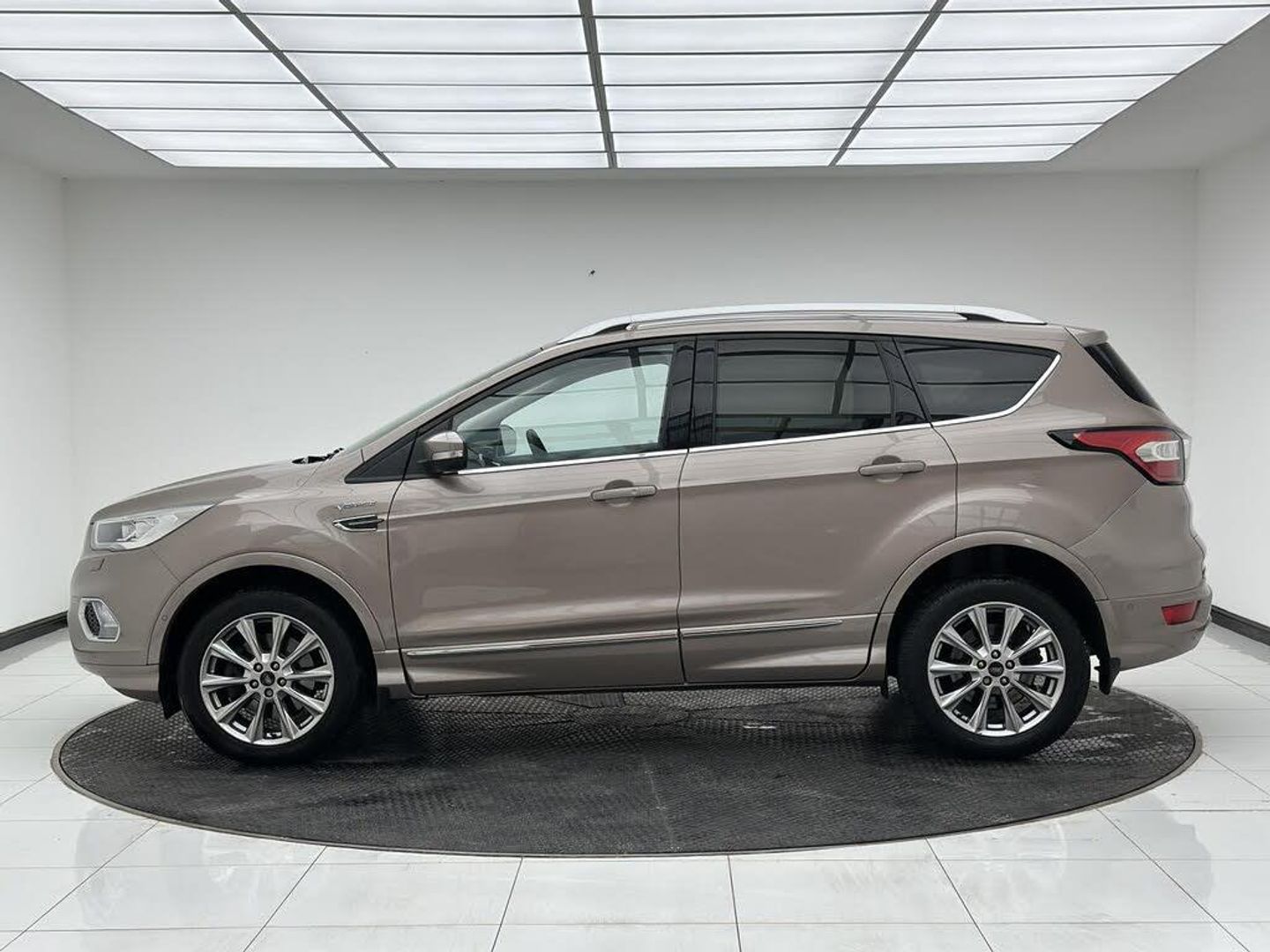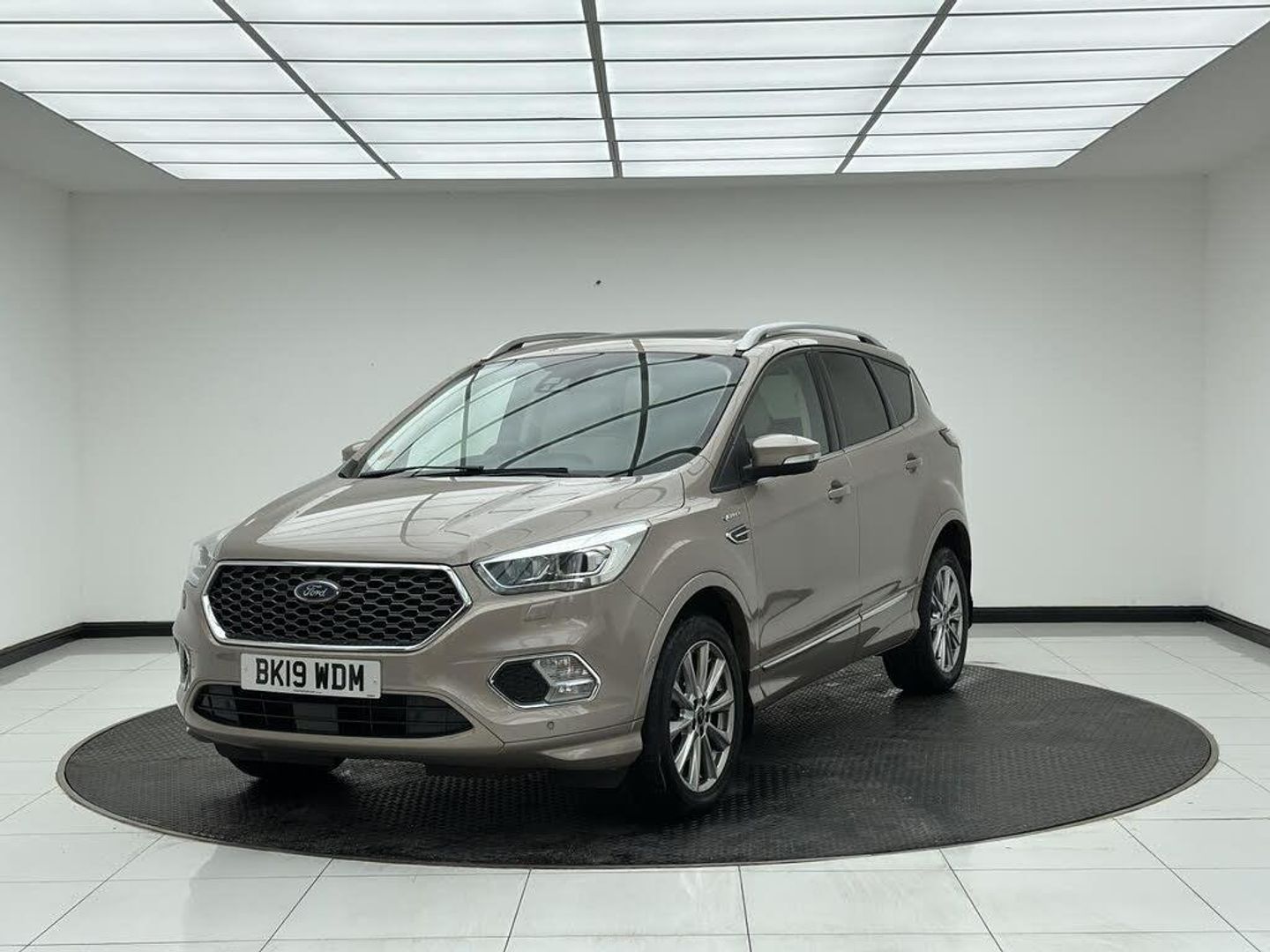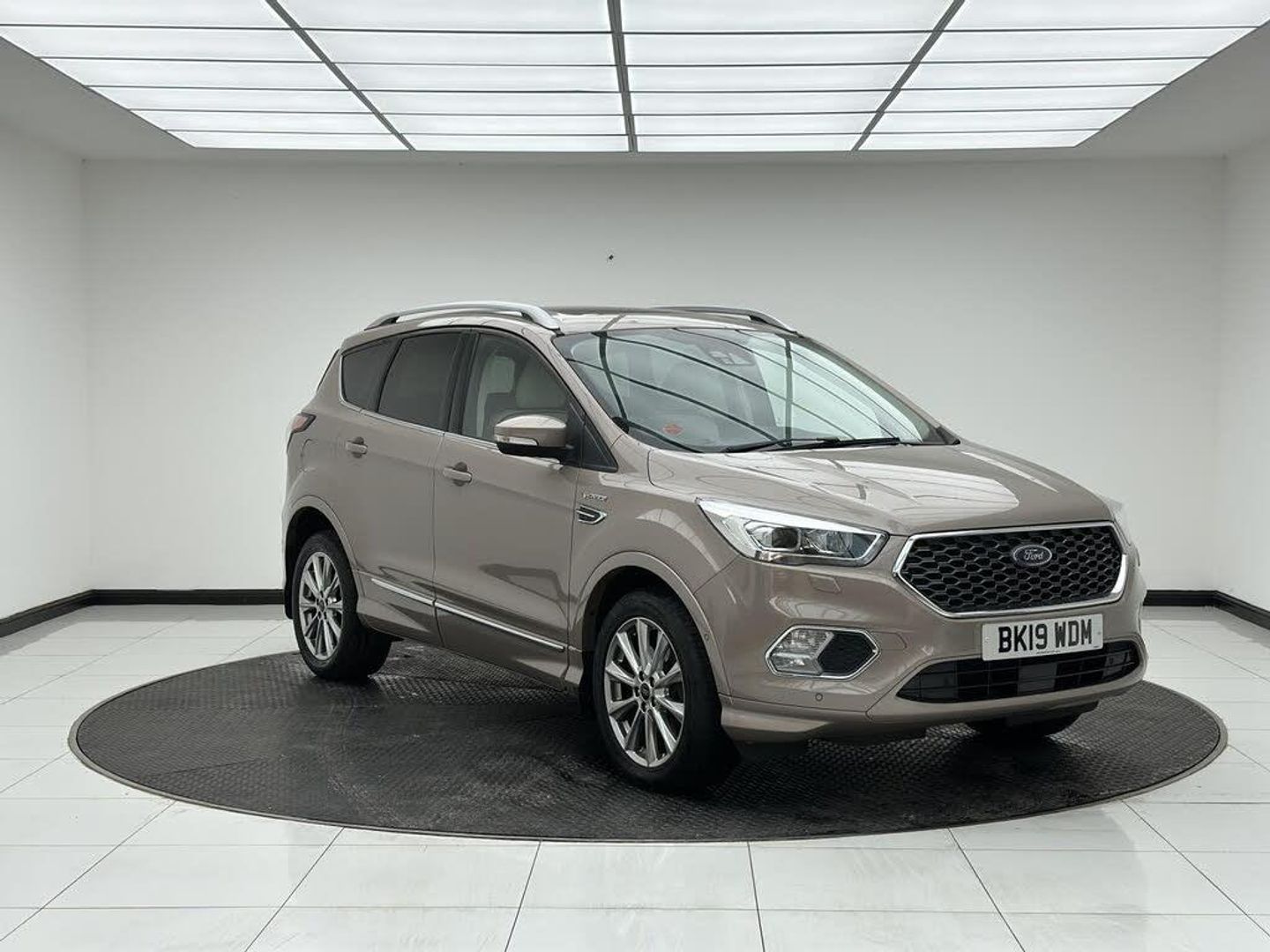 Beige interior.FORD KUGA VIGNALE SPEC (FULLY LOADED) Key Features: Tilt/Slide Panoramic Roof Sony Premium Sound System Heated Front Seats Heated Steering Wheel Gesture-Controlled Power Tailgate Reverse Camera Front and Rear Parking Sensors Full Premium Leather Vignale Interior Keyless Entry and Start Bi-Xenon Headlights with LED Daytime Running Lights SYNC 3 Infotainment with Navigation Apple CarPlay and Android Auto Electric Drivers Seat with Memory Function Dual Zone Climate Control Electrically Folding Door Mirrors Power Adjustable Heated Mirrors Ambient Interior Lighting Privacy Glass 18' Vignale Alloy Wheels Driving & Performance: 2.0 TDCi Diesel Engine (180PS) Smooth Automatic Transmission Intelligent All-Wheel Drive (4x4) Adaptive Cruise Control Lane Keeping Aid Traffic Sign Recognition Blind Spot Monitoring (if equipped) Comfortable and Stable Ride Quality Excellent Visibility with High Driving Position Safety & Assistance: Collision Warning with Auto Emergency Braking Lane Departure Warning Reverse Camera with Dynamic Guidelines Parking Assistance Sensors (Front & Rear) Auto High-Beam Assist Tyre Pressure Monitoring System ISOFIX Child Seat Anchor Points Multiple Airbags Additional Highlights: Luxury Vignale Styling Package Refined and Quiet Cabin Spacious Boot and Flexible Interior Storage Excellent Build Quality Well Maintained and Fully Loaded with Factory Options