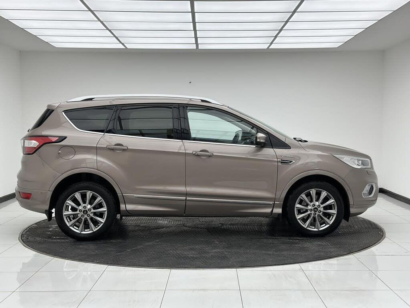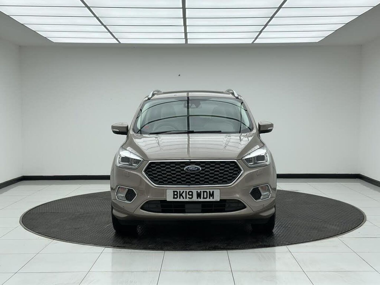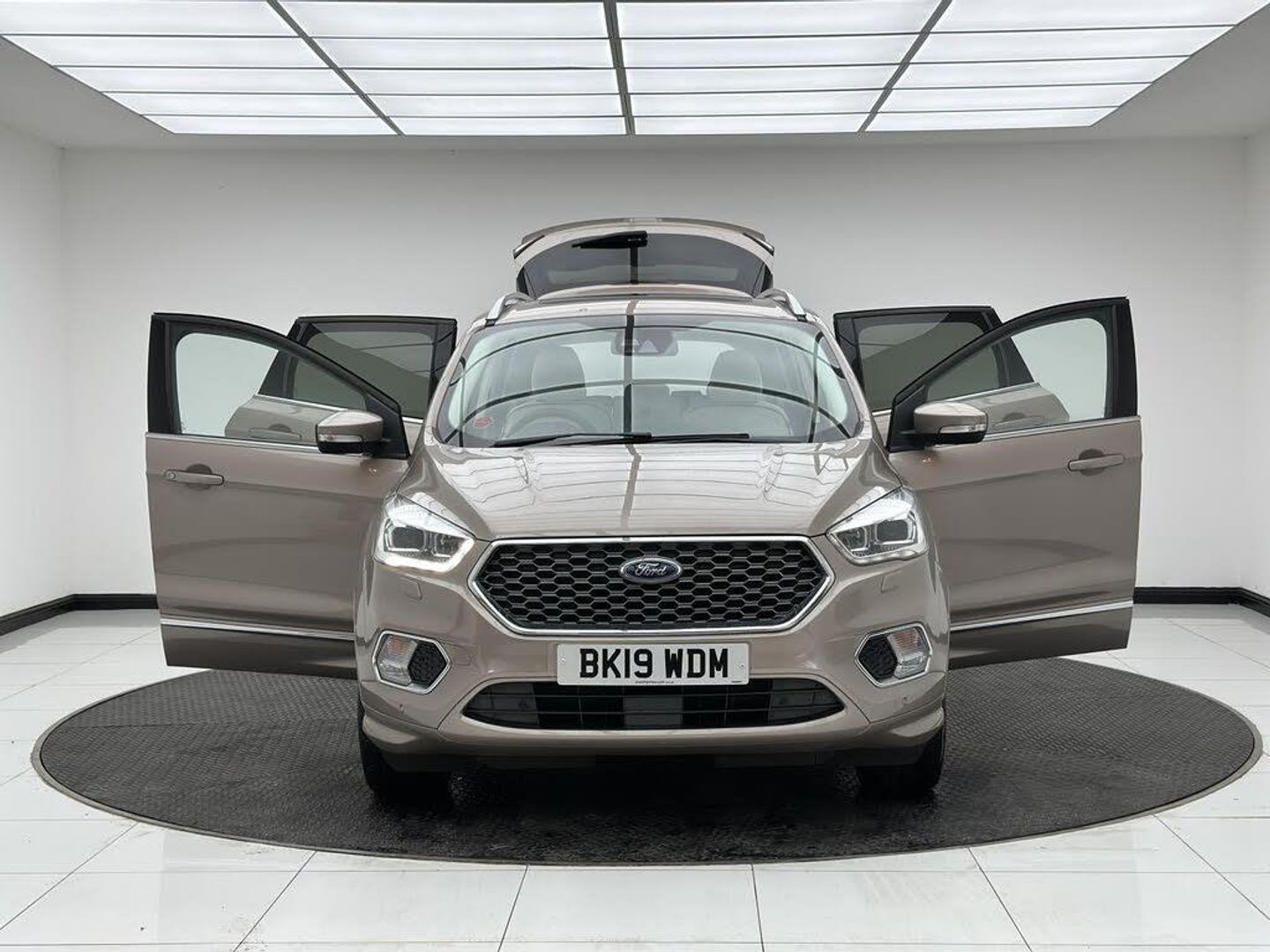 Beige interior.FORD KUGA VIGNALE SPEC (FULLY LOADED) Key Features: Tilt/Slide Panoramic Roof Sony Premium Sound System Heated Front Seats Heated Steering Wheel Gesture-Controlled Power Tailgate Reverse Camera Front and Rear Parking Sensors Full Premium Leather Vignale Interior Keyless Entry and Start Bi-Xenon Headlights with LED Daytime Running Lights SYNC 3 Infotainment with Navigation Apple CarPlay and Android Auto Electric Drivers Seat with Memory Function Dual Zone Climate Control Electrically Folding Door Mirrors Power Adjustable Heated Mirrors Ambient Interior Lighting Privacy Glass 18' Vignale Alloy Wheels Driving & Performance: 2.0 TDCi Diesel Engine (180PS) Smooth Automatic Transmission Intelligent All-Wheel Drive (4x4) Adaptive Cruise Control Lane Keeping Aid Traffic Sign Recognition Blind Spot Monitoring (if equipped) Comfortable and Stable Ride Quality Excellent Visibility with High Driving Position Safety & Assistance: Collision Warning with Auto Emergency Braking Lane Departure Warning Reverse Camera with Dynamic Guidelines Parking Assistance Sensors (Front & Rear) Auto High-Beam Assist Tyre Pressure Monitoring System ISOFIX Child Seat Anchor Points Multiple Airbags Additional Highlights: Luxury Vignale Styling Package Refined and Quiet Cabin Spacious Boot and Flexible Interior Storage Excellent Build Quality Well Maintained and Fully Loaded with Factory Options
