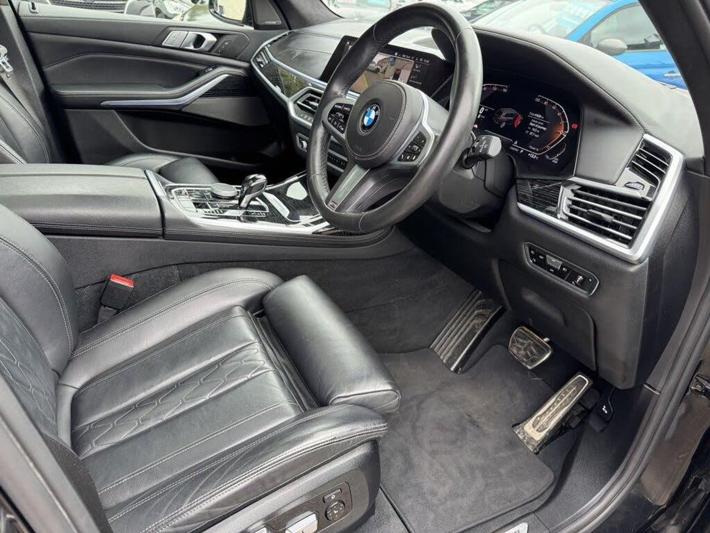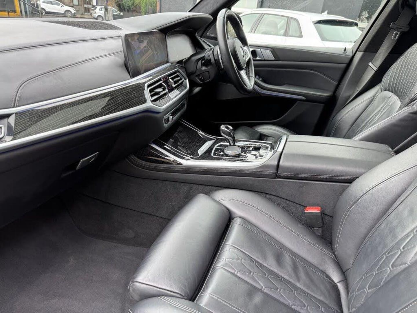 1 x USB A 1.5A in Cupholder - 1 x USB C 3A in Centre Armrest and 1 x Double USB C 3A in Rear End of Console for 2nd Seat Row, 20GB Hard Disc Drive HDD Memory, 21in Alloy Wheels - M Light Double Spoke Style 754M Bicolour, 7-Seat in 2 - 3 - 2 Configuration, Acoustic Glass, Active Air Stream Kidney Grille - High-Gloss Chrome, Active Guard Plus, Active Protection, Additional Storage Compartment, Air Conditioning - Automatic with Four Zone Control, Airbags, Alarm System - Thatcham 1 with Remote Control and Engine Immobiliser, Ambient Lighting, Armrests, Attentiveness Assistant, Automatic Start-Stop Button, BMW Connected Package Professional, BMW ConnectedDrive Services, BMW Emergency Call, BMW Head-Up Display, BMW Individual High-Gloss Shadowline, BMW Live Cockpit Professional, BMW TeleServices, Brake Force Display, Brake System, Brake-Pad Wear Indicator, Centre Lock Switch - Driver and Front Passenger Door, Child Seat ISOFIX Attachment - Rear Outer Seats in 2nd Row and Both Seats in 3rd Row - includes Top Tether, Closing System with Central Locking, Comfort Access, Comfort Cushion, Compartment in Front of Cupholder, Crash Sensor and Safety Battery Terminal Clamp, Cruise Control with Brake Function, Cup Holders - Front x2 and Rear x2, DAB Digital Radio, DSC - Dynamic Stability Control - Stabilises the Vehicle in Extreme Situations - Controls Traction, Daytime Running Lights - LED, Door Pockets - Front and Rear, Door Sill Finishers - M Designation, Door Sill Inlays - BMW M Designation Illuminated, Double-Wishbone Front Axle, Drive Performance Control - ECO PRO - Comfort - Sport and Adaptive Modes, Drive Recorder, Dynamic Brake Lights with LED Technology, EPS - Electric Power Steering with Servotronic, Electric Memory Seats, Electric Windows - Front and Rear, Electrical Steering Column with Adjustable Height and Length, Electro-Mechanical Parking Brake with Automatic Drive-Away Release and Auto-Hold Function, Enhanced Bluetooth with Wireless Charging, Exhaust Tailpipes - Single - Left and Right - Chrome, Expanded Exterior Mirror Package, Exterior Mirror Housing - Body Colour, Exterior Trim - High-Gloss Shadowline, Favourite Buttons, Floor Mats - Velour, Folding Side Mirrors with Auto-Dimming, Follow Me Home Headlight Function, Footwell Lights - Front, Front Comfort Seats, Front and Rear Air Suspension, Galvanic Embellisher for Controls, Gesture Control, Grab Handles, Headlights - Adaptive LED, Headlining - Anthracite Alcantara, Headrests - All Seats, High-Beam Assistant, Instrument Panel in Sensatec, Interior Light - Rear Centre, Interior Mirror - Frameless, Interior Trim - Fineline Black Wood with Metal Effect, LED Fog Lights, LED Rear Lights, LED Third Brake Light - Spoiler, Leather Dashboard, Light Inside Glove Compartment, Lockable Glove Compartment, Locking Wheel Bolts - Thatcham Approved, Loudspeaker System - Harman Kardon, Luggage Compartment Floor Panel with Integral Storage Tray, M Aerodynamic Bodystyling, M Designation on Front Side Panels - Left and Right, M Specific Key, M Specific Pedals, M Specific Steering Wheel, M Sport Brakes with Blue Calipers, M Sport Exterior Styling, M Sport Leather Steering Wheel, M Sport Package, Make-Up Mirror Lights, Mechanical Childproof Lock - Rear Doors, Microfilter and Active Carbon Filter, Multifunctional Hooks, OBC - On-Board Computer, Oil Sensor For Level and Grade, PDC - Park Distance Control - Front and Rear, Panoramic Glass Sunroof, Parking Assistant Plus, Passive Protection for Pedestrians, Power Sockets 12v - 2x Centre Console - 1x Luggage Compartment, Rain Sensor with Automatic Headlight Activation and Windscreen Wiper Control, Reading Lights - Front, Roof Rails - High-Gloss Shadowline, Run Flat Tyres, Seat Back with Flap Pocket, Seat Heating - Front and Rear, Seat Occupancy Detection for Driver and Passenger Side, Side Impact Protection, Soft Close Doors, Speed Limiting Function, Split Folding 2nd Row Seating with 40-20-40 Configuration, Sun Visors with Illuminated Vanity Mirrors, TPMS - Tyre Pressure Monitoring System, Tailgate Automatic - Two Part Top-Hinged Section Which Can Be Opened Separately, Tailpipe Finishers in M Sport Package-Specific Geometry, Third-Row Seating, Three-Point Seat Belts, Toolkit Located in Luggage Compartment, Two Tone Horn, Warning Triangle, Welcome Light Carpet, WiFi Hotspot, Windscreen Washer Jets - Heated, X7 on Tailgate - Left, iDrive Touch Controller with Shortcut Buttons, xDrive and Engine Designation on Tailgate - Right, 22in Alloy Wheels - M Light V-Spoke Style 755 M Bicolour Jet Black, BMW Individual Extended Merino Leather - Black-Black, Black Sapphire, M Sport Pro Package, Sun Protection Glazing