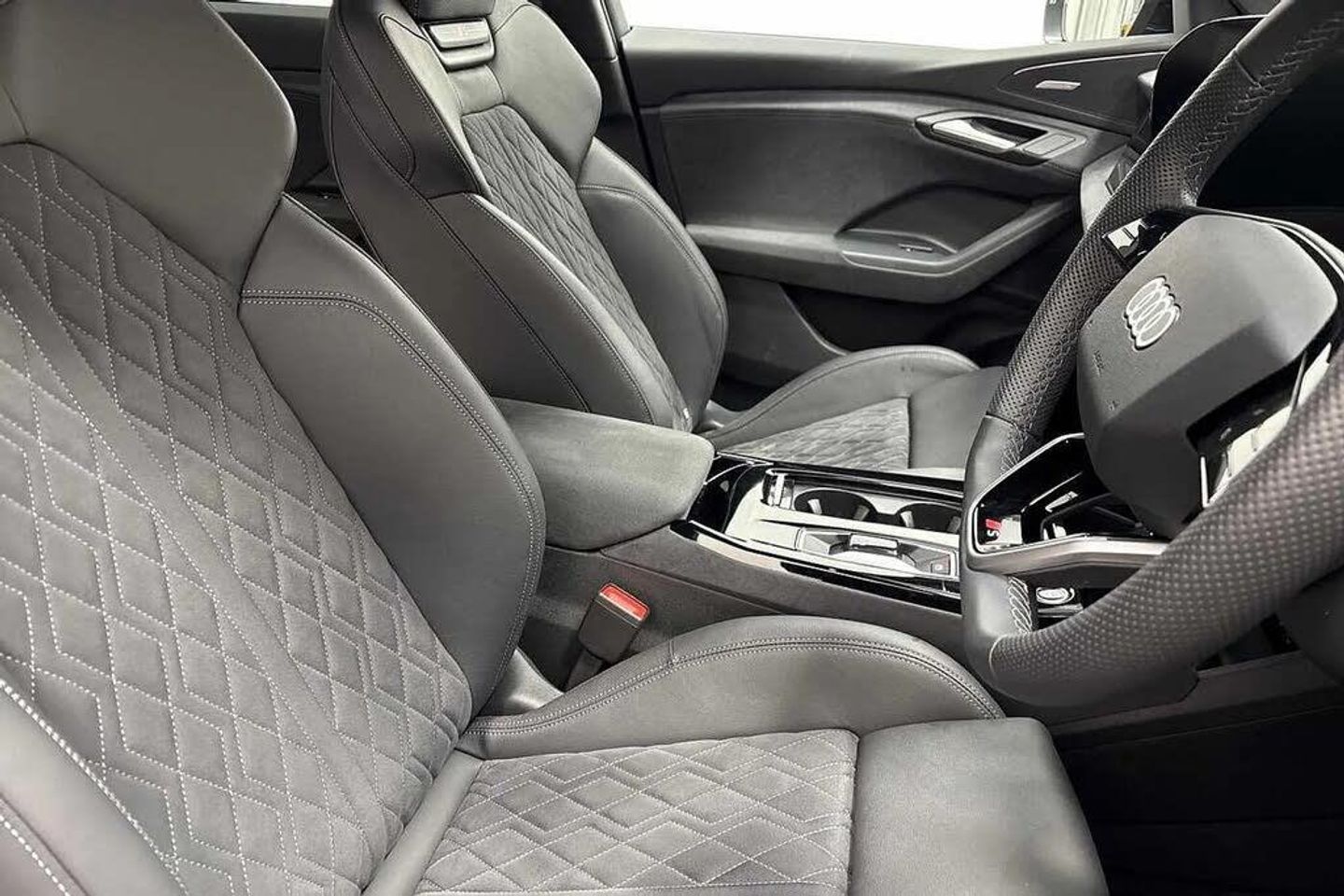 Memory function for the driver seat and the exterior mirrors,Steering wheel heating,Full paint finish,Without customized installation,Comfort auxiliary air conditioning,e-tron sport sound,MMI front passenger display,Intersection assist,Augmented reality head-up display,Digital light signatures,Dinamica microfiber/leather combination with diamond stitching,Exterior package - Black,Brake calipers painted Red,Tech plus,Interior package with front sport seats plus in black Dinamica microfiber* and leather combination with diamond stitching with integrated headrest,Assist package - protective and warning systems plus,Sun protection glass - tinted,Ambient lighting package plus with dynamic interaction light,Sport seats plus - front,Upper and lower interior elements in Dinamica microfiber,Increased charging capacity for USB ports,Stainless steel pedals and footrest,Door sill trims with aluminum inlays - front - illuminated - S logo,21" x 9.0J | 10.0J 5-Y-spoke 'dynamic' style - metallic black - gloss turned finish Audi Sport alloy wheels with 255/45 | 285/40 R21 tyres,Equipment package for Great Britain,Sound and Vision Pack,Mythos black full body paint,Floor mats - front and rear,Without special color trim,S sport suspension,Sport leather steering wheel - 3-spoke - flat top and bottom with multifunction and shift paddles,Disk brakes - front - 18-inch - brake calipers in Red,Disk brakes - rear - 18-inch - brake calipers in Red,Bumpers - S line,Front seats - electrically adjustable,Roof rails in Black,Seat heating - front and rear,Without seat ventilation/massage seat,Swerve assist and turn assist,Black styling package plus,Decorative inserts in Anthracite technical fabric,Rear occupant detection,Front head restraints,Side airbags - front and rear with head airbag system and interaction airbag - front,Black exterior mirror housings,Steering wheel trim in chrome look with "S" badging - steering wheel side parts in perforated leather with contrast stitching,Lane departure warning with emergency assist,Headlining in cloth - Black,Upper part of instrument panel - Black with contrasting stitching,Proactive occupant protection - front - side and rear,Lane change assistant and exit warning system - rear cross traffic assist and rear turn assist,Matrix function,LED headlights plus,Lumbar support - pneumatically adjustable with massage function for the front seats,Front emergency brake assist,Bang & Olufsen premium sound system with 3D sound and integrated headrest speakers,LED rear lights pro,Headlight cleaning system,Convenience package 2 (only for Audi/Bentley/commercial vehicles),Climate Control package for winter,MMI experience pro,Interior equipment 13,Equipment options subset for Great Britain