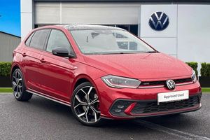 Advanced Safety, Cruise Control, AC/Climate, Bluetooth, DAB, Isofix, Heated Seats, Alloys;Blending performance, premium features, and bold styling, the Volkswagen Polo GTI delivers a compact punch that?s hard to ignore. Finished in a striking Kings Red Premium Metallic with a contrasting Black Roof Pack, this hot hatch stands out with its sporty, assertive presence?complete with 18" Faro alloy wheels in black diamond-turned finish, tinted rear glass, and black mirror housings. Under the hood, the 2.0-litre TSI engine offers thrilling power and instant torque, while the Sports Select Suspension with adaptive chassis control (DCC) lowers the body by 15mm for a more planted, dynamic drive. Whether navigating urban streets or tackling winding country roads, the Driving Profile Selection lets you fine-tune the car's character to your style. Inside, the Polo GTI impresses with premium touches and driver-focused design. The ?Art Velours? microfleece sports comfort seats offer excellent lateral support, with heated front seats to keep you comfortable on colder days. Decorative ?Deep Iron Gloss? inserts on the dash and doors add a sophisticated edge, while the ambient cabin is anchored by the sleek Digital Cockpit Pro?a fully digital, customizable 10.25" display. Connectivity is seamless with the Discover Media Navigation System, featuring Wireless App-Connect, Streaming & Internet, and a rich 'beats' sound system with 300W output and a subwoofer that turns every drive into a private concert. Comfort and convenience are never compromised. The Polo GTI comes equipped wi...