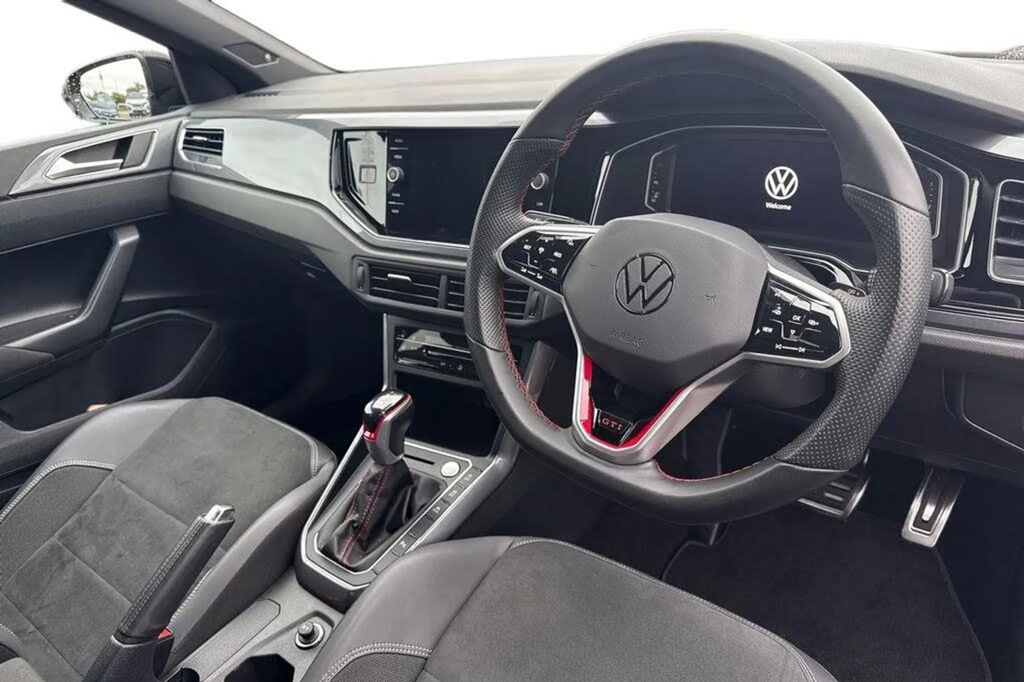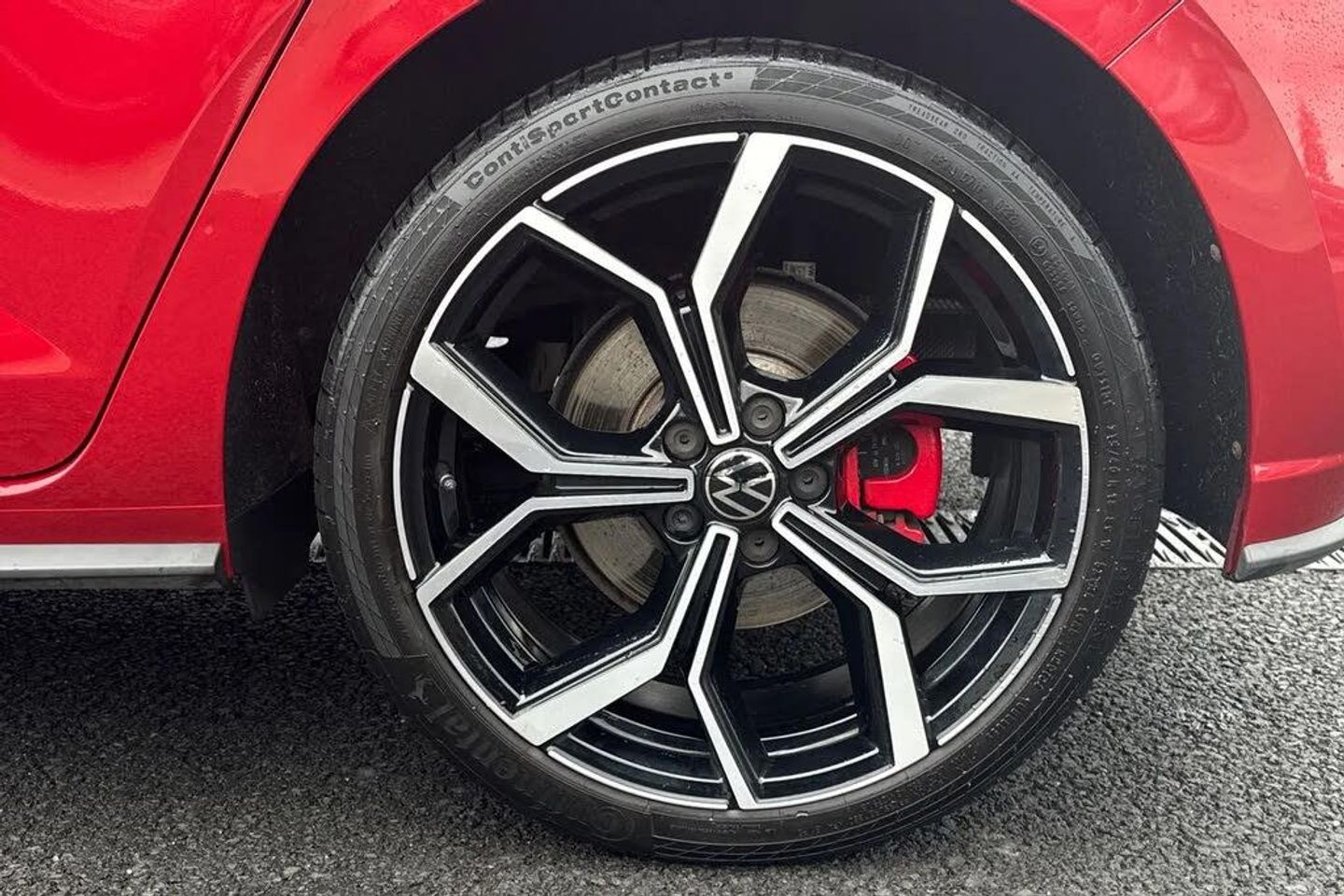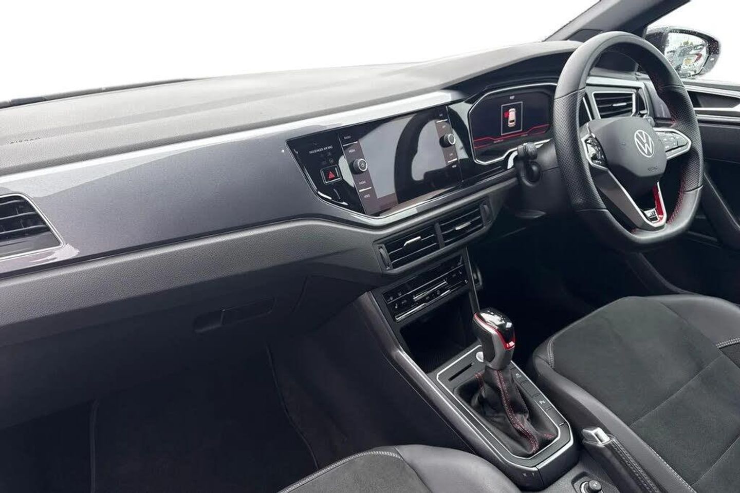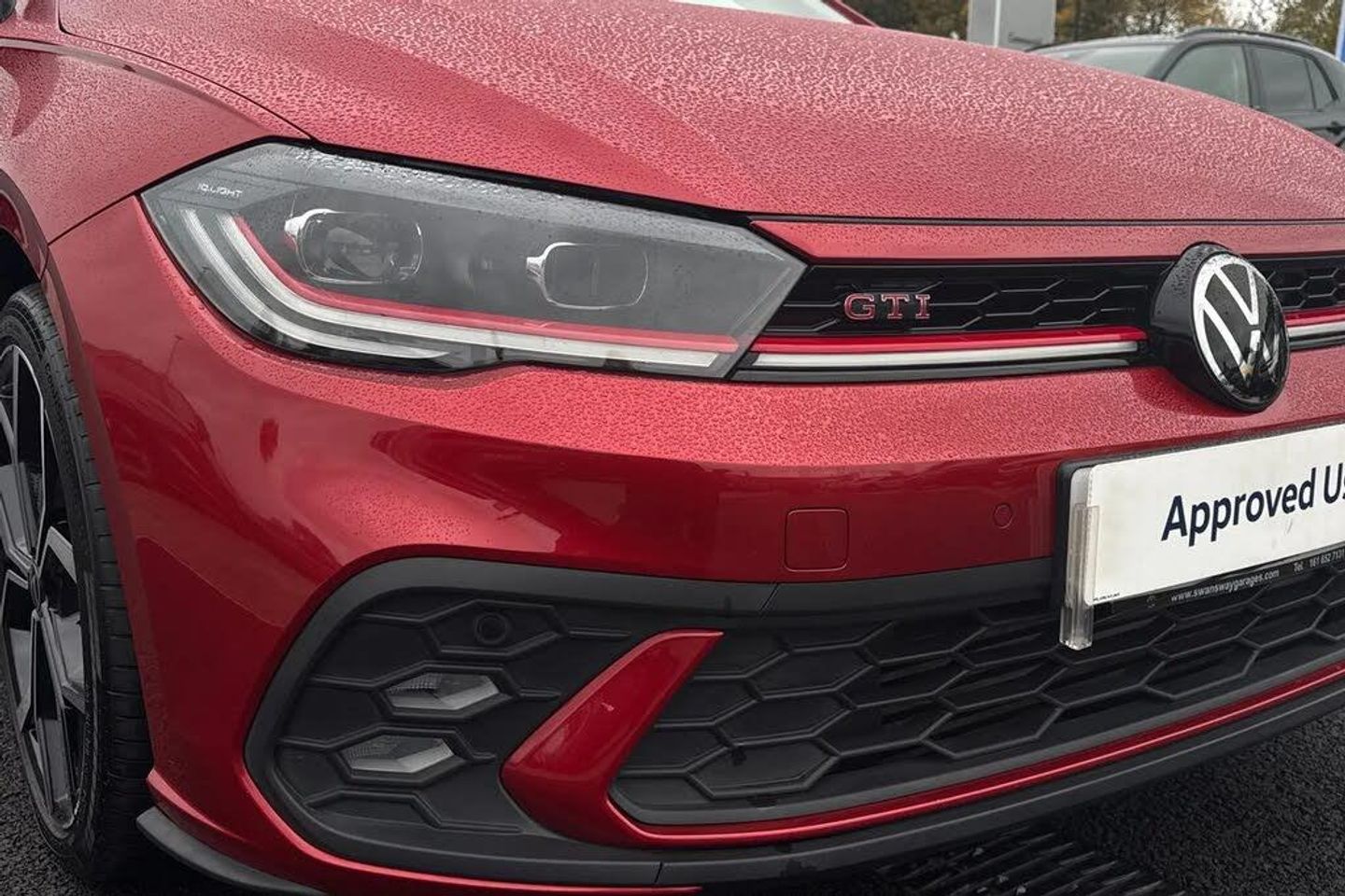 Electric front windows,Heat insulating darkened glass in side and rear windows,Heat insulating glass windscreen,Rear electric windows,Rear windscreen washer and wiper with interval delay,Adaptive chassis control,Front wheel drive,Heavy duty rear axle,Rear shock absorpion sports version,Sports select suspension lowered by 15mm,Body colour bumpers,Body colour door handles,Front scuff plates in aluminium with GTI logo,Rear side wing doors,Sport bumpers with air intakes with honeycomb structure,Twin chrome exhaust tailpipes,Rear fog light,Third brake light,ABS,ESC (Electronic stability control) + EDL (Electronic Differntial lock) and ASR (Traction control),Front and rear disc brakes with red brake calipers,Hill hold control,Adaptive cruise control with follow-to-stop and speed limiter,Driver alert system,Dynamic road sign display,Eco mode,Power assisted speed sensitive steering,Power folding adjustable/heated exterior mirrors and front passenger exterior mirror lowering function,3 point height adj front seatbelts + pretensioners,3x3 point rear seatbelts,Driver and front passenger airbag with front passenger airbag deactivation,Drivers and front passengers safety optimised head restraints,Extended and predictive pedestrian/ cyclist protection,Front curtain and side airbags with center airbag,Manual child lock in rear doors,Two tone horn,Tyre pressure loss indicator,Front + rear carpet mats,Air care climatronic air conditoning system with active combination filter and 2-zone temperature control,12V power socket in centre console,2 USB-C ports in the front,2 USB-C charging sockets on the center console in the rear,Black roof lining,Ceramique headliner,Chrome plated radiator grille inserts,air vent surrounds and light switch surrounds,Door and side trim panel,Front centre armrest,GTI sports gearshift knob in aluminium leather,Handbrake lever handle in leather,Luggage compartment cover,Luggage compartment floor,Stainless steel pedals,Standard pedal cluster,Three spoke leather wrapped multifunction sports steering wheel with shifting paddles,Front footwell illumination,LED interior light with switch off delay and dimmer,2 reading lights front and rear,Luggage compartment lighting,Driver/passenger sunvisors with illuminated vanity mirrors,Bluetooth mobile phone interface,Preparation for We connect and We connect plus,Wireless app connect,DAB Digital radio,Diversity antenna for FM reception,Front and rear 6 speakers,Travel Assist - Lane keeping system and traffic jam assist,Digital Cockpit Pro with 10.25" Display,Emergency call service,Speedo and rev counter,electronic odometer,trip,service interval display and fuel gauge,Travel assist including emergency assist,Trip computer,Warning signal and warning light for front and rear seatbelts not fastened,Washer fluid level indicator,Start-stop system with battery regeneration (recuperation - energy recovery during braking),Chrome applications on rotary light,mirror adjustment,window regulator switches,outlet with frame in black,3 rear head restraints,60/40 split folding rear seat and rear seat bench not split,Driver and front passenger seat height adjustment,Front seat backrest storage pockets,Isofix child seat preparation easy-fit (for two outer rear seats,and front passenger seat) compatible with I-size,Single front passenger seat,IQ LED matrix headlights pack - Polo,Light and sight pack - Polo GTI,Sports suspension pack - Polo,Alarm with interior protection,Anti-theft alarm system with interior monitoring,backup horn,and towing protection,Anti-theft wheel bolts,Electronic engine immo,Rear view camera,Art velour micofleece cloth upholstery + heated front sports seats + Front comfort sports seats,Front sport seats,Heated front seats,Black roof pack - Polo,Keyless locking and starting system keyless access with safelock,Special metallic - Kings red,18" Faro black diamond turned alloy wheels,18in Alloy Wheels - Faro Black Diamond Turned,Art Velours - Titan Black,Black Roof Pack,Keyless Access - Keyless Locking and Starting System with Safelock,Rear View Camera Displayed Via the Colour Screen Infotainment System