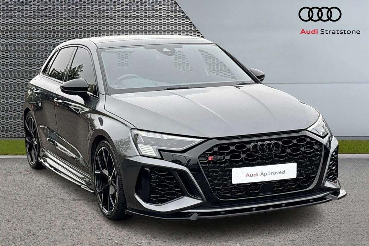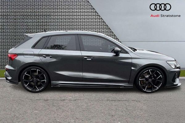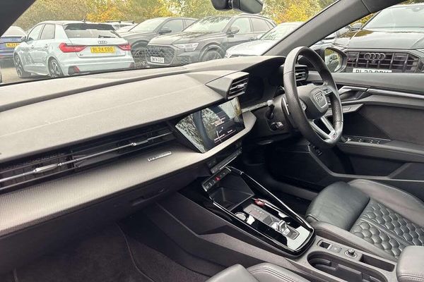 Wheels, 5-Y-spoke, Black with graphic print, 9.0J8.0J x 19, 265/30245/35 R19 tires (52V), Leather steering wheel, 3-spoke with multifunction plus and shift paddles (1XX), Adaptive suspension with Audi drive select (PDE), Audi drive select (2I0), Rear shock absorption for sports version (UB9), Convenience key in conjunction with anti-theft alarm (PG3), Anti-theft alarm (7AL), Convenience key with Safelock (4K6), Matrix LED headlamps, LED rear combination lamps and headlamp washer system (PXC), Darkened matrix LED headlights with dynamic light sequencing and dynamic turn signal (8JT)