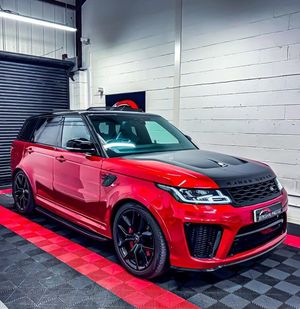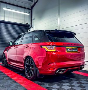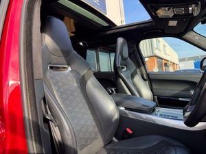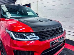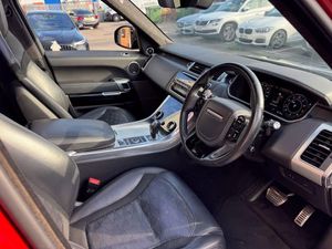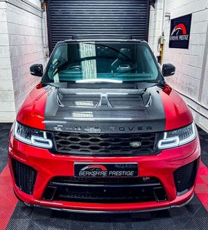 RANGE ROVER SPORT SVR FINISHED IN FIRENZE RED, PANORAMIC TILD AND SLIDE GLASS SUNROOF, EXPOSED CARBON FIBRE BONNET, MERIDIAN SOUND, HEATED AND COOLED SEATS, ELECTRIC MEMORY SEATS, BLEACK LEATHER SPORTS SEATS, 360 CAMERA, HEATED AND COOLED CUP HOLDERS, APPLE CAR PLAY, BLUETOOTH, SAT NAV, 22" ALLOY WHEELS, BLACK STYLING PACK PLUS MUCH MORE, FULL LAND ROVER SERVICE HISTORY, COMES WITH 2 KEYS EXCELLENT FINANCE PACKAGES- 6 MONTH WARRANTY FIRST & OPT EVEN INCLUDED+EXTENDED WARRANTY OPTIONS+NATIONWIDE DELIVERY+EXPORT AVAILABLE+PART EX WELCOME AT TRADE PRICE+PAINT PROTECTION AVAILABLE.