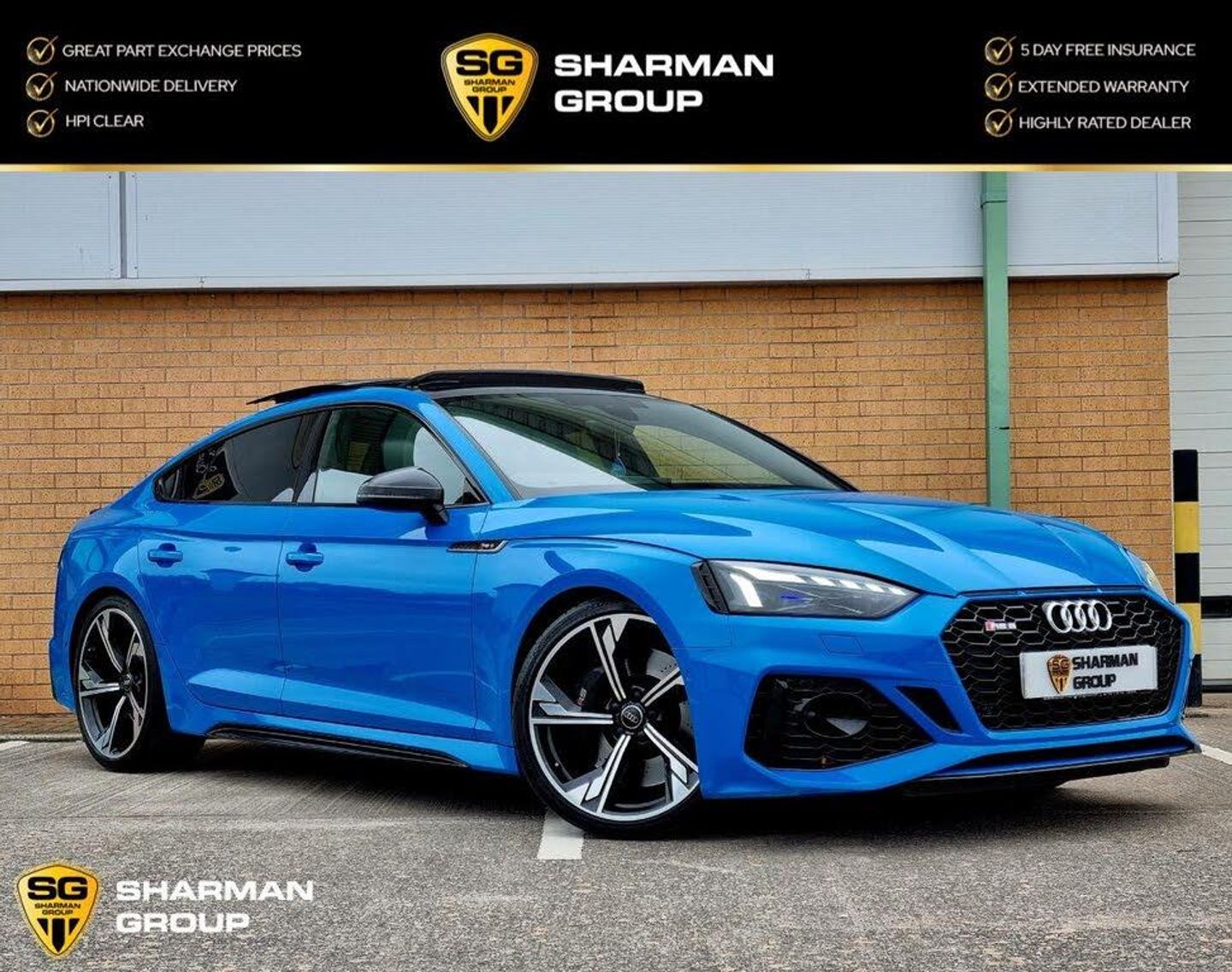 Incredible Audi RS5 On The Market. Finished In Turbo Blue With Full Service History, 2 Original Keys And An Outstanding Spec Inc: Panoramic Glass Sunroof, Audi RS Sport Exhaust, Bang And Olufsen Sound System, Heated Front And Rear Seats, Fine Nappa Leather - RS Super Sports with Pneumatic Massage Function - Black with Rock Grey Honeycomb Contrast Stitching, Blind Spot Assist, 20in Alloy Wheels, Black Styling Package, Comfort and Sound Package, Matrix LED Headlights with Audi Laser Light - Dynamic Light Sequencing - Dynamic Indicator, Audi Phone Box with Wireless Charging, Driver Assistance Pack, Reverse Assist Camera, MMI Navigation Plus including MMI Touch, Privacy Glass, Park Assist, Audi Drive Select And Much Much More You Really Can Do Everything You Need Seamlessly In This Spectacular Car. Every Effort Has Been Made To Ensure The Accuracy Of The Above Information, But Errors May Occur, Please Check With The Sales Executive Upon Enquiry. Part Exchanges Considered. All Major Credit & Debit Cards Accepted. We Offer Various Dealer Facilities Including Servicing, MOTS, Valeting, Detailing, Protective Coatings, Comprehensive Warranties, 5 Days FREE Insurance, HPI Clear And A Full After-Sales Service. We are Open 7 Days A Week-PANROOF+B&O+TURBO BLUE+FSH++-Call us now on 0161 319 1253 / 07760 668 236 for more information. www.sharmangroup.co.uk