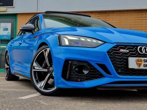 19in Alloy Wheels - 10-Spoke Star Design, 2 USB Charging Ports, 6-Airbag System, Anti Theft Locking Wheel Bolts, Anti-Theft Alarm, Audi Beam, Audi Connect Infotainment Services - 36 Month Trial, Audi Connect Safety and Service, Audi Matrix LED Headlights with LED Rear Lights and Dynamic Front and Rear Indicators, Audi Phone Box with Wireless Charging, Audi Side Assist, Audi Smartphone Interface, Audi Sound System, Audi Virtual Cockpit, Auto-Dimming Rear-View Mirror, Automatic Start-Stop with Coasting Functionality and Efficiency Programme, Brake Calipers Painted in Black with RS 5 Logo at the Front, Cruise Control System with Speed Limiter, DAB Digital Radio Reception, Deluxe 3-Zone Electronic Climate Control, Door Handles - Body Coloured, Door Mirrors - Folding with Auto-Dimming and Memory Function, Door Mirrors - Matt Aluminium Look Housings, Door Sill Trims - Illuminated with RS5 Logo, Electric Windows - Front and Rear, Electrically Adjustable Front Seats, Electromechanical Power Steering, Electronic Stability Programme - ESP includes ABS- ASR - EDL, Email - Calendar and Text Messages can be Displayed on your Vehicles MMI, First Aid Kit and Warning Triangle, Flat-Bottomed High Multi-function 3-Spoke Leather Sport Steering Wheel with RS Badging, Front Centre Armrest, Front and Rear Floor Mats, Heated Front Seats, Hill Hold Assist, ISOFIX Child Seat Mounting and Top Tether, Inlays - Aluminium Race, Keyless Go, LED Interior Light Package, Leather Door Armrests and Knee Pad, Light and Rain Sensor, MMI Navigation Plus including MMI Touch, Multi Collision Brake Assist, Parking System Plus - Front and Rear Sensors, Pedals in Stainless Steel, Pneumatic Massage Function, Pop-Up Bonnet for Pedestrian Protection, Pre-Sense City, Privacy Glass with Rear Acoustic Glazing, RS Audi Drive Select, RS Body Styling, RS Dual-branch Chrome Tailpipes with Large Oval Pipes Each on Left and Right, RS Exhaust System, RS Model Enhanced Braking System, RS Sports Suspension, RS-Specific Gear Lever Knob in Perforated Leather with Contrast Stitching, RS5 Badges on Grille - Front Wing Panels and Rear, Rear-View Camera, Remote Control Key with RS Emblem, Seat Belt Monitoring, Split-Folding 3-Seater Rear Seat Bench in 3 Parts - 40-20-40, Tool Kit, Tyre Repair Kit, Voice Control, Windscreen with Acoustic Glazing, quattro with Sports Differential, 20in Alloy Wheels - 9.0J 5-Arm - Flag Design - Audi Sport, Panoramic Glass Sunroof, RS Sports Exhaust System, Comfort and Sound Package, Fine Nappa Leather - RS Super Sports with Pneumatic Massage Function - Black with Rock Grey Honeycomb Contrast Stitching, Storage and Luggage Compartment Package