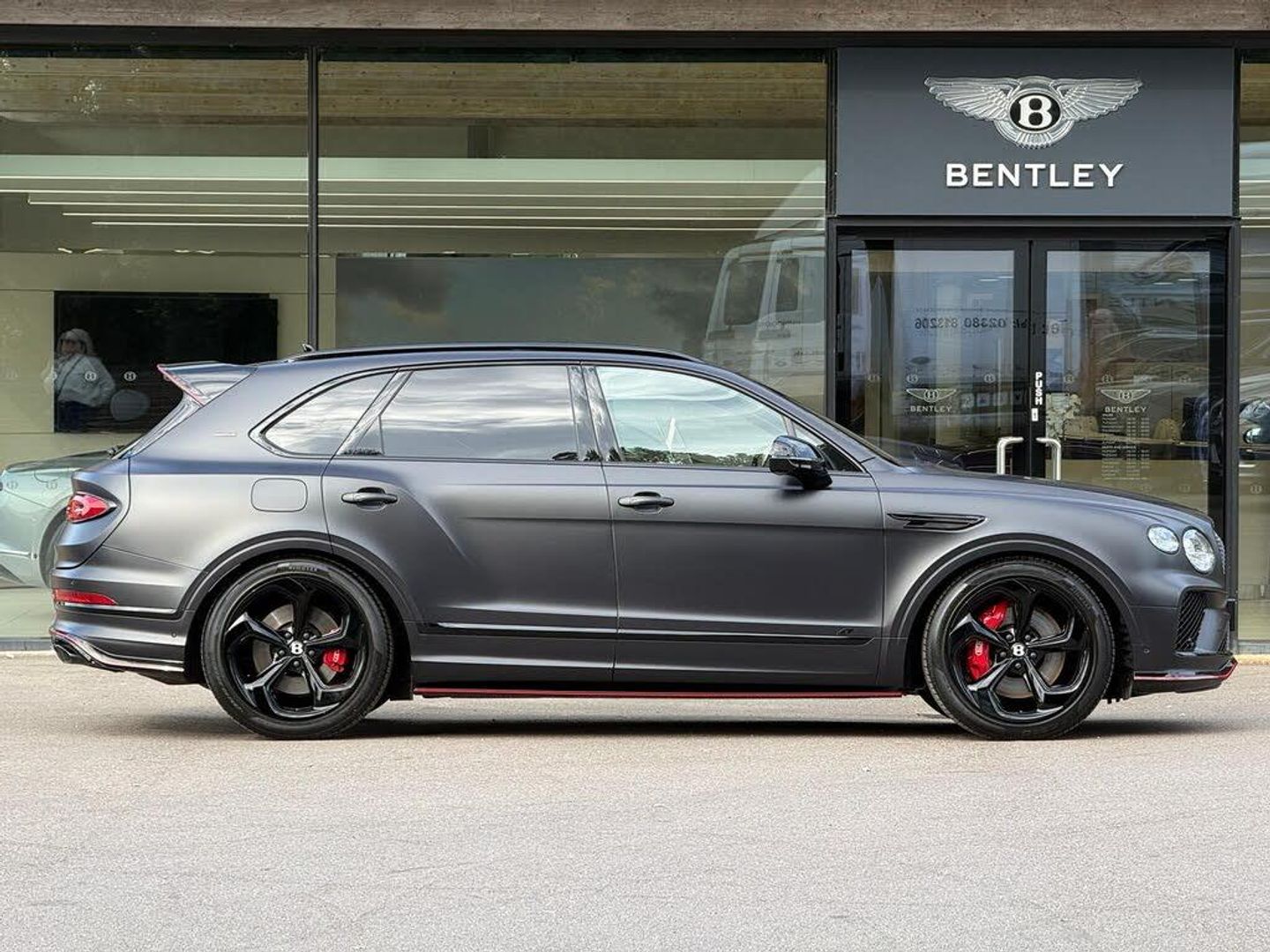 10.9in Touchscreen Infotainment System, 12V Power Sockets - x2 Cabin and x1 Boot, 16 Way Electric Front Seats - Heated with Memory, 22in Alloy Wheels - S Directional Wheel - Painted, 3D Surround View, 4 Zone HVAC including Particle Matter Sensor and PM2.5 Screen, 8 Speed Automatic Transmission, ABS - Anti Lock Braking System, Acoustic Heat-Insulating Front Screen, Acoustic Side Glass, Adaptive Cruise Control System, Air Ionisers - Front and Rear, Air Suspension with Continuous Damping Control, Alarm and Immobiliser, Aluminium Side Window Brightware, Auto-Dimming Rear View Mirror, Bentayga Blackline Specification, Bentayga S Fascia Badge, Bentayga Styling Specification - Gloss black, Bentley B Wing Vent, Bentley Branded Clock, Bentley Dynamic Ride with Electronic All Wheel Steer, Bentley Safeguard Plus, Bentley Signature Audio, Black Door Mirrors, Black Painted Shark Fin Aerial, Blind Spot Warning, Blind Stitching, Bluetooth Telephone Preparation, Body Coloured Front Bumper Apron, Boot Carpet in Beluga, Carpet Mats - Front and Rear, Central Locking System, Connected In-Car Services, DAB Radio, Dark Tint Front and Rear Lights, Dinamica Headlining and Upper Trim, Dinamica Trimmed Gear Lever, Door Mirrors - Heated - Power Folding and Memory Functions and Dimming, Double Sun Visor, Drag Torque Control - MSR, Drive Dynamics Control, Driver Assist Profile Switch, EBD - Electronic Brake Force Distribution, ESP - Electronic Stability Programme, Electric Tilt and Reach Adjustment Steering Column with Memory and Easy Entry Functions, Electrically Operated Blinds for Rear Side Windows, Electronic Diff Lock - EDL, Electronic Parking Brake, Embroidered Bentayga S Emblems, Embroidered Bentley Emblems, Emergency Assist, Evasive Steering Assist, Exit Warning, Fixed Rear Spoiler, Folding Luggage Compartment Cover, Four USB-C Sockets - x2 Front Cabin - x2 Rear Cabin, Front and Rear Cup Holders, Front and Rear Fog Lamps, Front and Rear Park Distance Control, Front and Rear Vented Disc Brakes with Bentley Branded Calipers - Front, Full LED Matrix Headlamps with High Beam Assist, Full LED Supplementary Lamps and Tail Lamps, Gloss Black Tailpipes, HBA - Hydraulic Brake Assistance, Heated Rear Screen, Hill Descent Control, Intelligent Park Assist, Keybox, Lane Departure Warning, Load Through Facility, Lockable Cooled Glove Box, Luggage Rails on Boot Floor, Manoeuvre Assist, My Bentley Connected Car Services, My Bentley Remote Park Assist, Panoramic Glass Roof, Performance Drivers Information Panel Graphics, Permanent All-Wheel Drive - with Centre Torsen Differential, Power Latching to Driver and Passenger Doors, Predictive Efficiency Assist, Rain Sensing Windscreen Wipers, Rear Crossing Traffic Assist, Roof Rails, S Exterior Door Badge, Speed Sensitive Variable Ratio Electric Power Steering, Sports Exhaust, Standard Brakes with Red Calipers, Standard Foot Pedals, Standard Oil and Fuel Filler Caps, Steering Wheel - 3 Spoke Single Tone - Dinamica Trimmed - Heated, Steering Wheel Mounted Gearshift Paddles, Stowage to Instrument Panel - Front and Rear Doors - Armrests and Console, TPMS - Electronic Tyre Pressure Monitoring System, Tailgate - Hands Free, Tailgate - Powered, Touch Screen Remote, Traction Control, Traffic Sign Recognition, Treadplate - Illuminated, Turn Assist Front and Rear, Twin Front Armrests, Two Metal Bulls-Eye Vents with Organ Stops and Centre Vents, Unique S Fluted Seat Colour Combination with Dinamica Inserts, Veneer - Piano Black, Voice Control - Text to Speech, Welcome Orchestration Lighting, Wet Arm Front Screen Wipers, Wi-Fi Connectivity and Audio Streaming, Wireless Phone Charger - Front Centre Console, Deep Pile Carpet Overmats - Front and Rear, Heated - Acoustic - IR Front Screen, Leather Specification - S, Mood Lighting, Naim for Bentley, Remote Controlled Garage Door Opener, S Colour Specification, Touring Specification, Rear Acoustic Privacy Glass, Electrically Retracting Tow Bar
