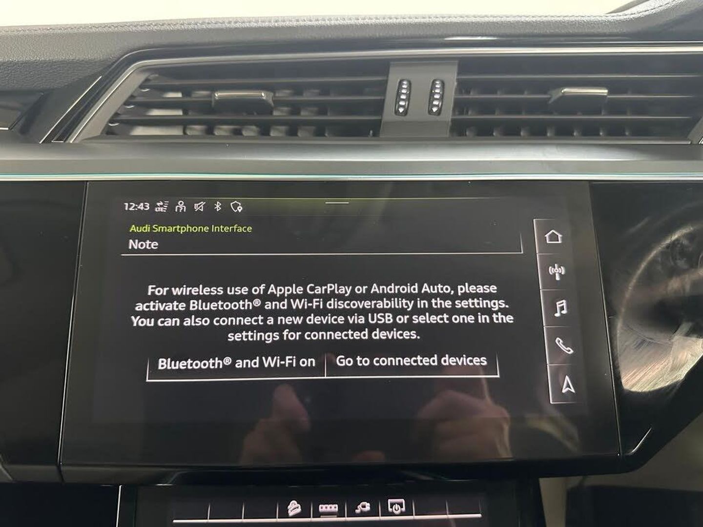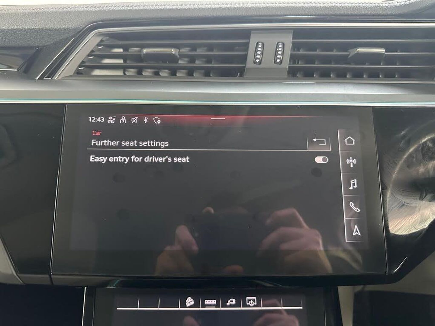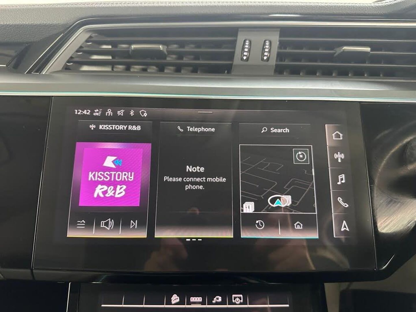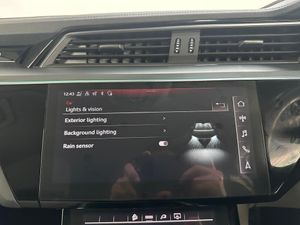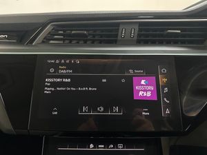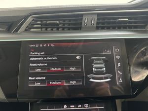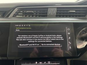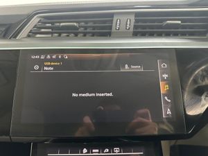 11 kW Onboard Charger, 2-Zone Automatic Air Conditioning, 20in Alloy Wheels - 5-Arm Design, 4-Way Lumbar Support for Front Seats, ABS - Anti-Lock Braking System, AC and DC Charging Access Point on Drivers Side and Second AC Charging Access Point on Passenger Side, AMI - Audi Music Interface - Front, Active Vehicle Alerting System - AVAS, Adaptive Air Suspension, Airbags - Driver, Anti-Theft Alarm, Anti-Theft Wheel Bolts and Wheel Loosening Warning, Audi Connect, Audi Connect Safety and Service - e-call, Audi Drive Select, Audi Pre-Sense Front and Basic, Audi Smartphone Interface Includes Wireless Functionality, Audi Sound System, Audi Virtual Cockpit, Auto Dimming and Frameless Rear View Mirror, Bluetooth Interface, Body Coloured Door Mirrors, Bumpers - Contrasting, Cloth Headlining in Lunar Silver, Compact e-tron Charging System, Cruise Control with Speed Limiter, DAB Digital Radio, Door Mirrors - Electrically Adjustable - Heated - Folding - Automatically Dimming with Memory Function with Kerb View Function for Passenger Side, Door Sills with Aluminium Inlays, Electric Windows - Front and Rear, Electrically Adjustable Front Seats including Memory Function for Drivers Seat, First Aid Kit and Warning Triangle, Four-Spoke Multi-Function Leather Steering Wheel with Paddles, Front Centre Armrest, Front and Rear Floor Mats, Gloss Styling Pack, Heated Front Seats, Household Plug Type G - GB, ISOFIX Child Seat Mounting for Front Passenger Seat with Front Passenger Airbag Deactivation, ISOFIX Child Seat Mounting for Outer Rear Seats, Industry Plug CEE 32 A-230 V, Inlays in Graphite Grey Paint Finish, Keyless Go, LED Headlights with Function-On-Demand Preparation, LED Interior Light Package, LED Rear Lights, Lane Departure Warning, Luggage Compartment Cover, Luggage Compartment Floor, MMI Navigation Plus with MMI Touch - Twin Touch Screens with Haptic Feedback, Manual Steering Column Adjustment, Mode 3 Type 2-AC Charging Cable 22kW, Parking System Plus with 360 Degree Sensors and Function-On-Demand Preparation, Power Operated Tailgate, Progressive Steering, Rear View Camera, Removable Net Partition, Side Airbags - Front and Head Airbag System, Sun Visors with Illuminated Vanity Mirrors, Tool Kit, Tyre Mobility System, Tyre Pressure Warning Light, Vehicle Inlet Combo 2 - EU CCS, Windscreen with Acoustic Glazing, Audi Side Assist including Pre-Sense Rear, Rear Side Airbags with Illuminated Seat Buckles, Tour Pack, Privacy Glass, Virtual Door Mirrors, Comfort and Sound Package, 20in Alloy Wheels - 9.0J 5-Twin Spoke Matt Titanium Look Gloss Finish Design - Diamond Cut, Climate Control - Electronic Deluxe 4-Zone, On-Board Charger - Up to 22kW - AC