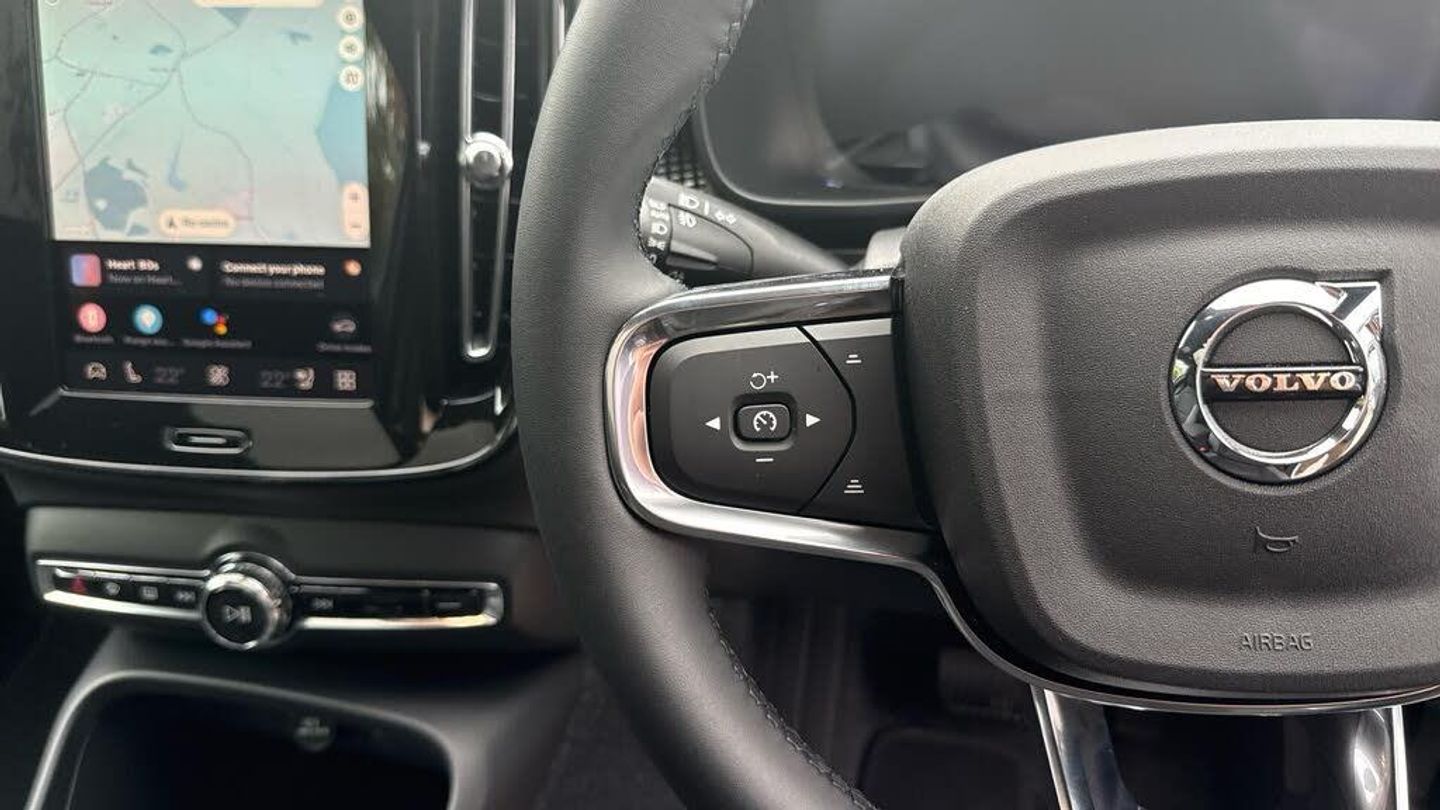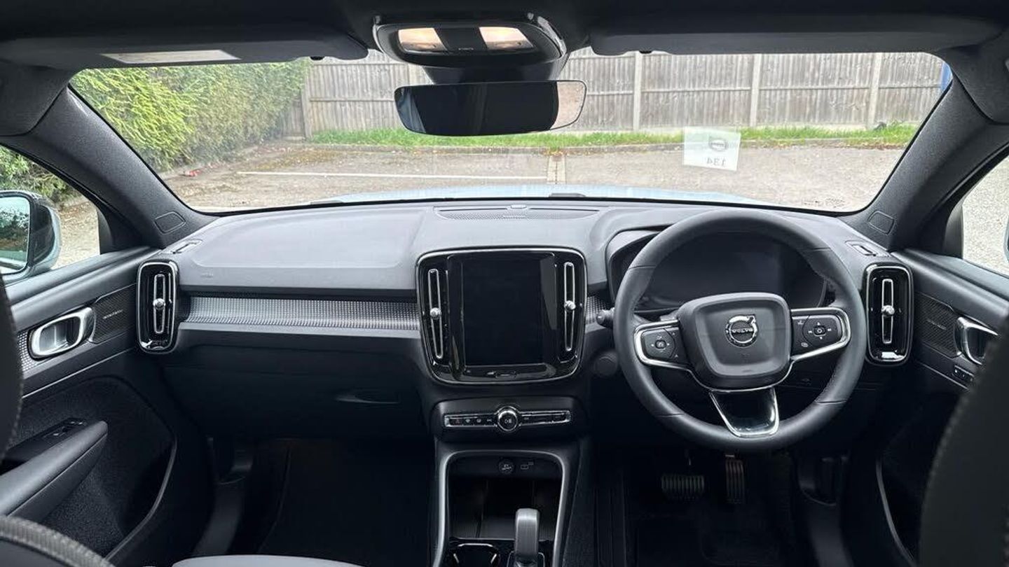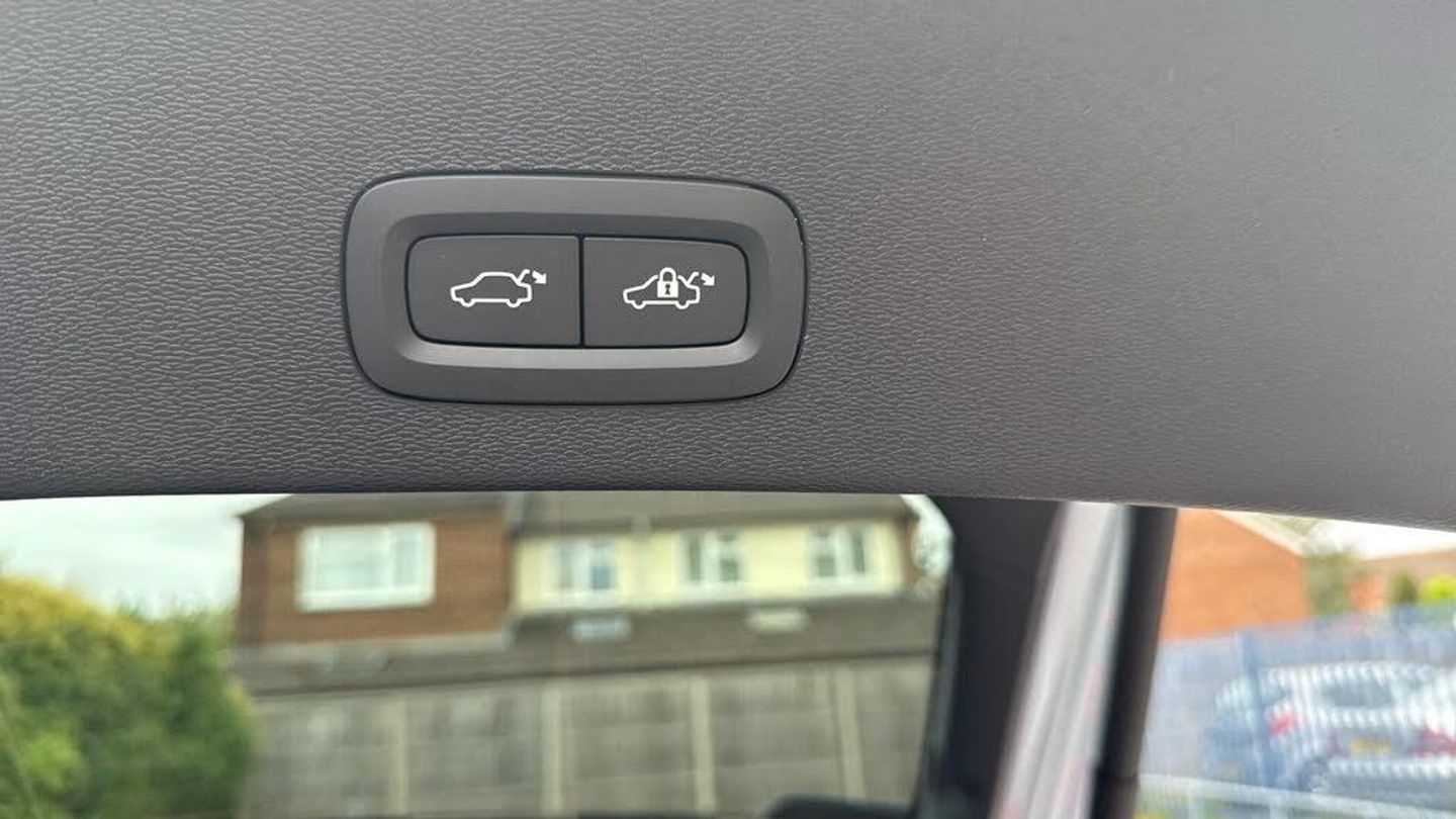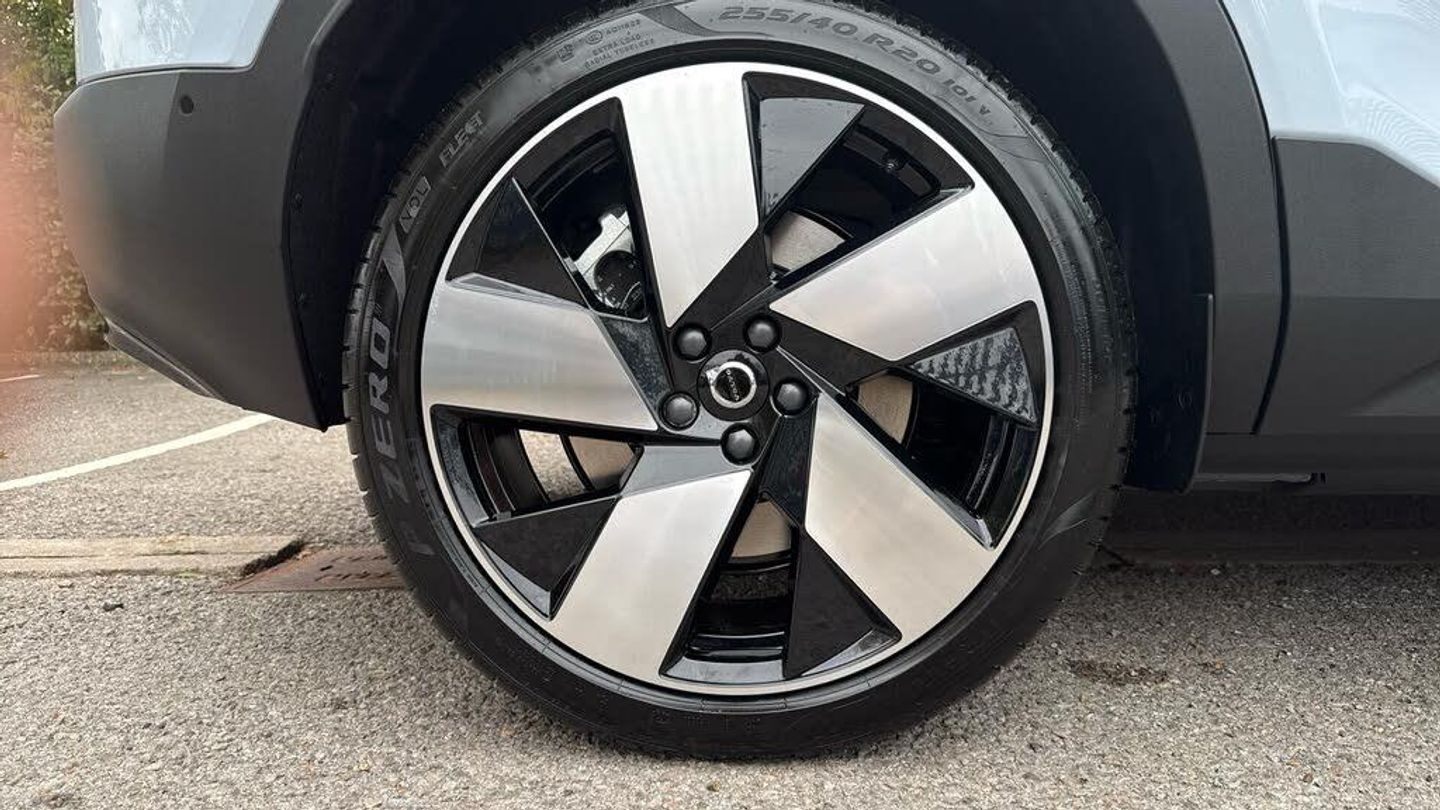 Sculpted gear shift, Roof top in contrast colour. Black Stone, Door mirror covers. high-gloss black, Cutting Edge aluminium decor, Fusion Microtech/Textile upholstery, Shift-by-wire single speed transmission, Two-zone climate system, Afterrun parking climate, Passenger airbag cut-off switch, Dual-stage airbags, Heat pump, Knee airbag. driver side, Panoramic roof. fixed, Charcoal headlining, Charcoal interior inserts, Road Sign Information, Lane Keeping Aid and Lane Departure Warning, Body coloured covered grille, Heated grill emblem, Pixel LED headlights, Headlight cleaning, Trailer lamp control, Fog lamps, 12.3-inch driver display, Google Assistant. Google Maps and Google Play Store, Adaptive cruise control, Intelligent Speed Assist (ISA), Volvo Cars App remote functions, Air-ventilated subwoofer, Digital Audio Broadcasting (DAB+), Harman Kardon Premium Sound, Power retractable door mirrors, Wireless phone charging, Automatic door locking, Remote key, Double locking, Tinted rear windows, BLIS? and Cross Traffic Alert, Alarm, Power child safety lock, Power tailgate, Keyless entry with hands-free power tailgate, Air purifier and remote cabin pre-cleaning, Folding bag hook, Digital owners manual, Power driver seat with memory, Power passenger seat, Heated front seats, Heated rear seats, Power folding rear head restraints, 5 seats, Mechanical release second seat row, Manual cushion extensions. driver and passenger, Power 4-way lumbar support, Textile interior cabin floor mats, Protection net, Foldable load floor with cargo divider and grocery bag, Rear centre armrest, i-Size/ISOFIX mounting points. front seat, Illuminated vanity mirrors, Interior illumination. high level, First-aid kit, Auto-dimmed rear view mirrors, Front centre armrest, Front load compartment, Glossy black tunnel console, Touring chassis, Hill Start Assist, Tyre pressure monitoring, Oncoming Lane Mitigation, Rear Collision Warning, Hill Descent Control, Slippery road alert, Emergency brake light, Heated steering wheel, Tailored sport steering wheel. Charcoal, Adaptive power steering, 20? 5-spoke glossy black diamond cut. rear, Temporary mobility kit, Lockable wheel bolts, Body-coloured door handles with ground lighting, High-gloss black side window trim, Warning triangle, EC40 aluminium front tread plates, Without rear engine emblem, Tempered side and rear windows, Rain sensor, Park assist. front. rear and sides, Whiplash injury protection, Inflatable Curtain, Side impact protection, ISOFIX mounting points. rear seat, Steering wheel remote control, Humidity sensor, Bluetooth® connection, Safety belts, Android Auto, Pilot Assist, Plug & Charge, Electric cabin heater and cooler, 360° camera, Alcohol lock software (not available in the UK), Protective cap kit. Matt Tech Grey, Apple CarPlay, Comfort front seats, 9-inch centre display, Charging station cable. 6m