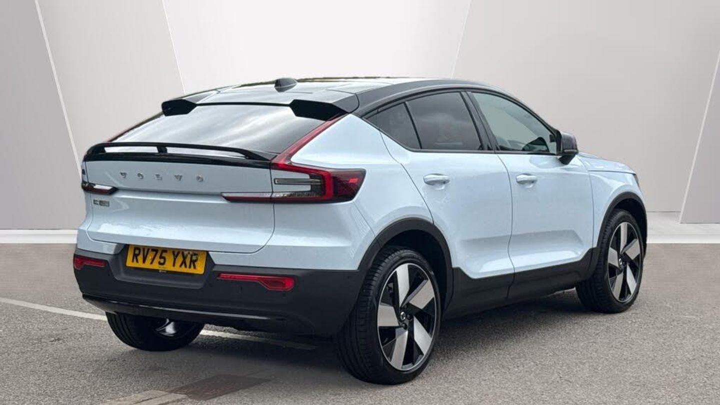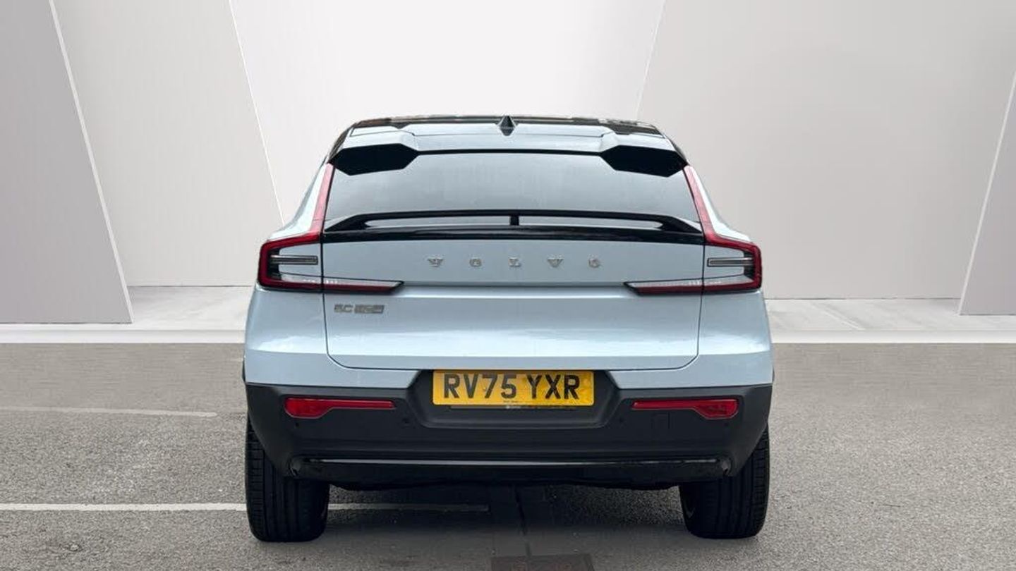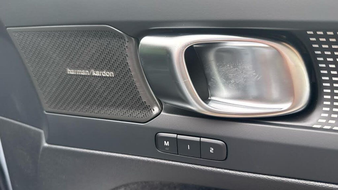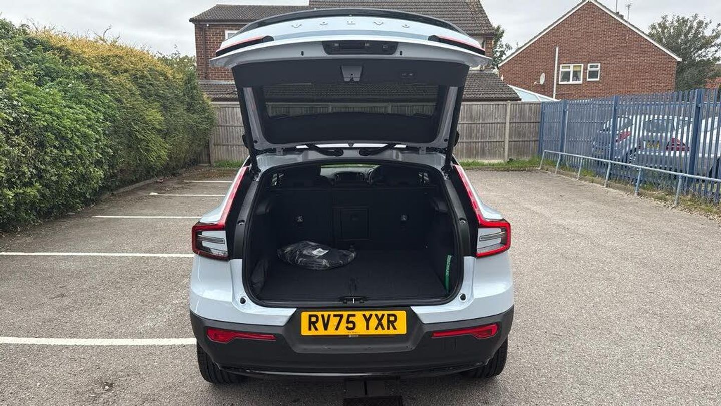 Sculpted gear shift, Roof top in contrast colour. Black Stone, Door mirror covers. high-gloss black, Cutting Edge aluminium decor, Fusion Microtech/Textile upholstery, Shift-by-wire single speed transmission, Two-zone climate system, Afterrun parking climate, Passenger airbag cut-off switch, Dual-stage airbags, Heat pump, Knee airbag. driver side, Panoramic roof. fixed, Charcoal headlining, Charcoal interior inserts, Road Sign Information, Lane Keeping Aid and Lane Departure Warning, Body coloured covered grille, Heated grill emblem, Pixel LED headlights, Headlight cleaning, Trailer lamp control, Fog lamps, 12.3-inch driver display, Google Assistant. Google Maps and Google Play Store, Adaptive cruise control, Intelligent Speed Assist (ISA), Volvo Cars App remote functions, Air-ventilated subwoofer, Digital Audio Broadcasting (DAB+), Harman Kardon Premium Sound, Power retractable door mirrors, Wireless phone charging, Automatic door locking, Remote key, Double locking, Tinted rear windows, BLIS? and Cross Traffic Alert, Alarm, Power child safety lock, Power tailgate, Keyless entry with hands-free power tailgate, Air purifier and remote cabin pre-cleaning, Folding bag hook, Digital owners manual, Power driver seat with memory, Power passenger seat, Heated front seats, Heated rear seats, Power folding rear head restraints, 5 seats, Mechanical release second seat row, Manual cushion extensions. driver and passenger, Power 4-way lumbar support, Textile interior cabin floor mats, Protection net, Foldable load floor with cargo divider and grocery bag, Rear centre armrest, i-Size/ISOFIX mounting points. front seat, Illuminated vanity mirrors, Interior illumination. high level, First-aid kit, Auto-dimmed rear view mirrors, Front centre armrest, Front load compartment, Glossy black tunnel console, Touring chassis, Hill Start Assist, Tyre pressure monitoring, Oncoming Lane Mitigation, Rear Collision Warning, Hill Descent Control, Slippery road alert, Emergency brake light, Heated steering wheel, Tailored sport steering wheel. Charcoal, Adaptive power steering, 20? 5-spoke glossy black diamond cut. rear, Temporary mobility kit, Lockable wheel bolts, Body-coloured door handles with ground lighting, High-gloss black side window trim, Warning triangle, EC40 aluminium front tread plates, Without rear engine emblem, Tempered side and rear windows, Rain sensor, Park assist. front. rear and sides, Whiplash injury protection, Inflatable Curtain, Side impact protection, ISOFIX mounting points. rear seat, Steering wheel remote control, Humidity sensor, Bluetooth® connection, Safety belts, Android Auto, Pilot Assist, Plug & Charge, Electric cabin heater and cooler, 360° camera, Alcohol lock software (not available in the UK), Protective cap kit. Matt Tech Grey, Apple CarPlay, Comfort front seats, 9-inch centre display, Charging station cable. 6m