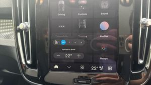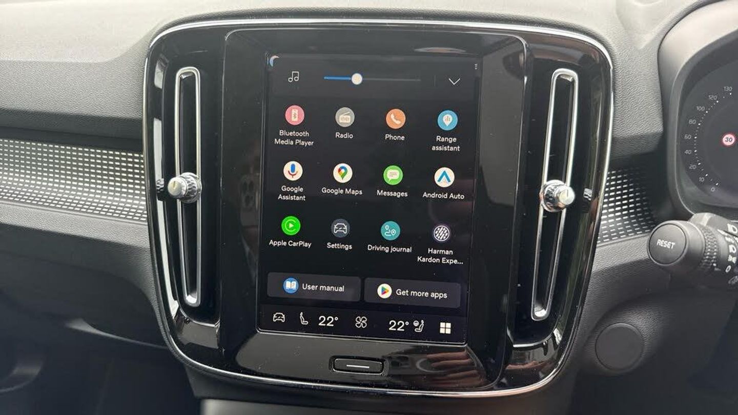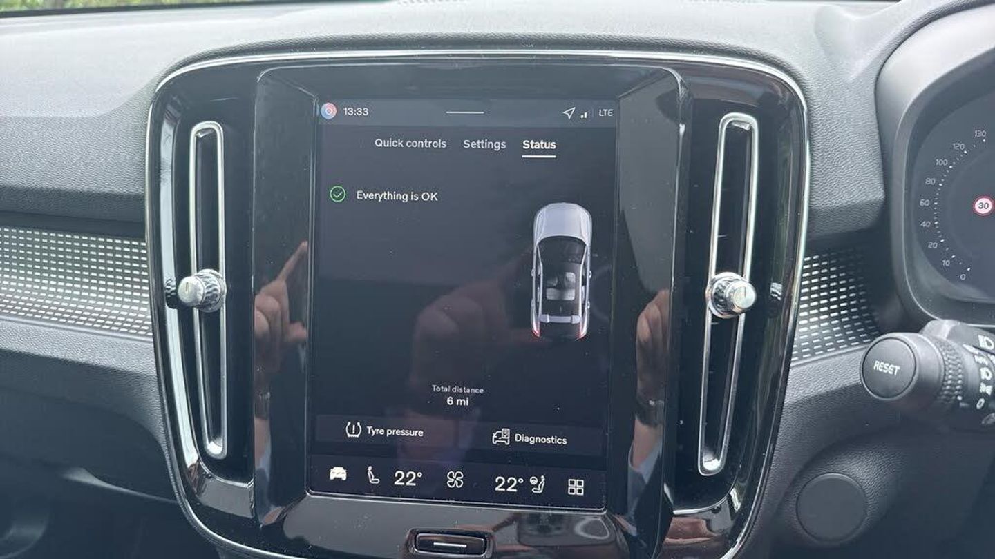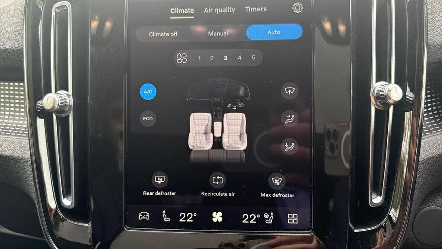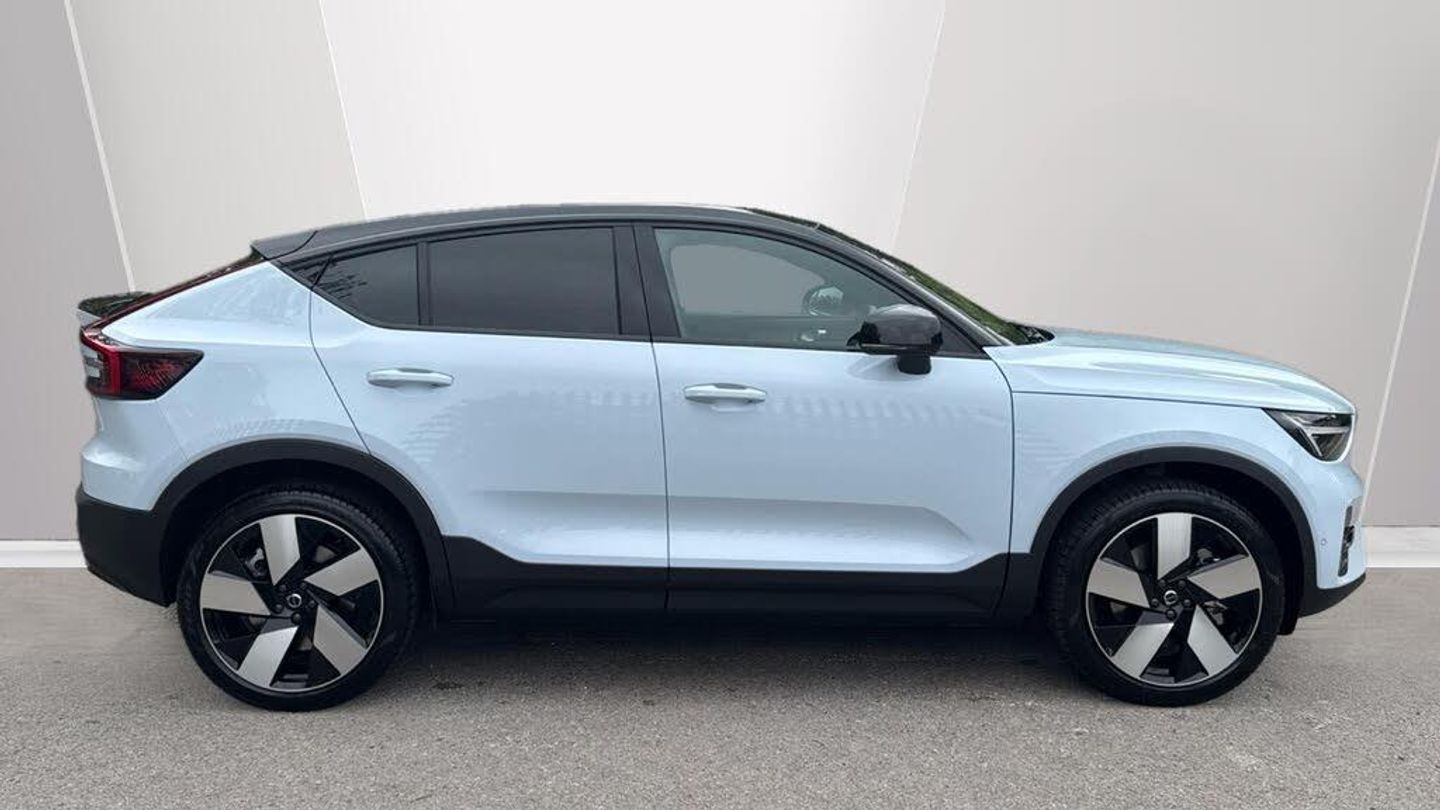 Sculpted gear shift, Roof top in contrast colour. Black Stone, Door mirror covers. high-gloss black, Cutting Edge aluminium decor, Fusion Microtech/Textile upholstery, Shift-by-wire single speed transmission, Two-zone climate system, Afterrun parking climate, Passenger airbag cut-off switch, Dual-stage airbags, Heat pump, Knee airbag. driver side, Panoramic roof. fixed, Charcoal headlining, Charcoal interior inserts, Road Sign Information, Lane Keeping Aid and Lane Departure Warning, Body coloured covered grille, Heated grill emblem, Pixel LED headlights, Headlight cleaning, Trailer lamp control, Fog lamps, 12.3-inch driver display, Google Assistant. Google Maps and Google Play Store, Adaptive cruise control, Intelligent Speed Assist (ISA), Volvo Cars App remote functions, Air-ventilated subwoofer, Digital Audio Broadcasting (DAB+), Harman Kardon Premium Sound, Power retractable door mirrors, Wireless phone charging, Automatic door locking, Remote key, Double locking, Tinted rear windows, BLIS? and Cross Traffic Alert, Alarm, Power child safety lock, Power tailgate, Keyless entry with hands-free power tailgate, Air purifier and remote cabin pre-cleaning, Folding bag hook, Digital owners manual, Power driver seat with memory, Power passenger seat, Heated front seats, Heated rear seats, Power folding rear head restraints, 5 seats, Mechanical release second seat row, Manual cushion extensions. driver and passenger, Power 4-way lumbar support, Textile interior cabin floor mats, Protection net, Foldable load floor with cargo divider and grocery bag, Rear centre armrest, i-Size/ISOFIX mounting points. front seat, Illuminated vanity mirrors, Interior illumination. high level, First-aid kit, Auto-dimmed rear view mirrors, Front centre armrest, Front load compartment, Glossy black tunnel console, Touring chassis, Hill Start Assist, Tyre pressure monitoring, Oncoming Lane Mitigation, Rear Collision Warning, Hill Descent Control, Slippery road alert, Emergency brake light, Heated steering wheel, Tailored sport steering wheel. Charcoal, Adaptive power steering, 20? 5-spoke glossy black diamond cut. rear, Temporary mobility kit, Lockable wheel bolts, Body-coloured door handles with ground lighting, High-gloss black side window trim, Warning triangle, EC40 aluminium front tread plates, Without rear engine emblem, Tempered side and rear windows, Rain sensor, Park assist. front. rear and sides, Whiplash injury protection, Inflatable Curtain, Side impact protection, ISOFIX mounting points. rear seat, Steering wheel remote control, Humidity sensor, Bluetooth® connection, Safety belts, Android Auto, Pilot Assist, Plug & Charge, Electric cabin heater and cooler, 360° camera, Alcohol lock software (not available in the UK), Protective cap kit. Matt Tech Grey, Apple CarPlay, Comfort front seats, 9-inch centre display, Charging station cable. 6m