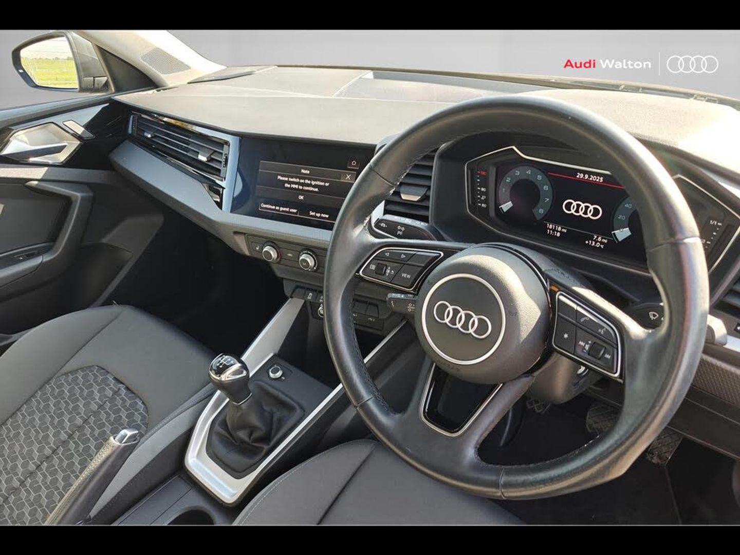 10.25" Digital instrument cluster display classis style instrument dials + speed,odometer,time,outside temperature,telephone menu + fuel level warning, Audi connect safety emergency and service including E-call, Audi smartphone interface with connect compatible smartphone via USB directly MMI display + Nav,music, third party apps controlled via MMI controller, Automatic start/stop system, Bluetooth interface, Cruise control, Driver's information system, Electromechanical power steering, Emergency services call system, Lane departure warning system, Service interval indicator, Speed limiter, Voice control system, Washer fluid level indicator, Dynamic suspension, 1 x SDXC card reader, 2 x USB type C connection points, DAB Digital radio, MMI radio plus with 8.8" colour MMI display screen and MMI touch, Auto dimming rear view mirror, Body coloured bumpers, Body coloured door mirrors, Electric front and rear windows, Electrically adjustable, heated, folding door mirrors with integrated LED side indicator, Front side air inlets in grained matt black and C frame in titanium black, Heat insulating glass windscreen and side windows, Heated rear windscreen, High level LED brake light, LED headlights with LED rear lights + dynamic rear indicators + headlight adjustment and high beam, turning light + LED daytime running lights, Radiator grille and rear diffuser in matt titanium black, Radiator protective grille frame in matt aluminium silver, Rain and light sensors, Rear fog lights, Rear side wing doors, Rear wing door, Rear wiper, Side front spoiler lips in grained matt black, 12V socket in centre console with two cup holders, 3 rear seats with headrests, 3 seat bench in 2nd row, 40:60 Split folding rear seat or folded fully, Door sill trims with aluminium inlay, Driver and passenger seat with manual height adjust with forward and backwards adjustment, Front head restraints, Front passenger seat, Front/rear floor mats, Height and reach adjustable steering wheel, ISOFIX child seat mounting for front passenger and outer rear seats including top tether attachment point of outer rear seats, Leather gear knob with aluminium trim, Leatherette handbrake grip, Luggage compartment light with front and rear reading lights, Manually adjustable lumbar support in front seats, Novum cloth upholstery with front sport seats, Titanium grey cloth headlining, Luggage compartment pack - A1, 3x3 point rear seatbelts, Audi pre-sense front with pedestrain and cyclist recognition, Brake assist function, Driver and front passenger airbag with front side and head airbags, Electronic Stability Control including ABS, EBD, ASR and EDL, Front passenger airbag deactivation switch, Hill hold assist, Manual rear child locks, Seatbelt height adjustment for front seats, Seatbelt monitoring, Tyre pressure warning light, Warning triangle and first aid kit, Anti theft alarm, Anti theft wheel bolts and loose wheel warning, Immobiliser, Remote central locking with 2 foldaway keys, Aluminium trim for control switches, air vents and digital instrument cluster, Silver grey accent areas including air vents, door handle recesses and centre console in diamond paint finish, Slate grey inlays polygon structure in fine paint finish