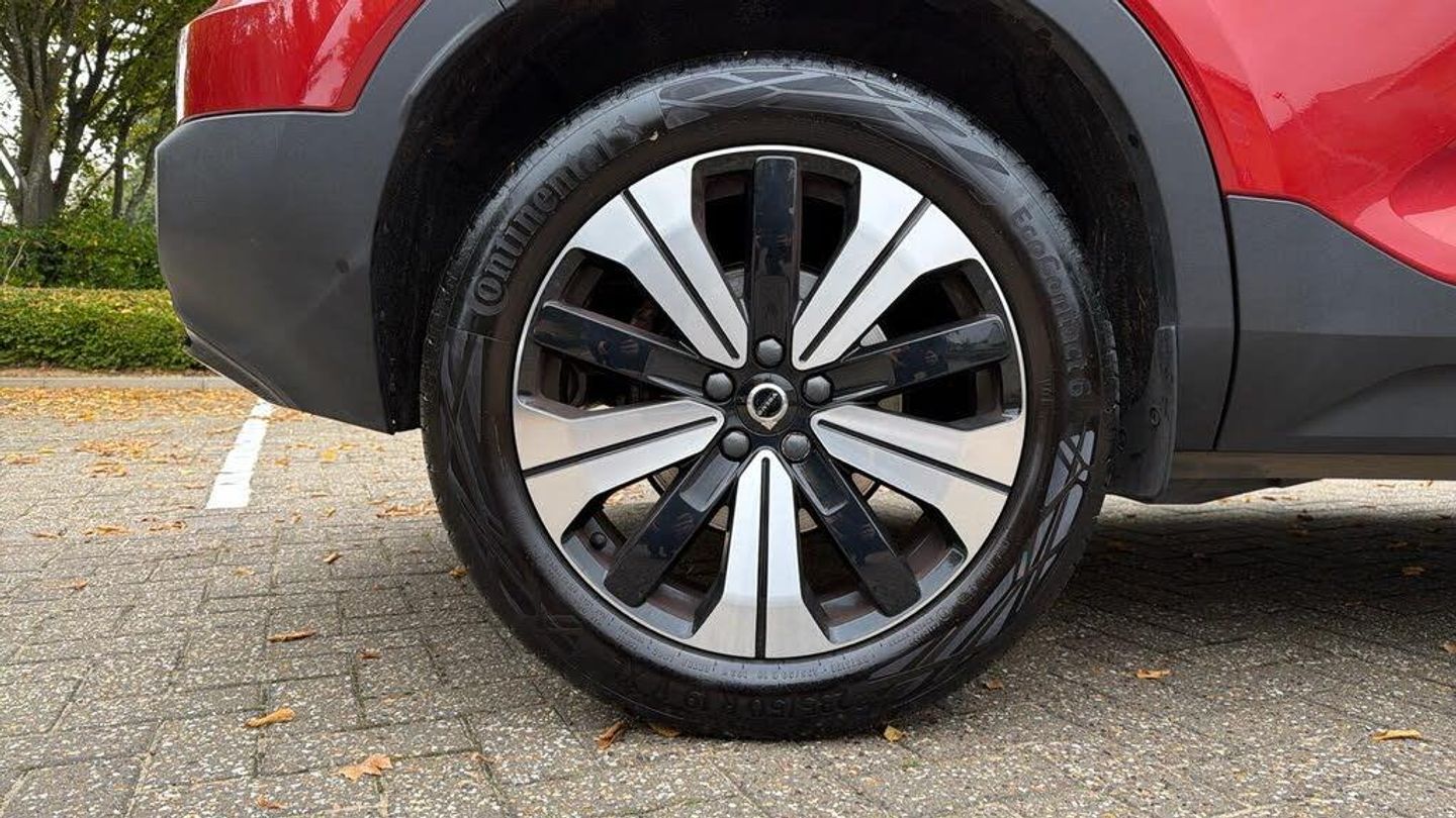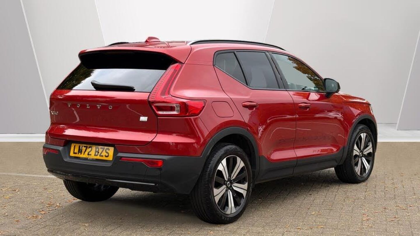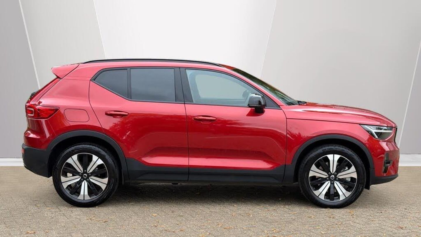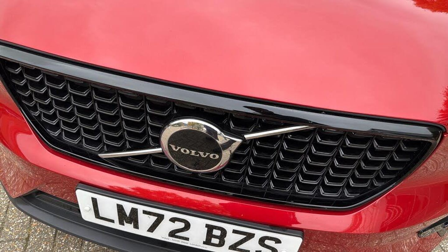 Sculpted gear shift, Charcoal headlining, Charcoal interior inserts, Door mirror covers. Black Stone, Connect Suede textile/Microtech upholstery, Tailored sport steering wheel. Charcoal, Drive Mode Settings, 7-speed Dual Clutch transmission, 2-Zone Electronic Climate Control, Afterrun parking climate, Passenger Airbag Cut Off Switch, Dual Stage Driver and Passenger Airbags, Driver Knee Airbag, Panoramic roof, Road Sign Information, Driver Alert Control with Lane Keeping Aid, Front grille with high-gloss black insert, LED headlights, Headlight Cleaning System, Rear fog lights switched off when trailer fog lights are running, Front LED Foglights, 12-inch driver display, Pilot Assist (up to 80mph) Adaptive Cruise Control with Distance Alert & Queue Assist, Pilot Assist, Adjustable Speed Limiter, Volvo Cars app, Fresh Air Subwoofer, DAB (Digital Audio Broadcasting) Radio, Premium Sound by Harman Kardon, Autofolding Heated Power Door Mirrors, Wireless/Inductive Mobile Phone Charging, Automatic door locking, Remote key, Small storage. front, Double locking, Private Locking, Tinted rear windows, BLIS? and Cross Traffic Alert, Anti-theft Alarm including Immobiliser. Volume Sensor and Level Sensor, Power Child Locks, Power Operated Tailgate, Keyless Drive (includes Keyless Entry and Keyless Start), CleanZone Air Quality System and Pollen Filter, GloveBox Bag Hook, Digital owners manual, Topography decor, Power Driver's Seat with Memory, Power Passenger Seat, Heated front seats, Heated Rear Seats - Outer Positions, Power Folding Rear Seat Headrests, 5 seats, Mechanical release second seat row, Manual cushion extensions. driver and passenger, 4-Way Lumbar Support, Sport Textile Mats. Charcoal, Load Protection Net, Rear centre armrest, Illuminated Vanity Mirrors, Rear Footwell and Side Step Illumination, 12v Socket - Cargo Area, Automatically dimmed inner and outer rear view mirrors, Glossy black tunnel console, Chassis, Hill Start Assist, Indirect Tyre Pressure Monitoring System (iTPMS), Oncoming Lane Mitigation, Rear Collision Warning and Mitigation Support, Hill Descent Control, EBL. Flashing Brake Light and Hazard Warning, Heated Steering Wheel, Adaptive power steering, 19? 5-Double Spoke Black Diamond Cut, Temporary mobility kit, Locking Wheel Nuts, Hidden tail pipes, Heated Front Windscreen, Body-coloured door handles with ground lighting, Glossy Black Window Trim, Roof Rails - Integrated. High Gloss Black, Recharge aluminium front tread plates, Recharge embossed logo on C/D-pillar, Tempered side windows, Rain Sensor - Automatic Windscreen Wiper Activation, Sensus Navigation, Park assist. rear and front, Ticket holder, Electric cabin heater and cooler, 360° camera, Protective cap kit. Matt Tech Grey, 7m 3.5 kW Type2 / Mode 3 Charge Cable (replaces standard cable supplied with the car), Smartphone Integration (includes Apple Car Play and Android Auto) with 2 x USB Hub, Comfort Front Seats, 9-inch centre display, Home charging cable. mobile 7m (10A), Whiplash injury protection system, IC (Inflatable Curtains) - Full Length, Side impact protection, ISOFIX Attachment (Outer Rear Seats), Steering Wheel Remote Infotainment Control, Humidity sensor, Bluetooth® Handsfree System