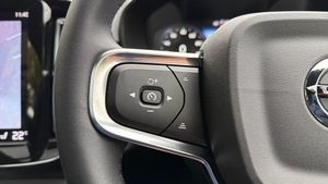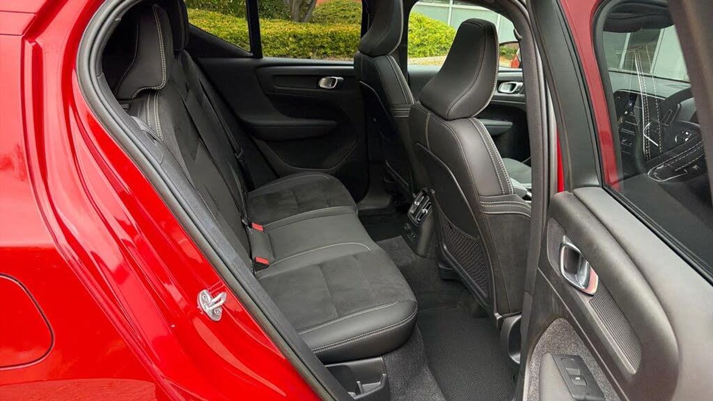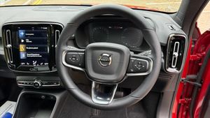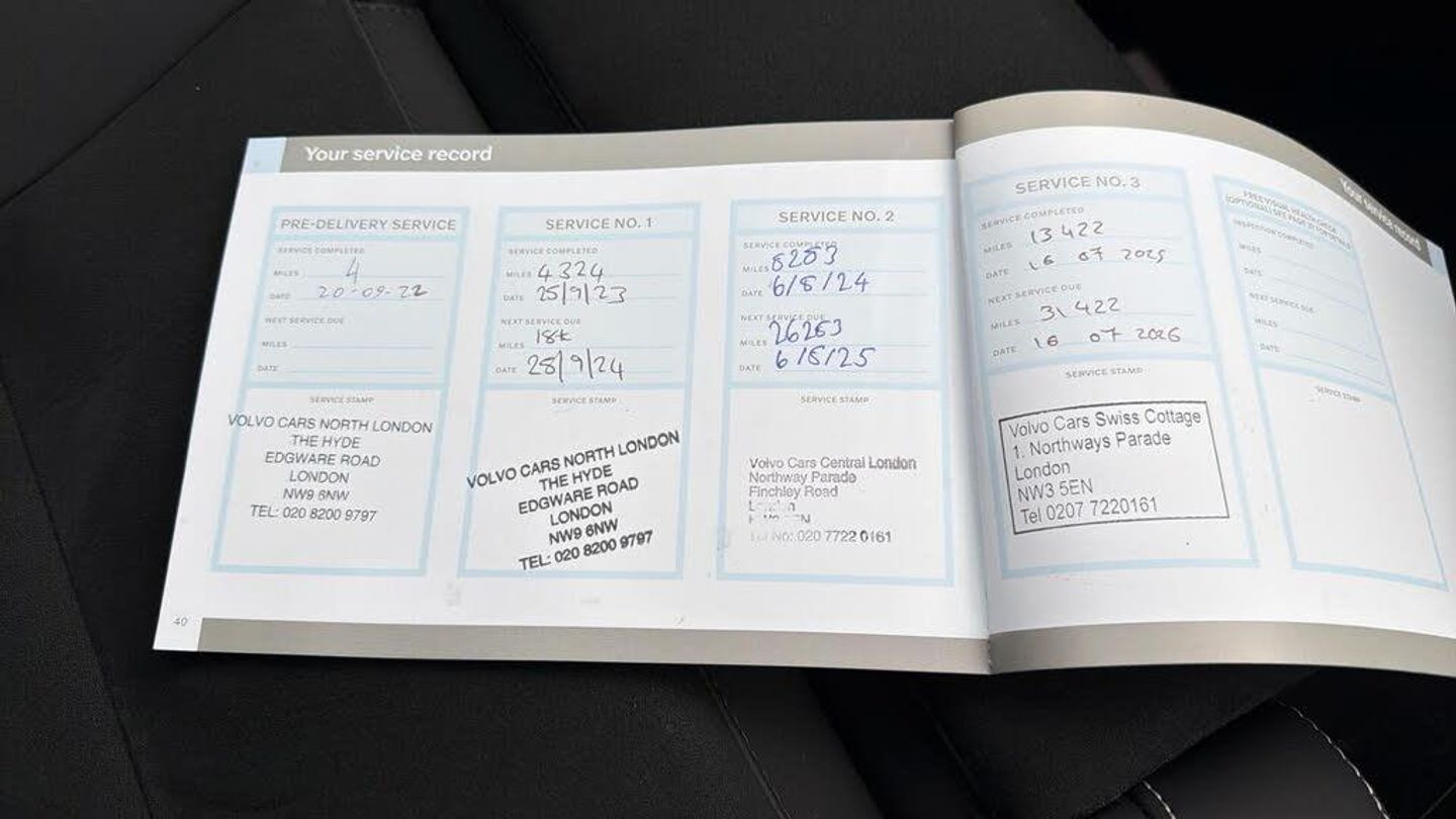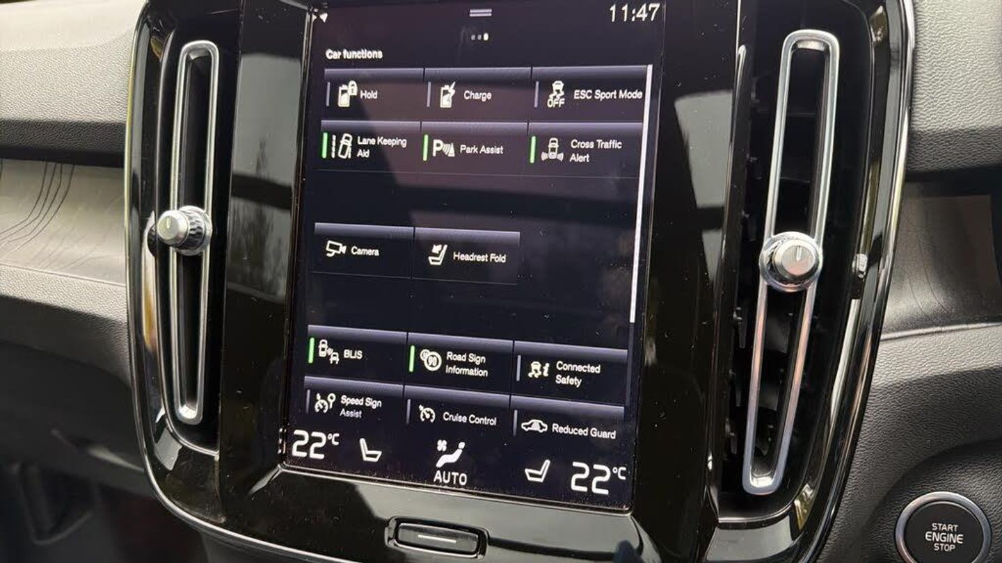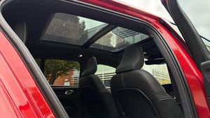 Sculpted gear shift, Charcoal headlining, Charcoal interior inserts, Door mirror covers. Black Stone, Connect Suede textile/Microtech upholstery, Tailored sport steering wheel. Charcoal, Drive Mode Settings, 7-speed Dual Clutch transmission, 2-Zone Electronic Climate Control, Afterrun parking climate, Passenger Airbag Cut Off Switch, Dual Stage Driver and Passenger Airbags, Driver Knee Airbag, Panoramic roof, Road Sign Information, Driver Alert Control with Lane Keeping Aid, Front grille with high-gloss black insert, LED headlights, Headlight Cleaning System, Rear fog lights switched off when trailer fog lights are running, Front LED Foglights, 12-inch driver display, Pilot Assist (up to 80mph) Adaptive Cruise Control with Distance Alert & Queue Assist, Pilot Assist, Adjustable Speed Limiter, Volvo Cars app, Fresh Air Subwoofer, DAB (Digital Audio Broadcasting) Radio, Premium Sound by Harman Kardon, Autofolding Heated Power Door Mirrors, Wireless/Inductive Mobile Phone Charging, Automatic door locking, Remote key, Small storage. front, Double locking, Private Locking, Tinted rear windows, BLIS? and Cross Traffic Alert, Anti-theft Alarm including Immobiliser. Volume Sensor and Level Sensor, Power Child Locks, Power Operated Tailgate, Keyless Drive (includes Keyless Entry and Keyless Start), CleanZone Air Quality System and Pollen Filter, GloveBox Bag Hook, Digital owners manual, Topography decor, Power Driver's Seat with Memory, Power Passenger Seat, Heated front seats, Heated Rear Seats - Outer Positions, Power Folding Rear Seat Headrests, 5 seats, Mechanical release second seat row, Manual cushion extensions. driver and passenger, 4-Way Lumbar Support, Sport Textile Mats. Charcoal, Load Protection Net, Rear centre armrest, Illuminated Vanity Mirrors, Rear Footwell and Side Step Illumination, 12v Socket - Cargo Area, Automatically dimmed inner and outer rear view mirrors, Glossy black tunnel console, Chassis, Hill Start Assist, Indirect Tyre Pressure Monitoring System (iTPMS), Oncoming Lane Mitigation, Rear Collision Warning and Mitigation Support, Hill Descent Control, EBL. Flashing Brake Light and Hazard Warning, Heated Steering Wheel, Adaptive power steering, 19? 5-Double Spoke Black Diamond Cut, Temporary mobility kit, Locking Wheel Nuts, Hidden tail pipes, Heated Front Windscreen, Body-coloured door handles with ground lighting, Glossy Black Window Trim, Roof Rails - Integrated. High Gloss Black, Recharge aluminium front tread plates, Recharge embossed logo on C/D-pillar, Tempered side windows, Rain Sensor - Automatic Windscreen Wiper Activation, Sensus Navigation, Park assist. rear and front, Ticket holder, Electric cabin heater and cooler, 360° camera, Protective cap kit. Matt Tech Grey, 7m 3.5 kW Type2 / Mode 3 Charge Cable (replaces standard cable supplied with the car), Smartphone Integration (includes Apple Car Play and Android Auto) with 2 x USB Hub, Comfort Front Seats, 9-inch centre display, Home charging cable. mobile 7m (10A), Whiplash injury protection system, IC (Inflatable Curtains) - Full Length, Side impact protection, ISOFIX Attachment (Outer Rear Seats), Steering Wheel Remote Infotainment Control, Humidity sensor, Bluetooth® Handsfree System