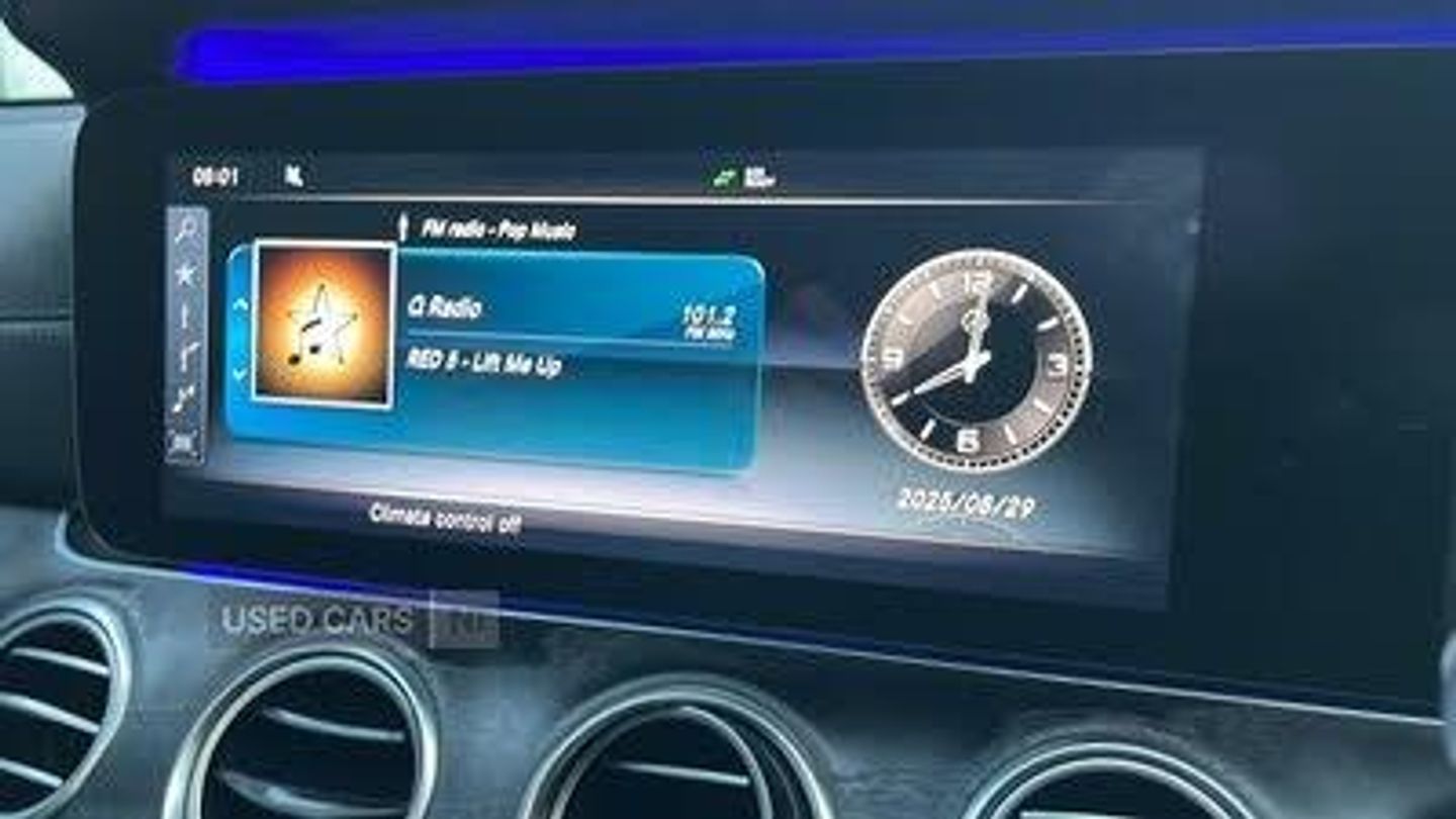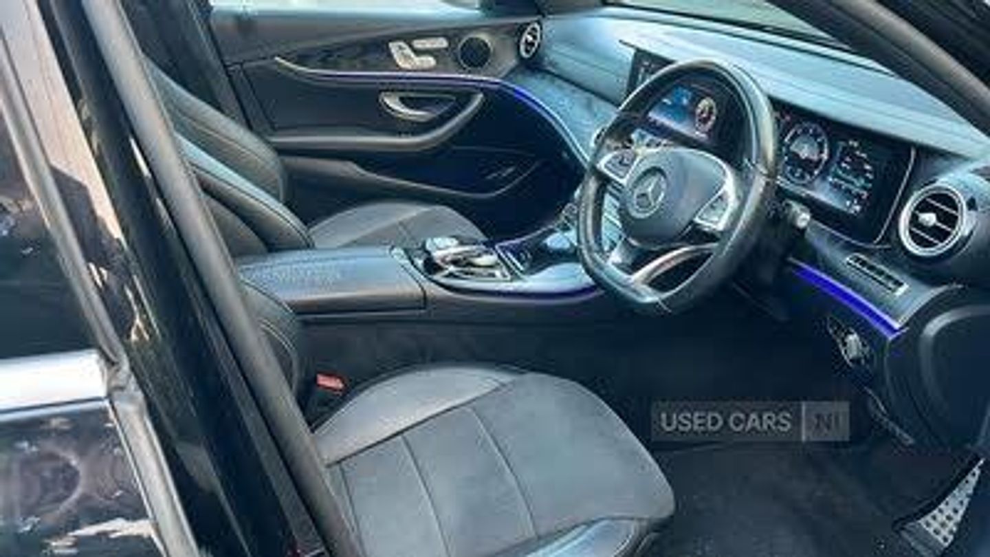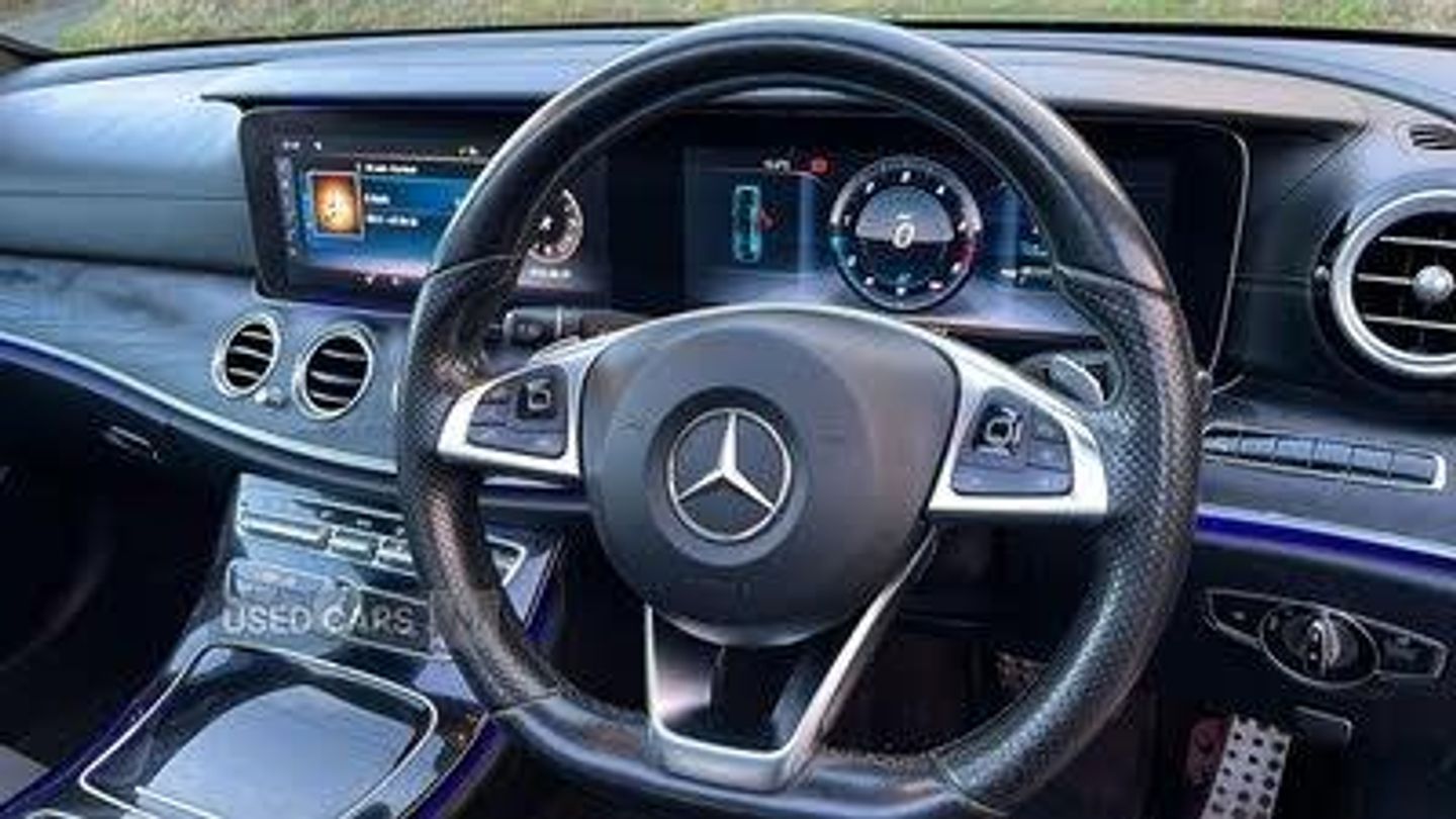 Active park assist with parktronic system, Attention assist, Bluetooth interface for hands free telephone, Boot release from drivers seat, COMAND HDD navigation with 12.3" central display, DYNAMIC SELECT with a choice of driving modes (ECO, Comfort, Sport, Sport+ and Individual), External temperature gauge, Park assist pilot with front and rear park assist, Smartphone integration with Apple CarPlay, Speed sensitive power steering, Touchpad with control wheel, Aerial integrated in rear window, DAB Digital radio, USB/aux input socket, AMG bodystyling, AMG front, rear apron and side skirts, Body colour bumpers, Body colour door handles, Electric front sliding and fixed rear panoramic glass sunroof, Electric front/rear windows with one touch/anti pinch, Electrically adjustable and heated door mirrors, Heated windscreen wash system, LED daytime running lights, LED Headlights, LED indicators in door mirrors, LED tail lights, Polished aluminium waistline, Twin exhaust pipes, 3 spoke AMG steering wheel in Nappa leather, Adjustable rear head restraints, Ambient lighting, AMG floormats, Artico man-made leather upper dash trim, Auto Mercedes-Benz child seat recognition sensor, Bag hook in luggage compartment, Black roof lining, Front and rear door pockets, Front centre armrest with storage compartment, Front seat back map pockets, Heated front seats, Height/reach adjust steering wheel, Illuminated glovebox, Isofix rear child seat fastenings, Multi function steering wheel, Steering wheel gearshift paddles, Storage net in luggage compartment, Sunglasses holder, Sunvisors with illuminated vanity mirrors, Interior lighting pack - E Class, Keyless Go comfort pack - E Class, Memory pack - E Class, Mirror pack - E Class, 3x3 point rear seatbelts, Active bonnet, Driver and passenger side/thorax airbags, Driver/front passenger airbag, Drivers knee airbag, Electronic parking brake, ESP with ASR, Front brake callipers with Mercedes Benz lettering, Hill hold assist, Hill start assist, Pre-Safe anticipatory safety system, Seat occupancy sensor, Seatbelt warning, Tyre pressure monitoring system, Warning triangle and first aid kit, Alarm system/interior protection/immobiliser, Remote central locking, AirMATIC suspension, Diesel particulate filter, High gloss black centre console, Run flat tyres