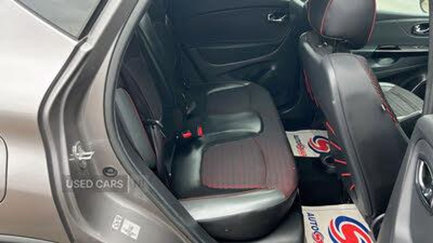 Bluetooth + USB, Cruise control + speed limiter, R-Link Multimedia system with 7" touch screen, Tom Tom Navigation & 4x35W Arkamys radio with 3D sound, Rear parking camera, Rear parking sensor, Trip computer, Variable PAS, Voice control system, Fingertip controls for audio system, Automatic headlights + automatic windscreen wipers, Body colour door handles, Body coloured bumpers, Chrome headlight surround, Chrome insert to side strips, Chrome surround for front fog lights, Chrome trim on tailgate, Chrome trimmed radiator grille, Cornering front fog lights, Electric adjustable/heated/folding door mirrors, Electric front windows + one touch + anti-pinch, Electric rear windows, Extra tinted glass in rear windows, LED daytime running lights, Rear wiper, Variable intermittent front wash/wipe, 12V Accessory socket, 2 coat hooks, 2 cupholders, 3 rear height adjustable headrests, 60/40 split rear seats, Climate control, Fabric/leather upholstery, Front seat backrest storage nets, Gloss black door armrest, Height adjustable driver's seat, Height adjustable front headrests, Height/reach adjust steering wheel, ISOFIX on front passenger and rear outer seats, Leather steering wheel and gear knob, Manhattan seat Covers, Pollen filter, Removable storage between front and rear passenger, Storage compartments in doors, Variable boot floor, 3 point rear seatbelts x3, ABS+EBA, Curtain airbags, Driver/Front Passenger airbags, Driver/front passenger side airbags, ESC - Electronic Stability Control + traction control, Front passenger airbag deactivation, Hill start assist, Rear door child safety locks, Seatbelt warning, Tyre pressure monitor, Keyless entry, RAID (Renault Anti-Intruder Device), Thatcham Cat 2 engine immobiliser, 17" Black Explore alloy wheels, Mud and snow tyres