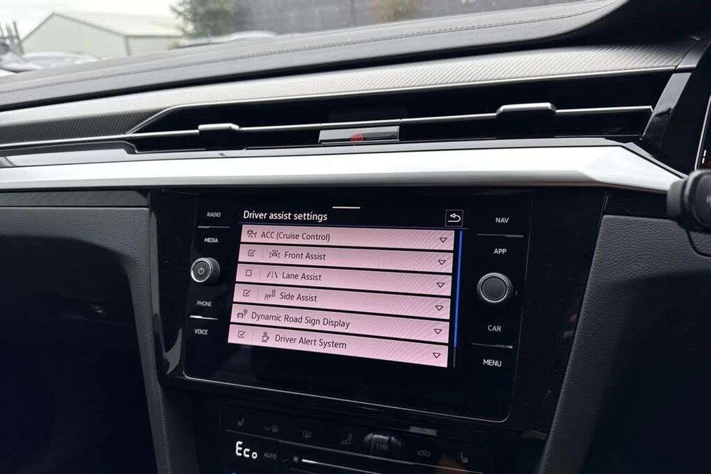 Front and rear electric windows,Front windscreen washers and wipers with 4x interval delay,Heat insulating glass windscreen,Heat insulating side and rear windows,Heated rear windscreen,Heated windscreen washer jets,Rain sensor,Rear wash/wipe,Dynamic Chassis Control (DCC) - Adjustable dampers lowered by 15mm,Body colour door handles,bumpers and side skirts,Chrome plated radiator grille inserts and light switch surrounds,Chrome side window surrounds,External USB-C data socket with increased charging performance in front,Front and rear stainless steel door sill protection,Rear boot spoiler,Rear side wing doors,Tailpipes behind rear bumper,Automatic headlights,Dynamic headlight range control,LED 3rd brake light,LED rear combination lamp with dynamic indicators,LED rear number plate lights,Rear fog lamp on one side and reversing lamp on both sides,ABS+EBD+Brake assist,Electronic parking brake,Electronic stability control (ESC) and Electromechanical brake booster,Front disc brakes,Hill start assist,Rear disc brakes,Adaptive cruise control (ACC) with speed limiter,front assist (reacting vehicles pedestrian and cyclists) and follow to stop,Camera for warning system,Driver alert system with fatigue detection,Driver profile selection including ECO function,Dynamic road sign display,Progressive steering,Side scan lane change assist including rear cross traffic alert,Travel assist - Lane keeping assist and traffic jam assist,Auto dimming interior rear view mirror,Body coloured top and matt black lower door mirrors with integrated indicators,Electric folding door mirror,adjustable,heated with front passenger exterior mirror lowering function,3 rear three point seatbelts,Child locks on rear doors,Driver airbag and front passenger airbags with deactivation switch including driver knee airbags,Drivers and front passengers safety optimised head restraints,Front precrash preventive occupant protection,Front side airbags with curtain airbags,Pro active occupant protection to detect critical situations with elevated accident potential from the front,Three point height adjust front seatbelts + pretensioners,Two tone horn,Tyre pressure loss indicator,Warning buzzer for seatbelts if unfastened,Warning triangle,Front + rear carpet mats,Air care climatronic 3 Zone electronic air conditioning with automatic air recirculation,12V socket in front centre console,12V socket on rear of front centre armrest,Art velour vienna leather upholstery,Chrome trim on upper and lower air vents extending across cockpit,Front cupholders x 2,Glovebox,Height/reach adjust steering wheel,Removable luggage compartment cover,Stainless steel pedals,Front footwell illumination,Luggage compartment lighting,Two LED front reading light,Driver and front passenger sunvisor with vanity mirror,App connect including wireless Apple CarPlay,Voice activation for telephone and navigation,8 Speakers,Premium USB cable in choice of either Apple or Android smartphone compatibility,Hands free boot opening,Press and drive key,Tailgate,Digital cockpit with 10.25" high resolution TFT display screen with customisable menus and information,eCall - Emergency call service for SOS calls to emergency response,Emergency assist,Speedo and rev counter,electronic odometer,trip,service interval display and exterior temperature gauge,Start/stop function with battery regeneration,Aluminium decorative inserts,Chrome trim on lower doors in front and rear,Leatherette insert on door and side trim panel in foam film,Piano black decorative inserts in centre console,3 rear head restraints,3 seat bench in 2nd row,6 way electric adjustable ergoComfort driver seat with electric adjustable backrest,60:40 split folding rear seat backrests with centre armrest,Front sports comfort seats,Heated front seats,Isofix child seat preparation easy fit for two outer rear seats,Power adjustable lumbar support on right front seat,Single f